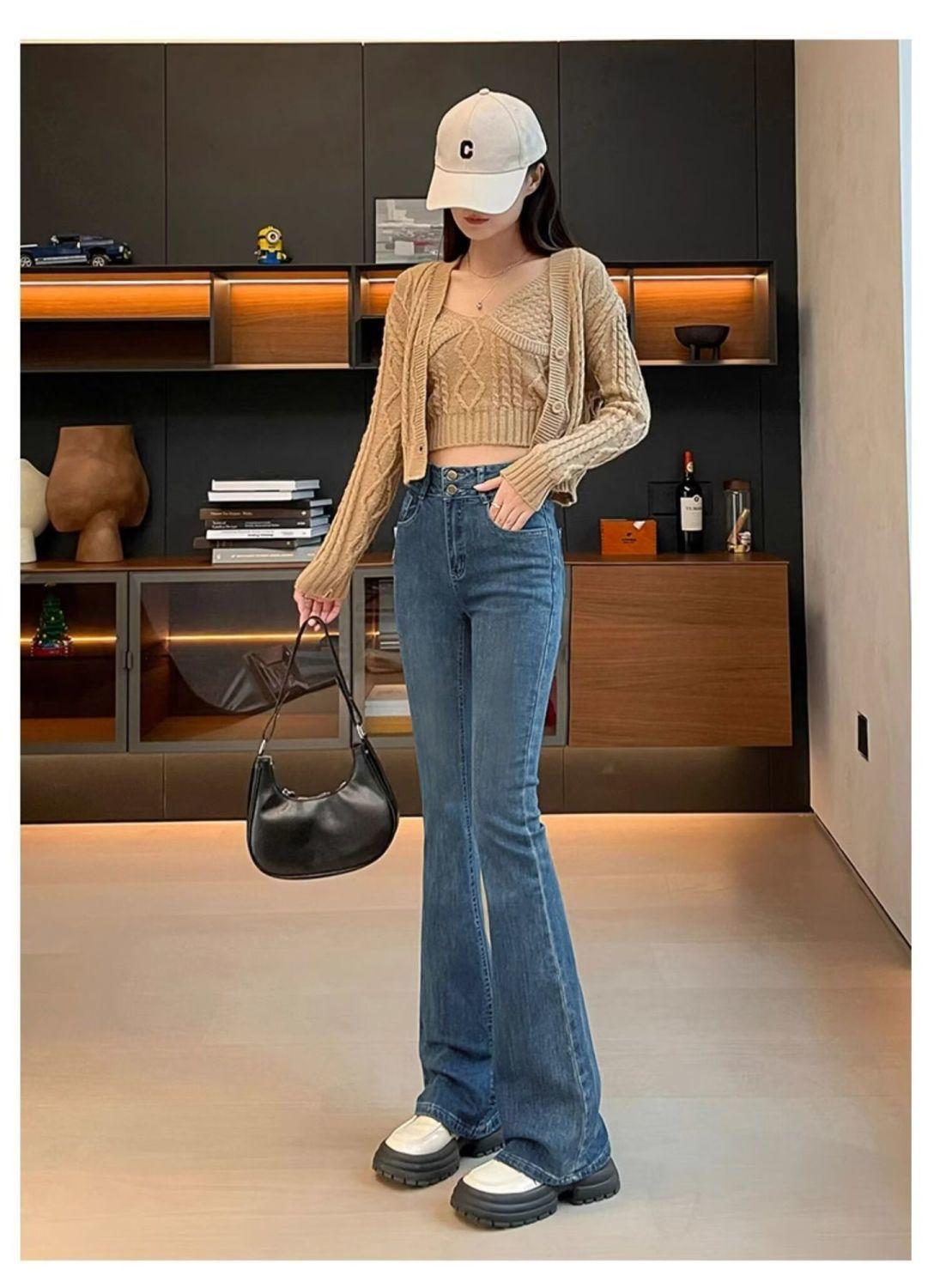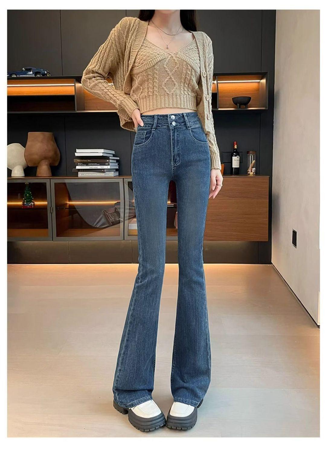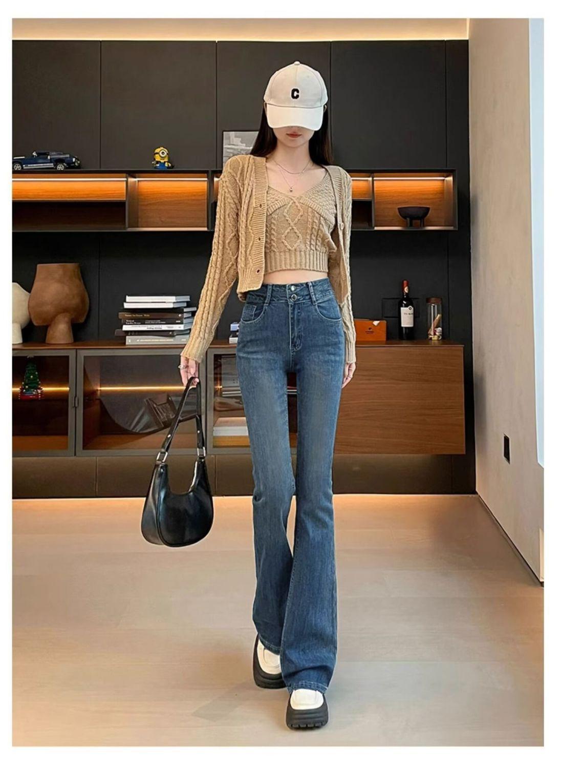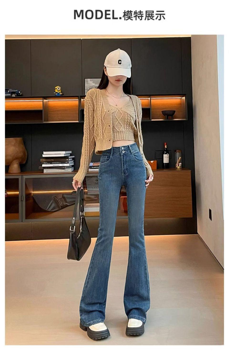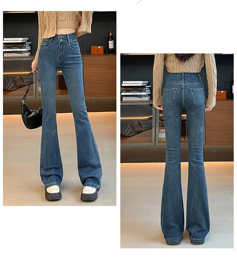 Pantalones vaqueros Micro La Vintage azules para mujer, primavera y otoño 2024, nuevos pantalones acampanados de cintura alta elásticos y adelgazantes, pantalones pequeños