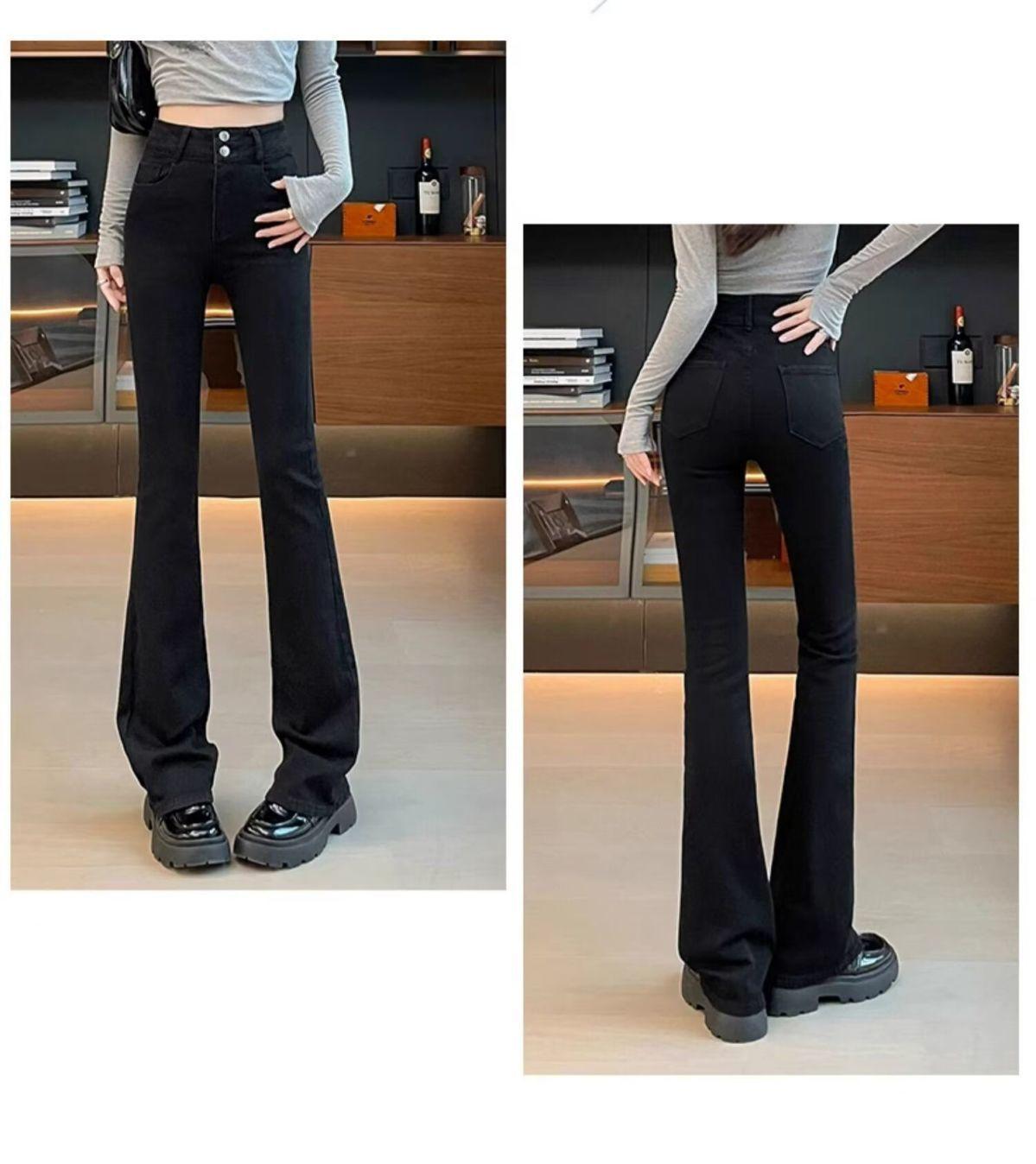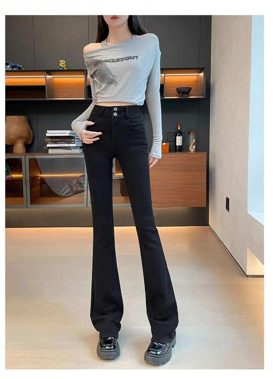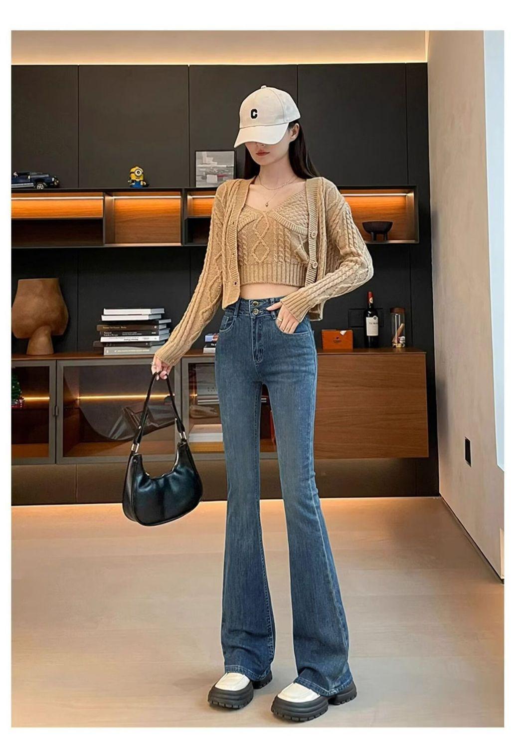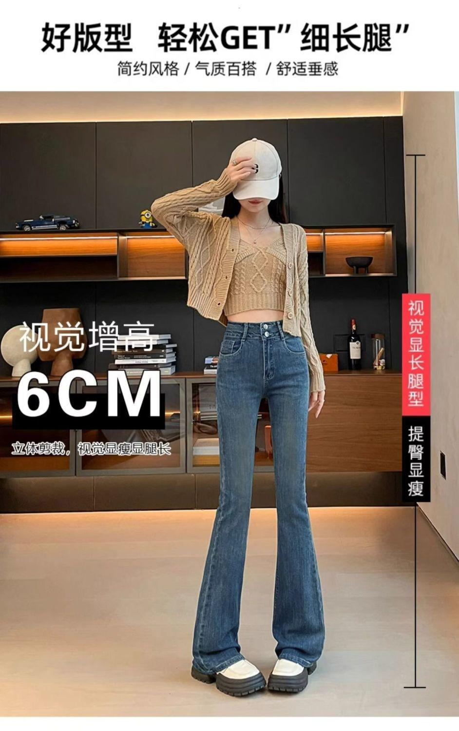 Pantalones vaqueros Micro La Vintage azules para mujer, primavera y otoño 2024, nuevos pantalones acampanados de cintura alta elásticos y adelgazantes, pantalones pequeños