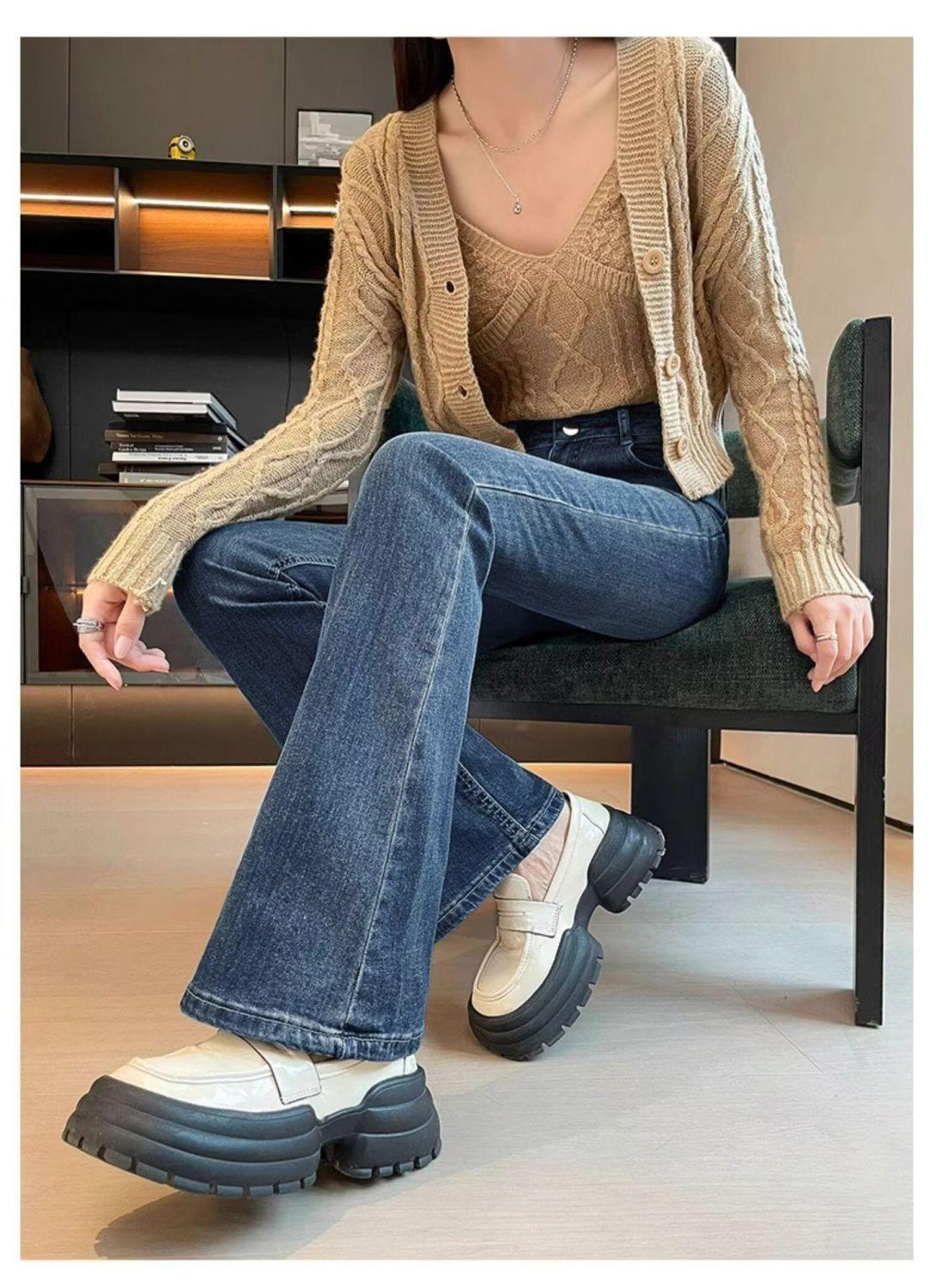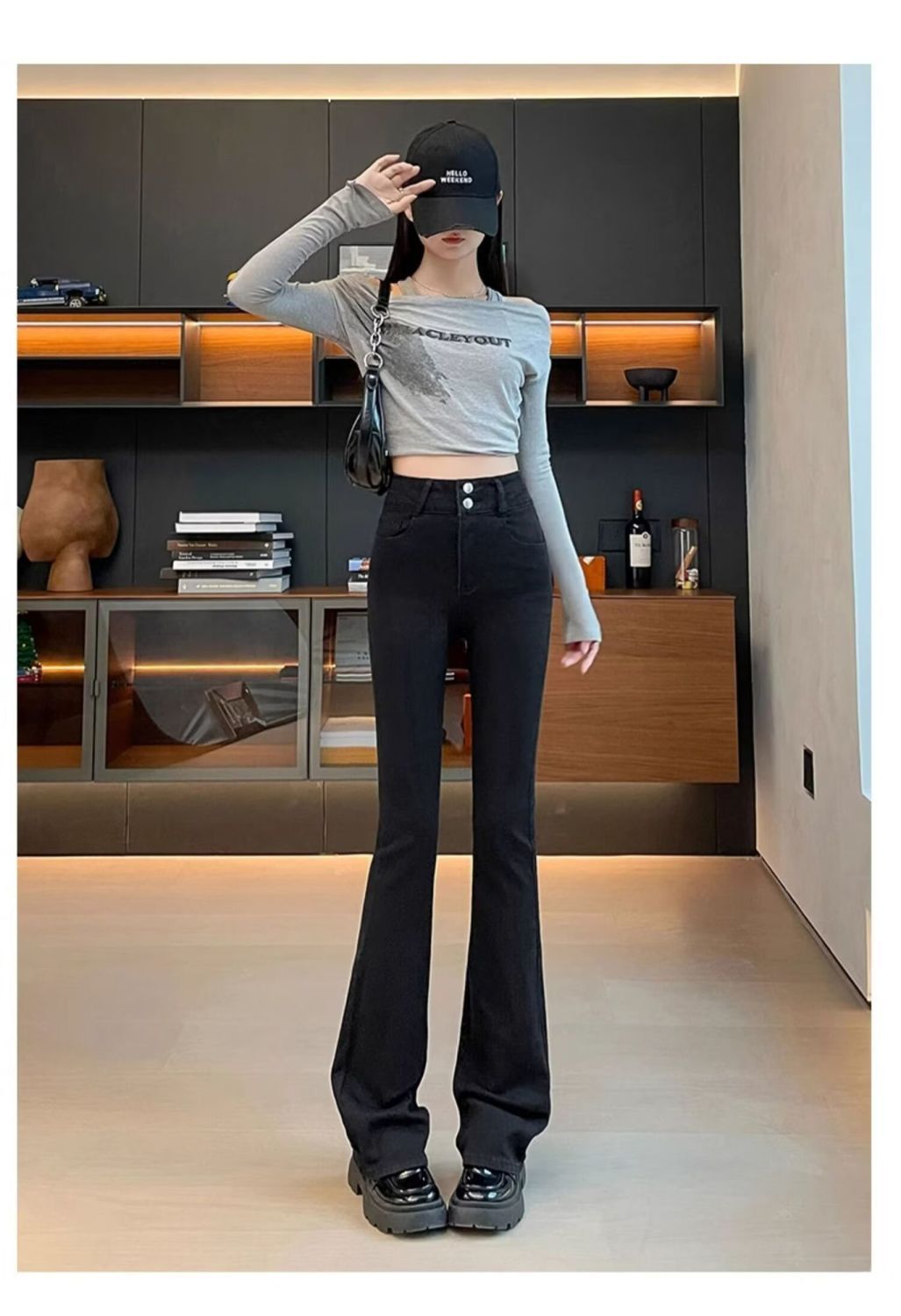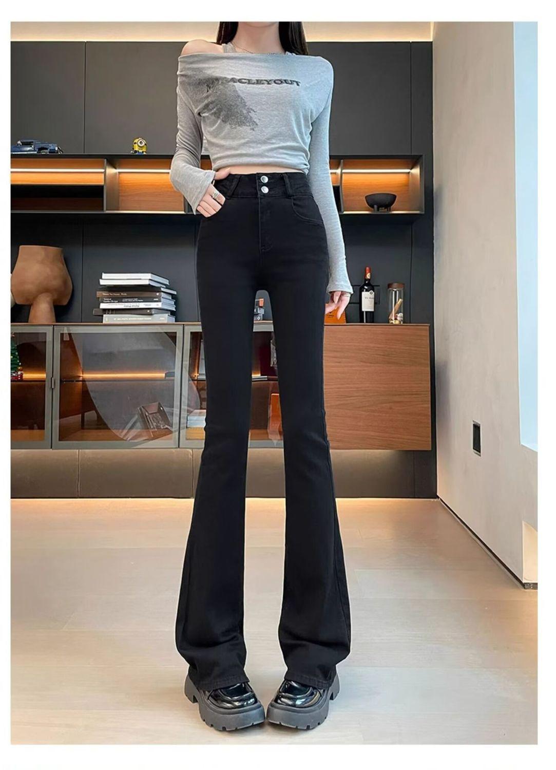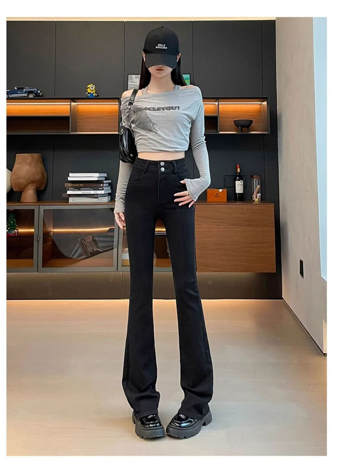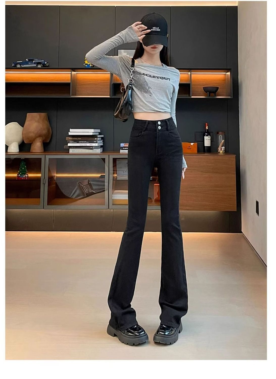 Pantalones vaqueros Micro La Vintage azules para mujer, primavera y otoño 2024, nuevos pantalones acampanados de cintura alta elásticos y adelgazantes, pantalones pequeños