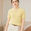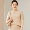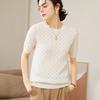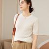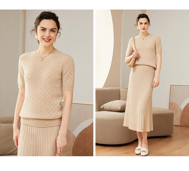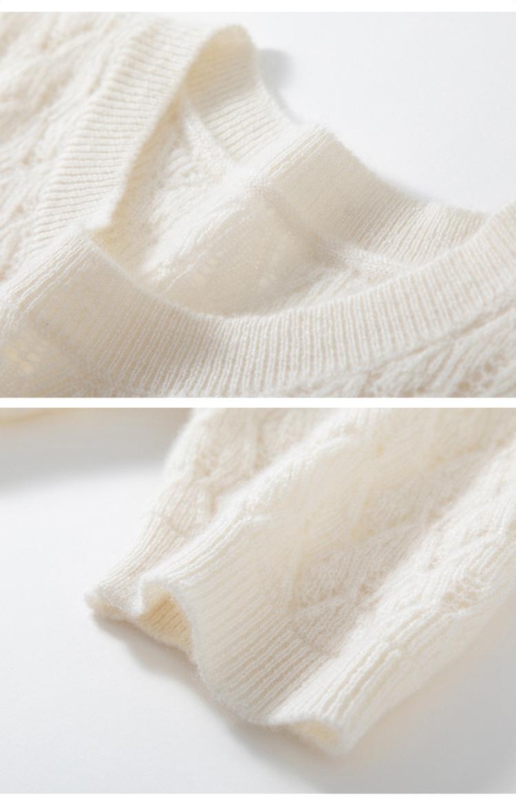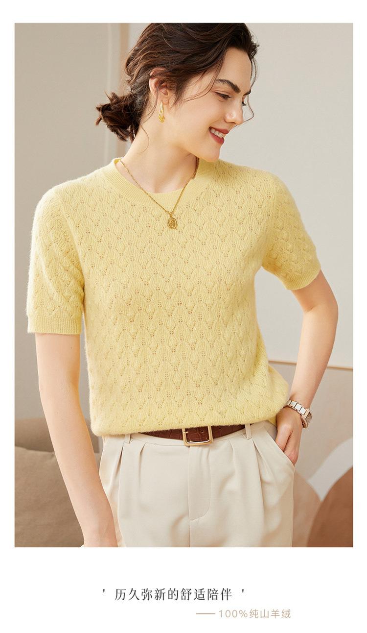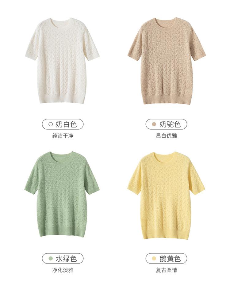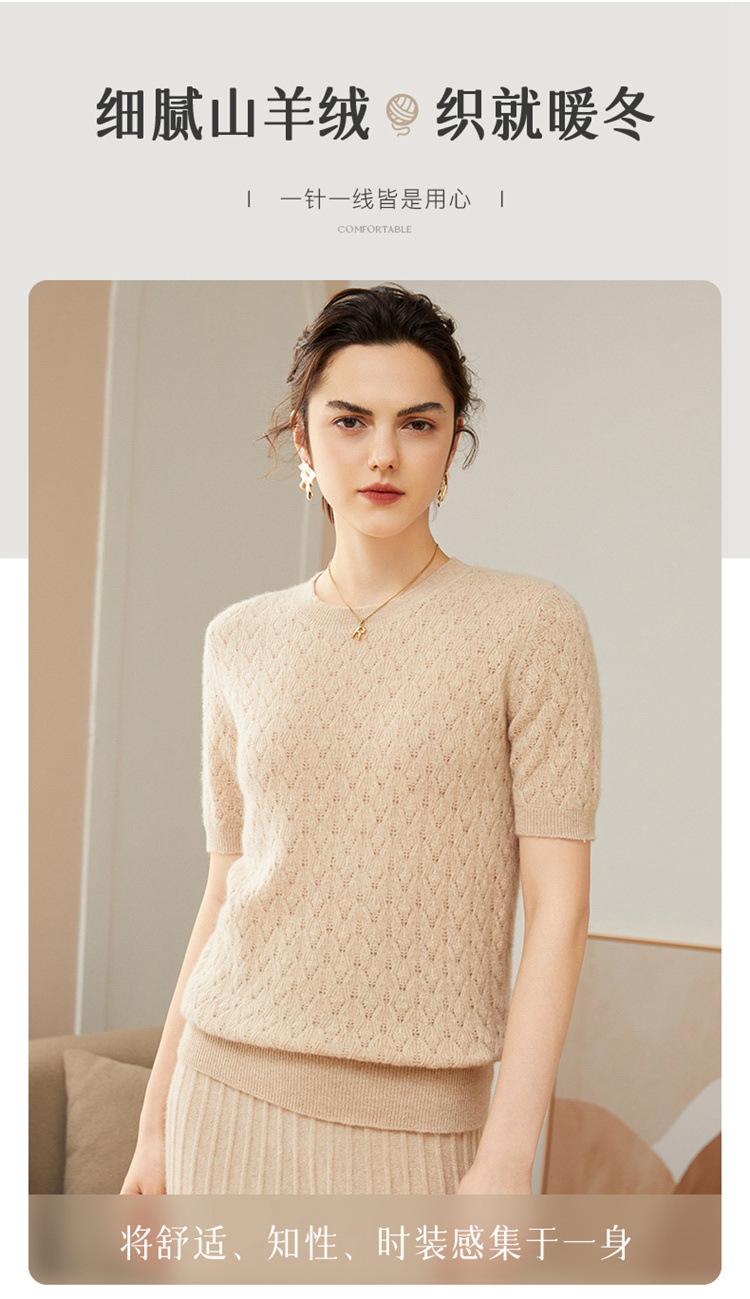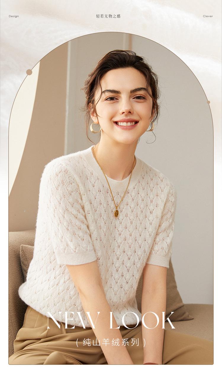 Suéter de cachemira para mujer, manga corta, 100% cachemira pura, primavera y otoño, nuevo, cuello redondo, jersey hueco, suéter de punto, manga corta