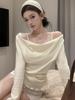 Camiseta de manga larga con escote en V y temperamento cruzado pura y sexy para mujer, otoño e invierno, nuevo diseño, camisa inferior única y hermosa