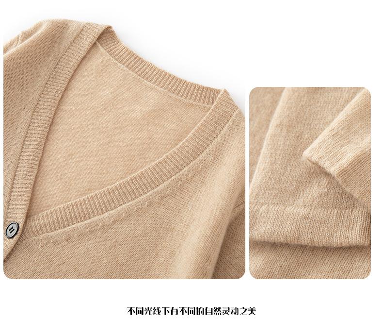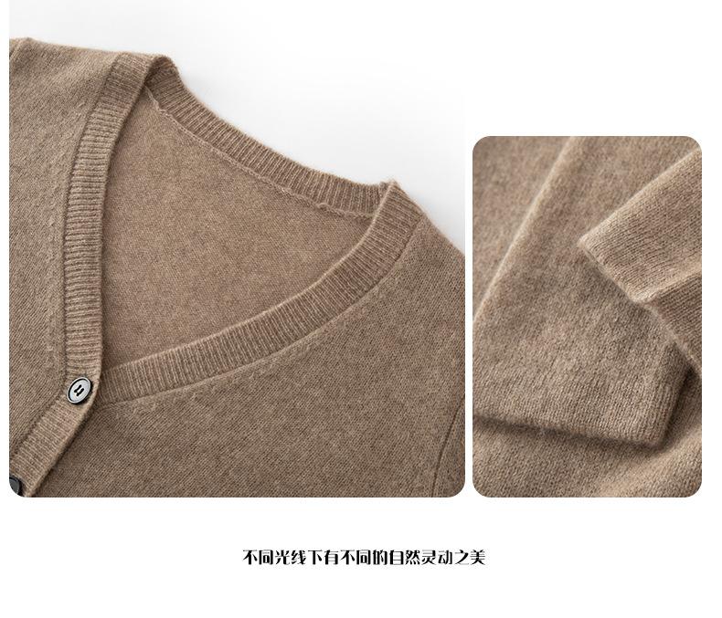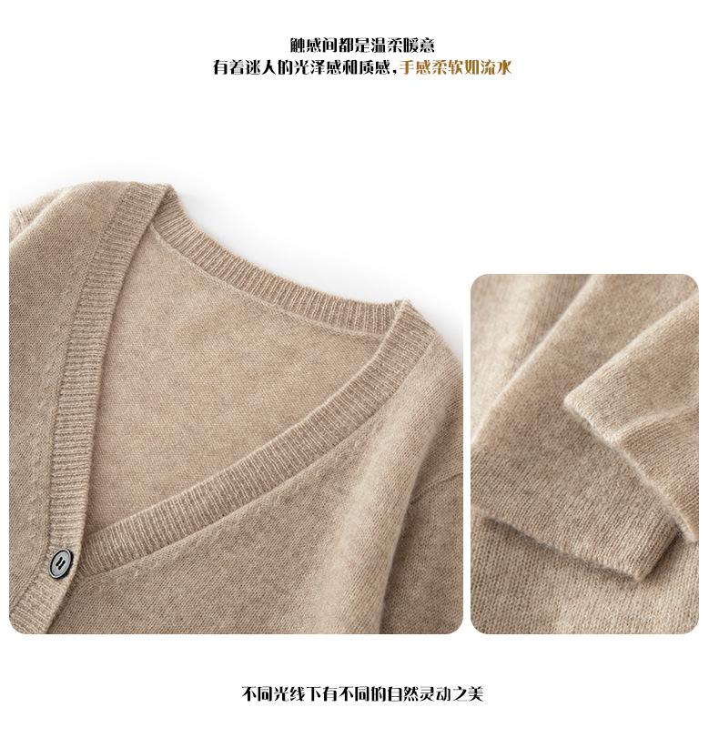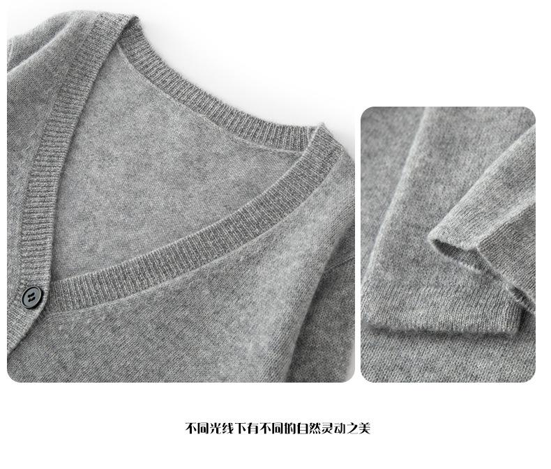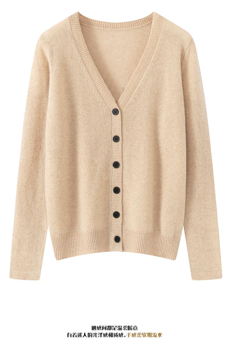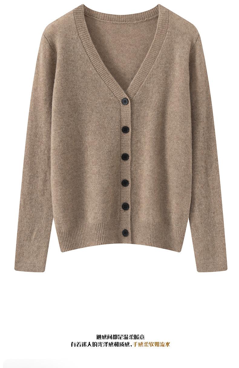 Cárdigan de Punto de Cachemira 100 Ligera con Cuello en V para Mujer, Ropa Exterior Casual Versátil de Manga Larga