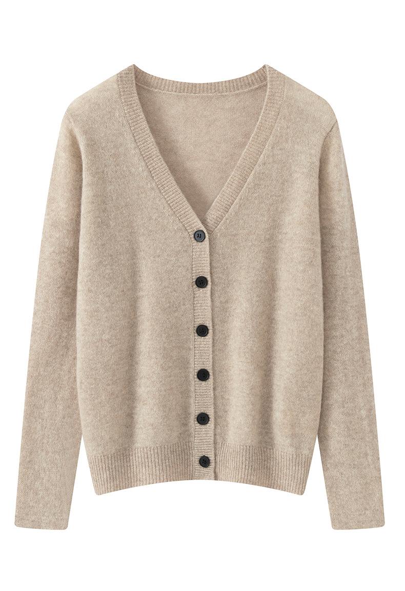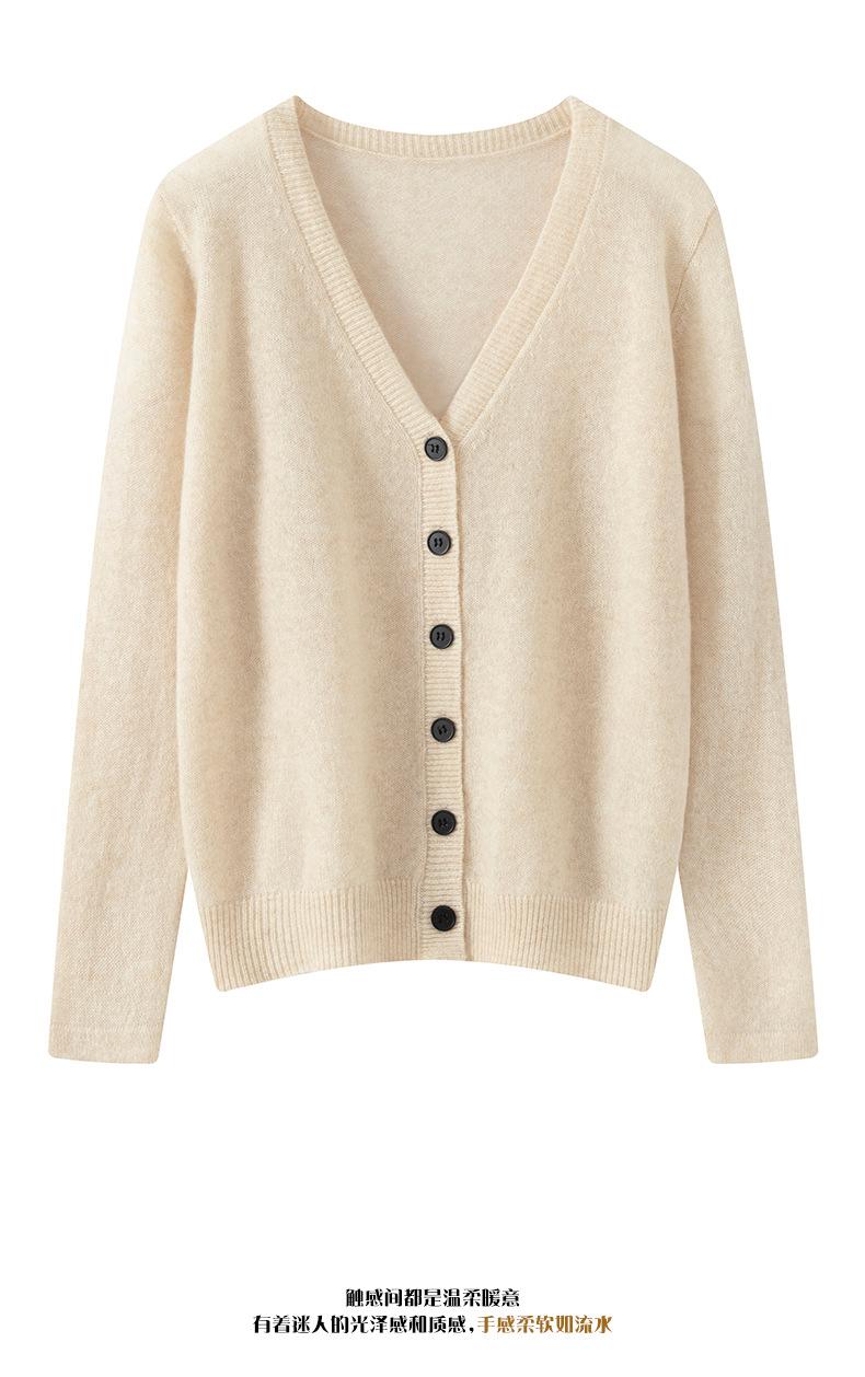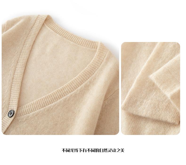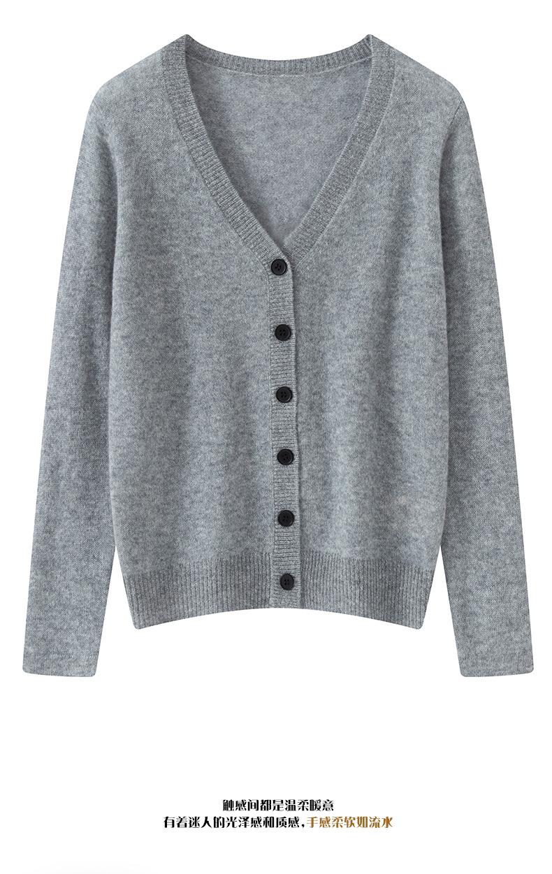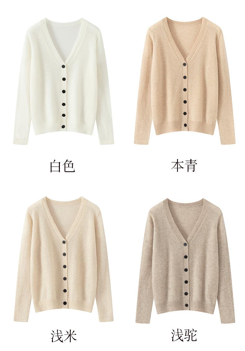 Cárdigan de Punto de Cachemira 100 Ligera con Cuello en V para Mujer, Ropa Exterior Casual Versátil de Manga Larga