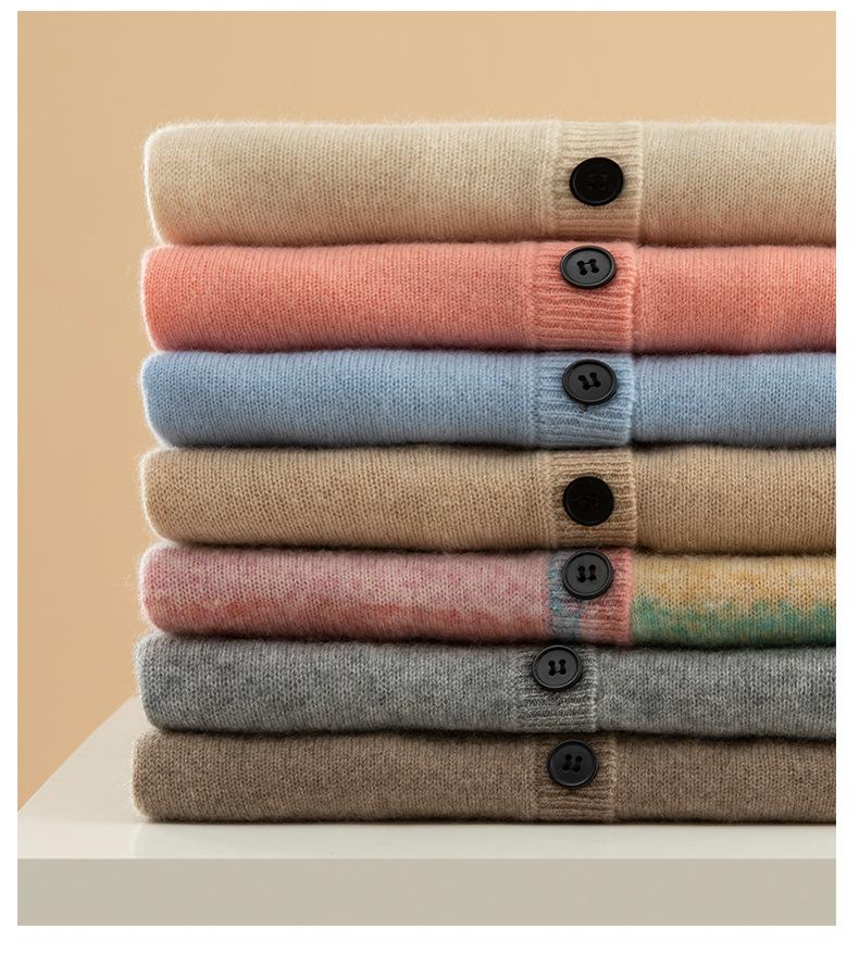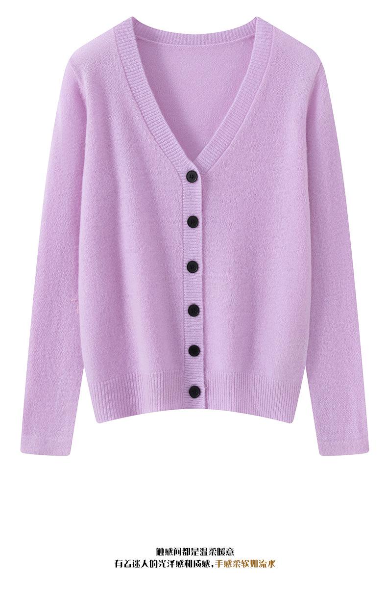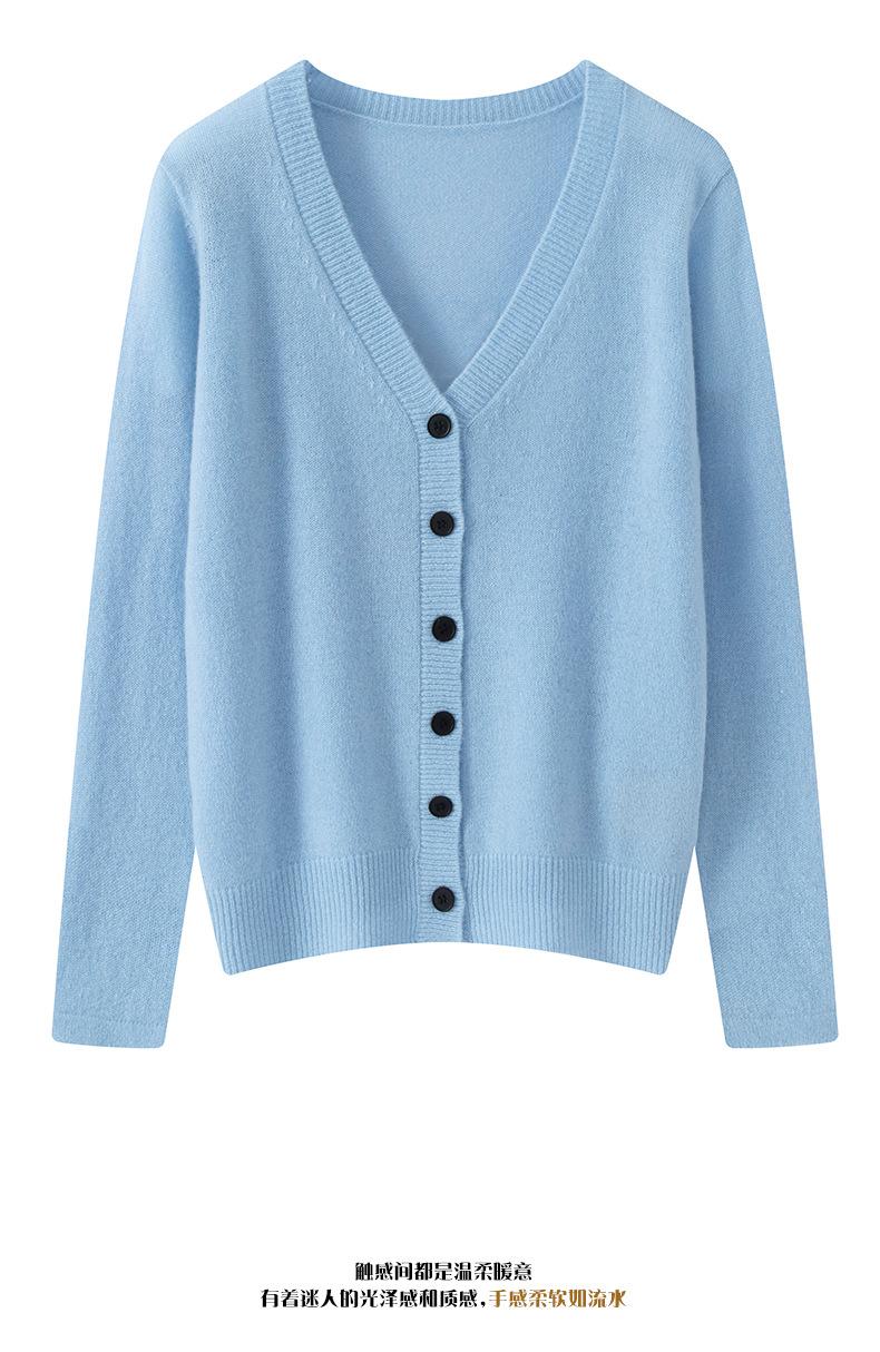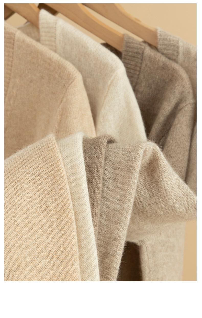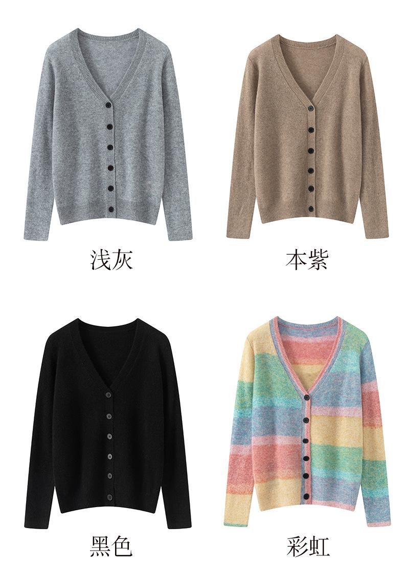 Cárdigan de Punto de Cachemira 100 Ligera con Cuello en V para Mujer, Ropa Exterior Casual Versátil de Manga Larga