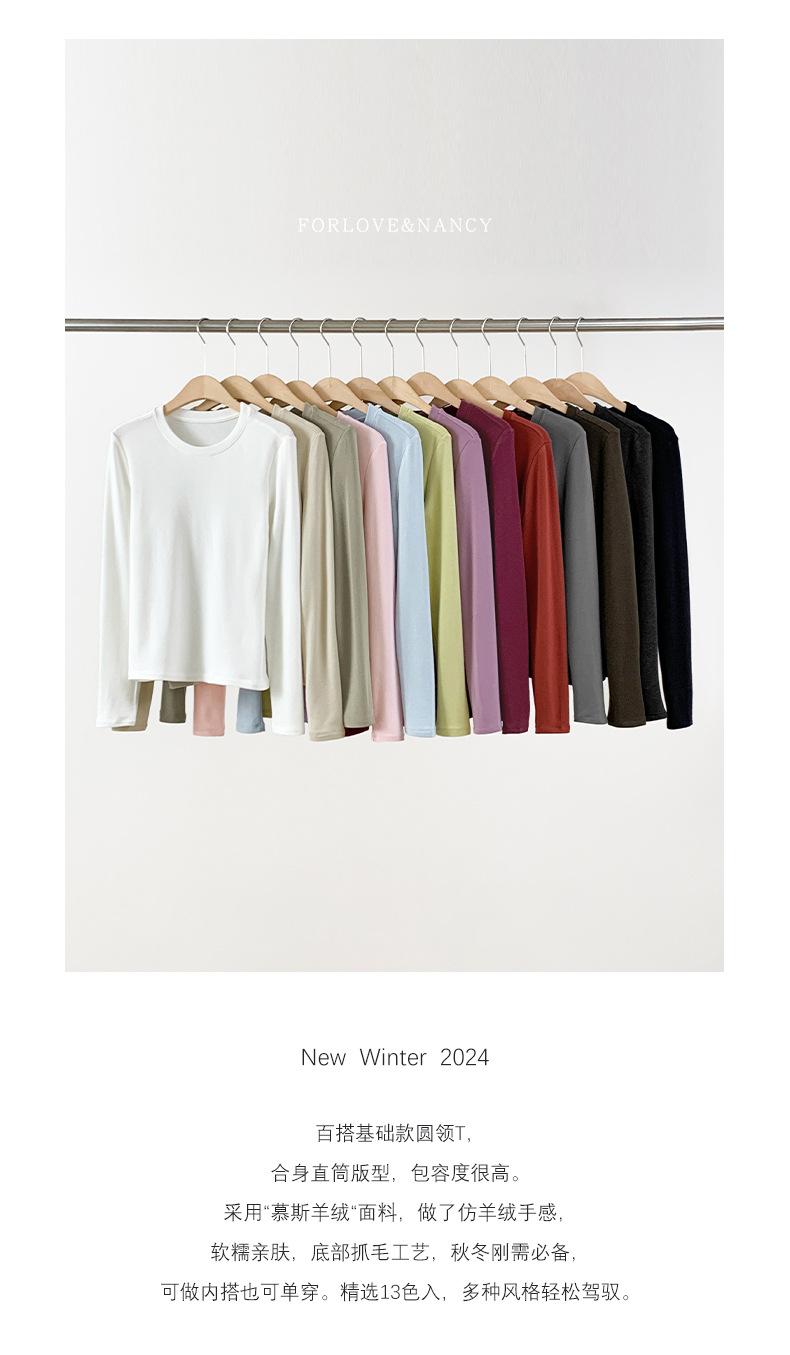 Amor y Nancy Trece Líneas Invierno Coreano Estilo Coreano Cuello Redondo Plus Terciopelo Multicolor Amigable con la Piel Básico Más Fácil para Combinar Camiseta Interior 41483
