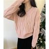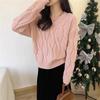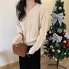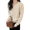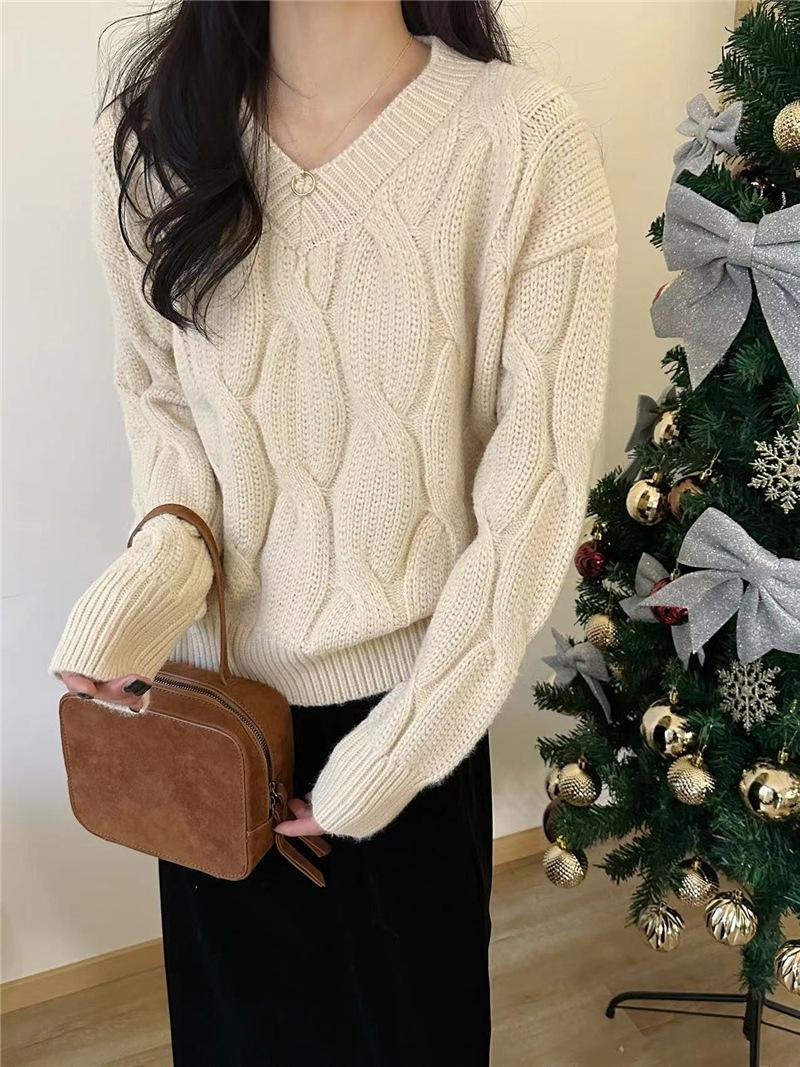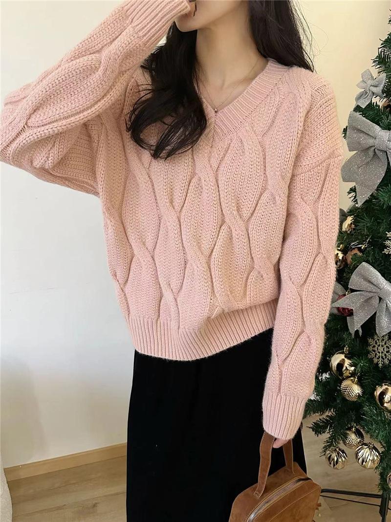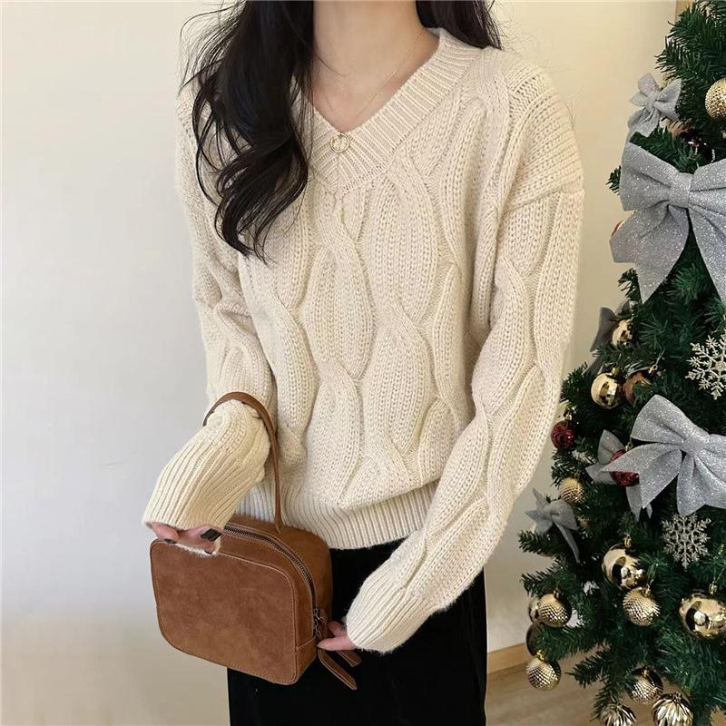 Suéter de Punto Trenzado de Color Puro con Cuello en V para Mujer Otoño e Invierno Espesado 2025 Nuevo Ropa Exterior Holgada Estilo Perezoso Suéter de Punto
