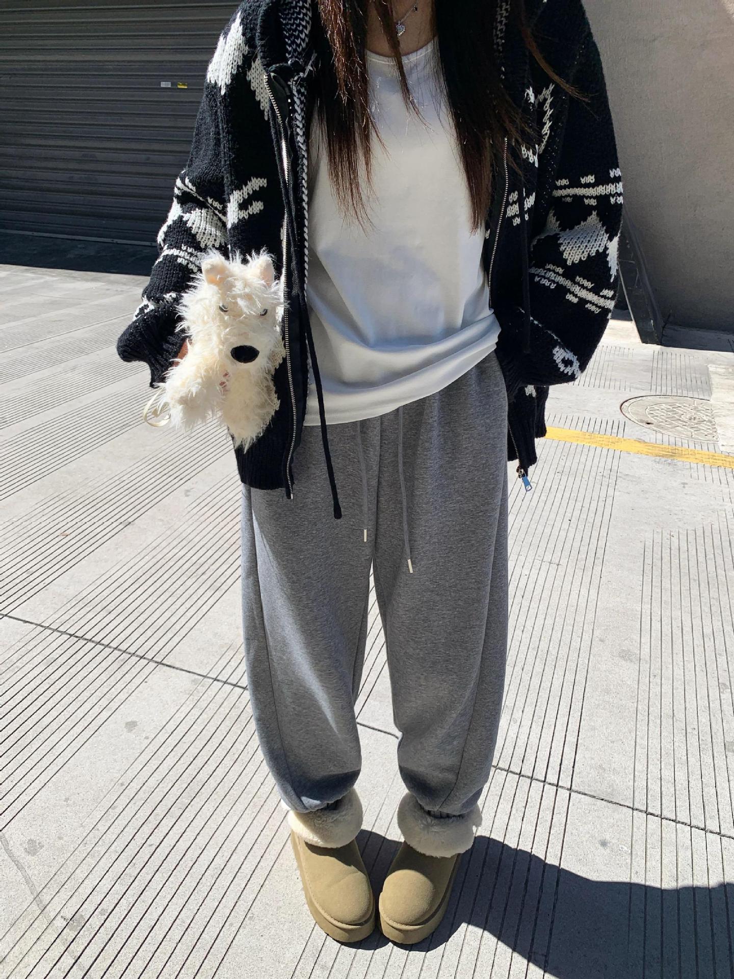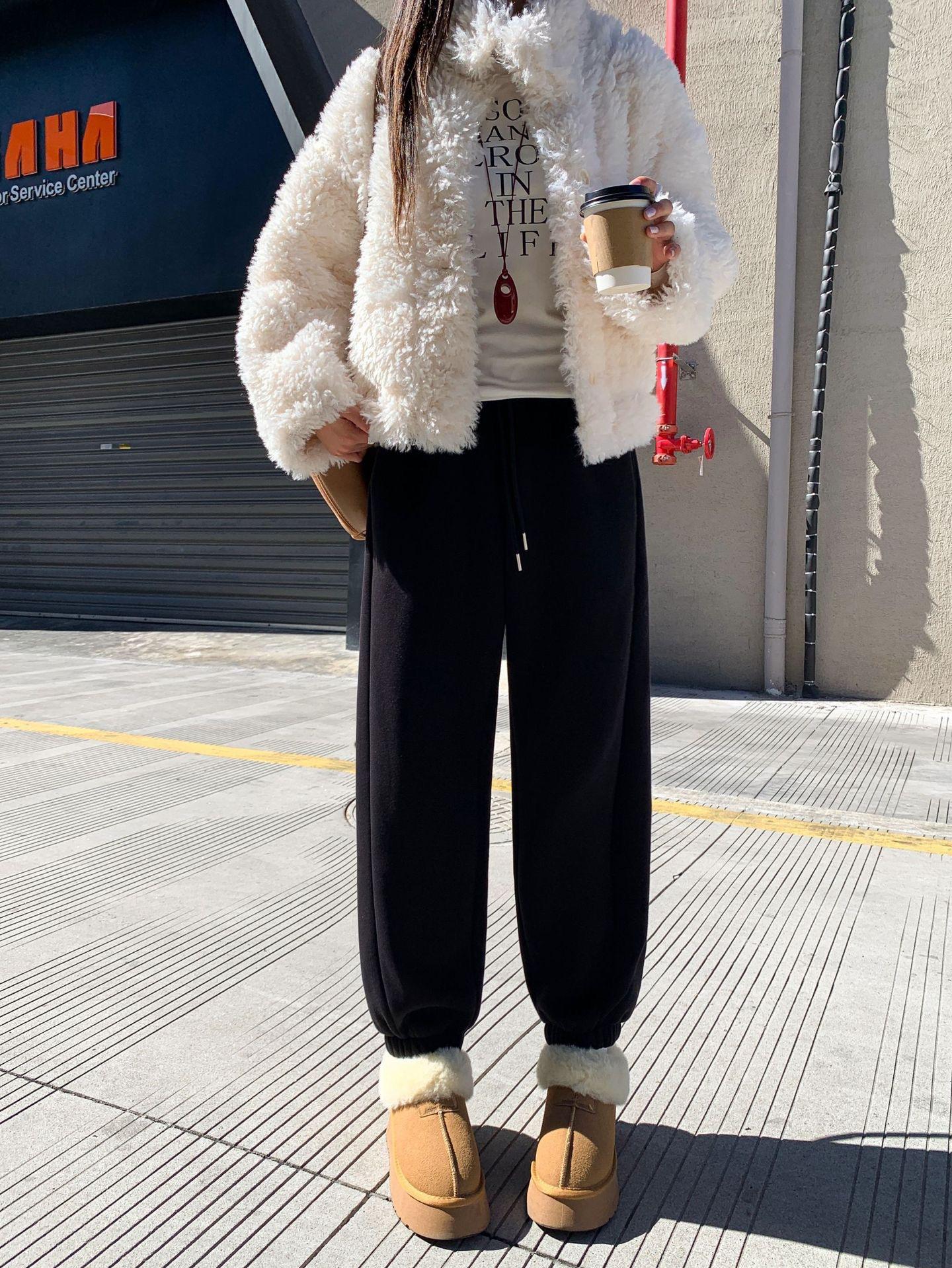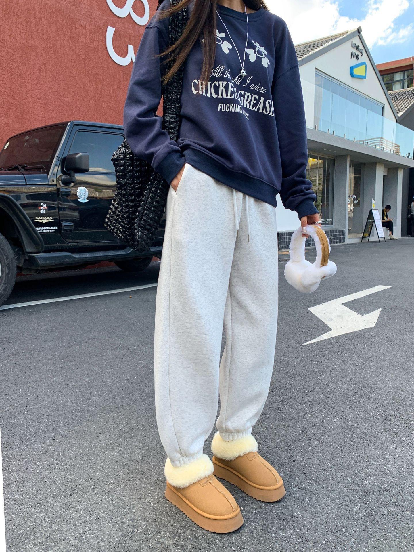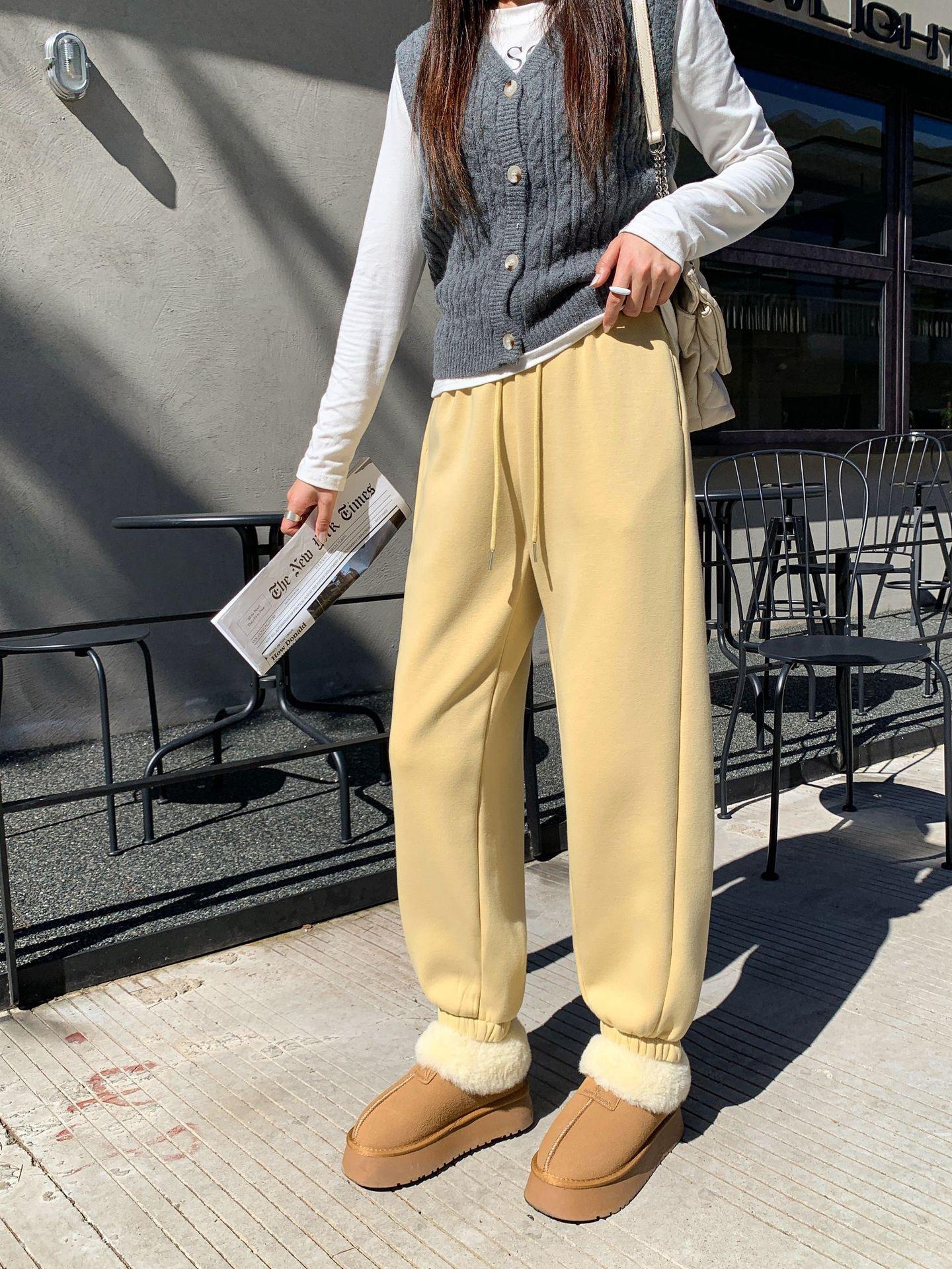 Pantalones Harlan de pierna gruesa con forro polar para mujer, estilo cálido de invierno, holgados, informales, deportivos, para todo tipo de combinaciones
