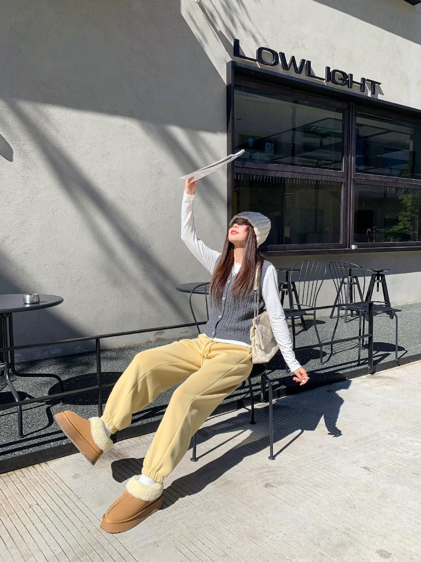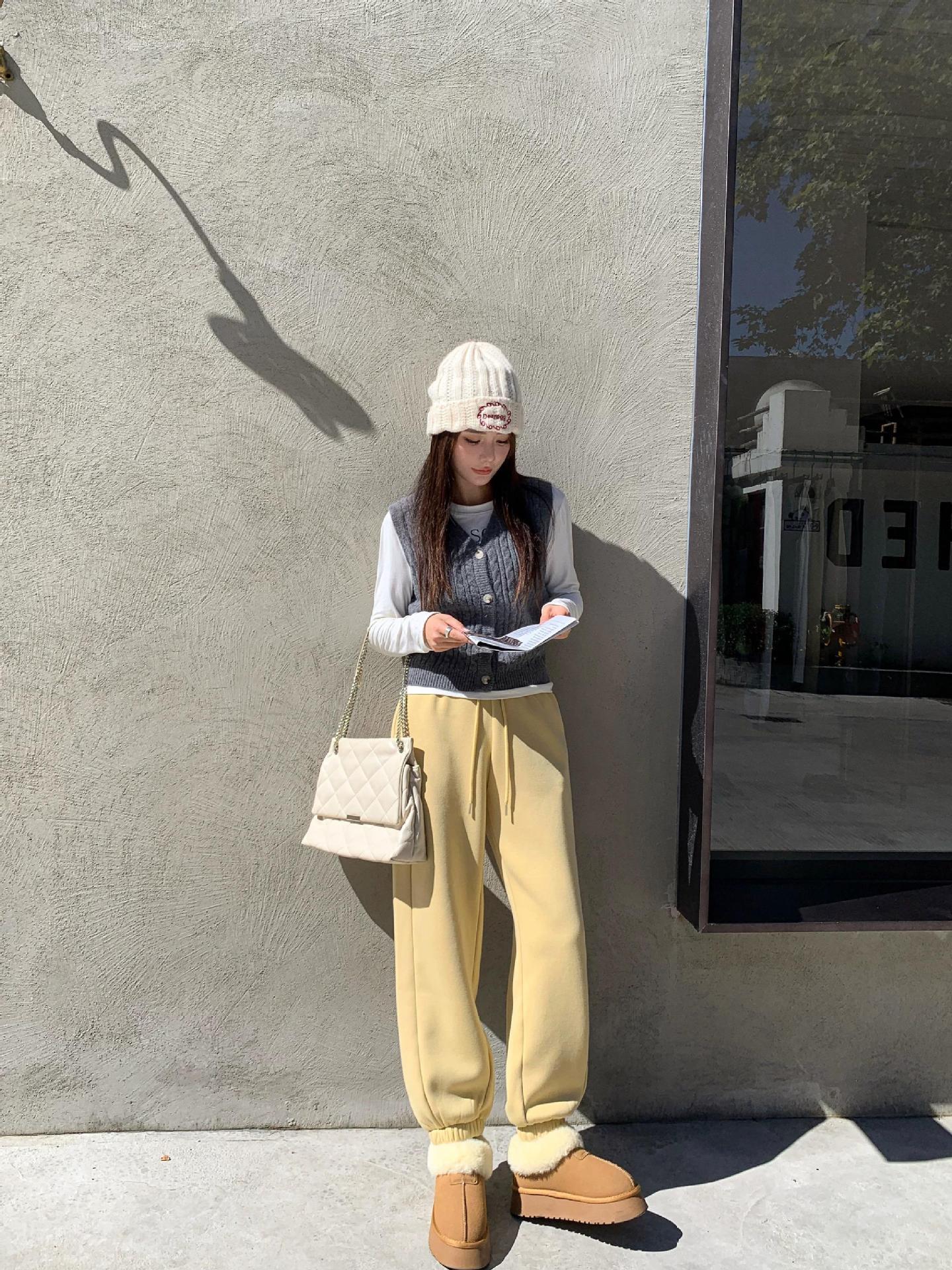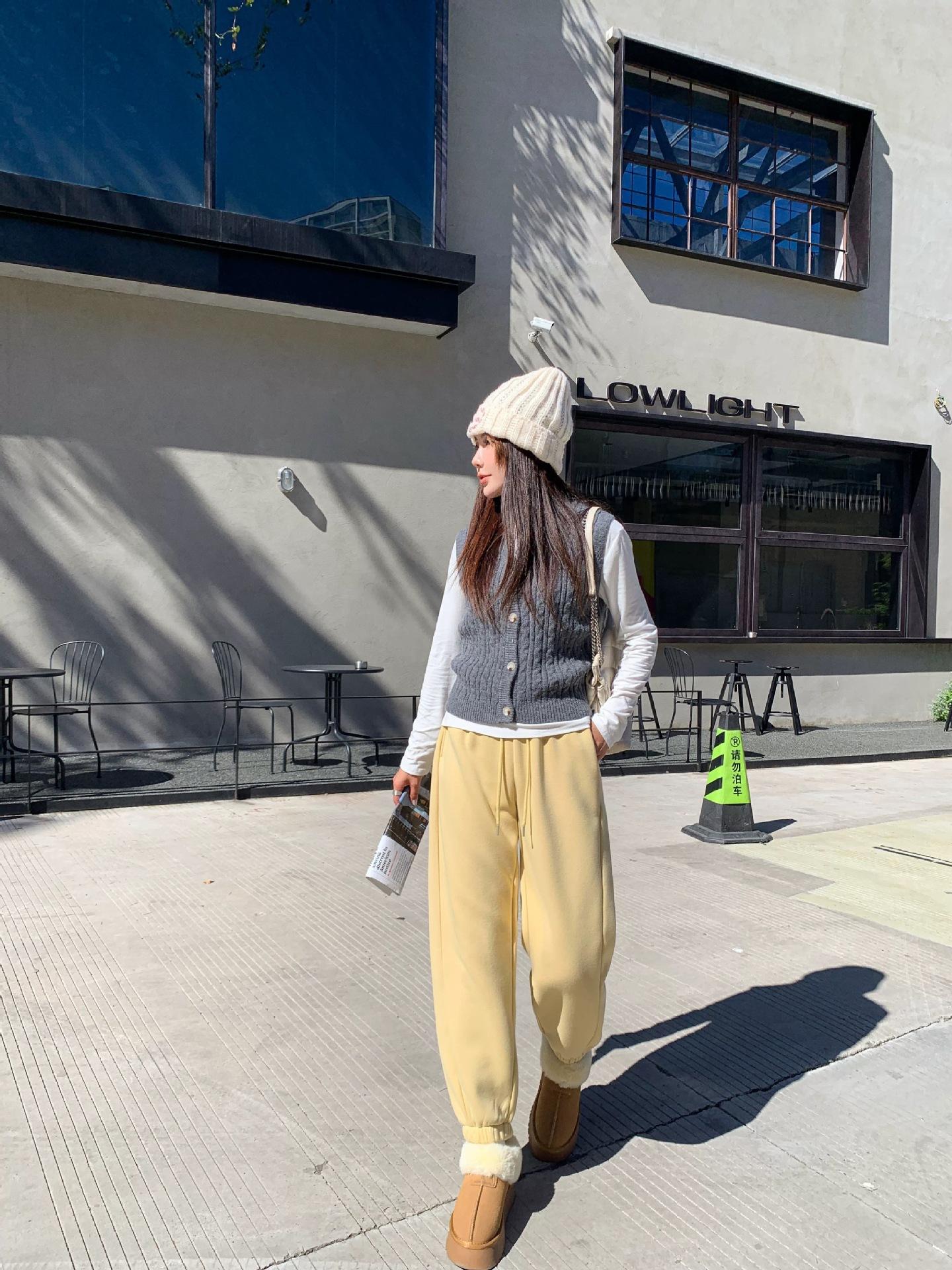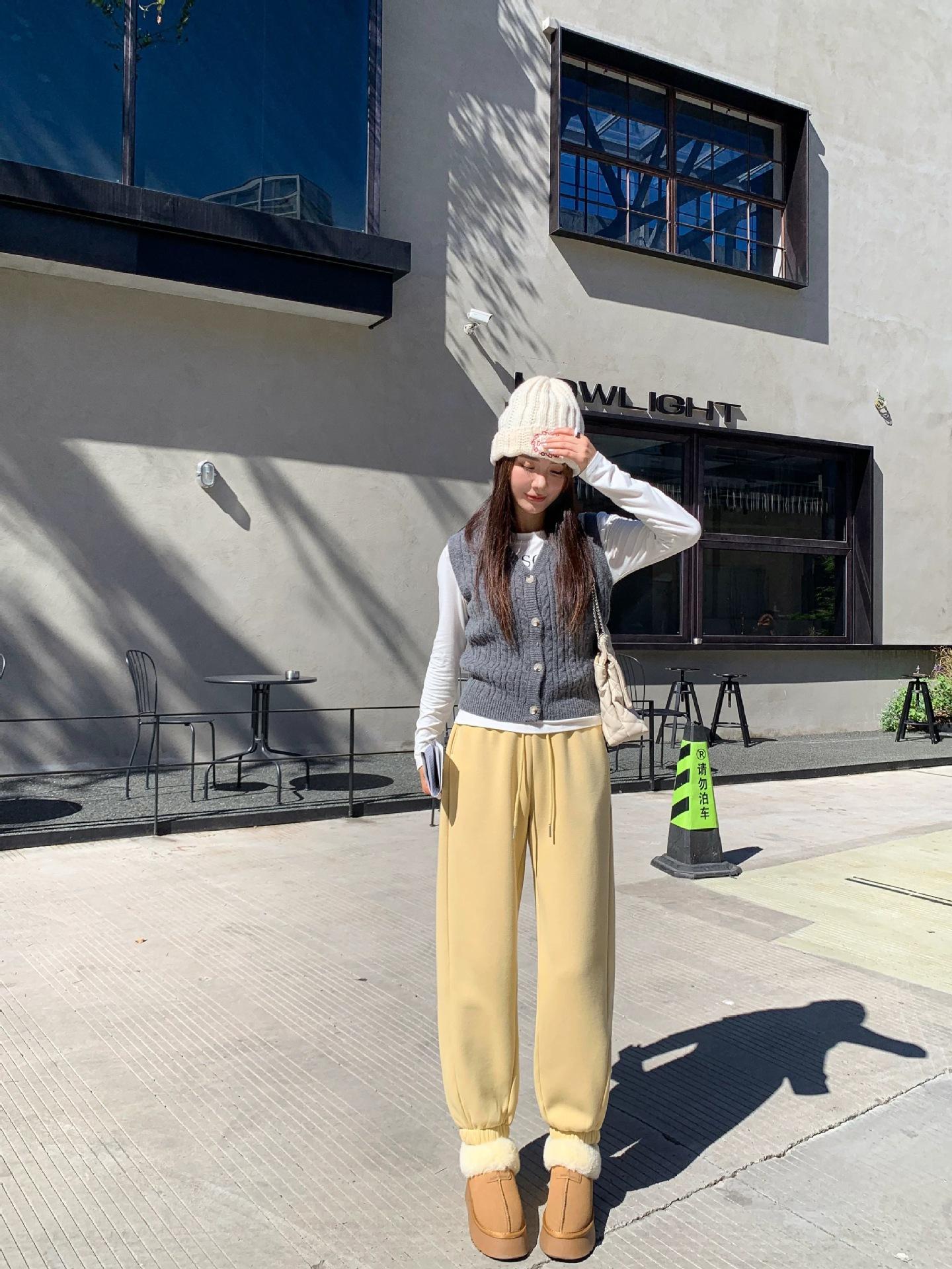Pantalones Harlan de pierna gruesa con forro polar para mujer, estilo cálido de invierno, holgados, informales, deportivos, para todo tipo de combinaciones