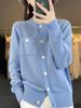Cárdigan de punto de lana peinada para mujer, de color liso, holgado, hueco, elegante, informal, sencillo, combinable, suave, con botones encerados.
