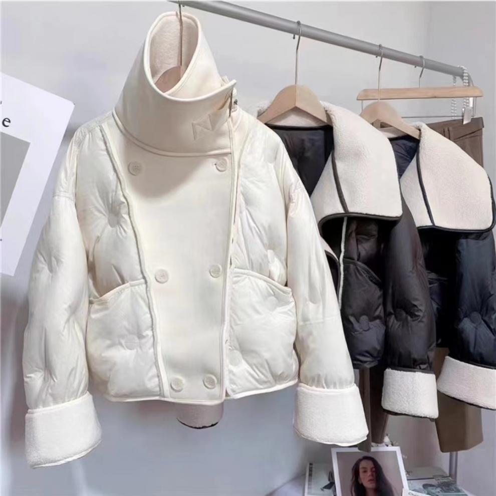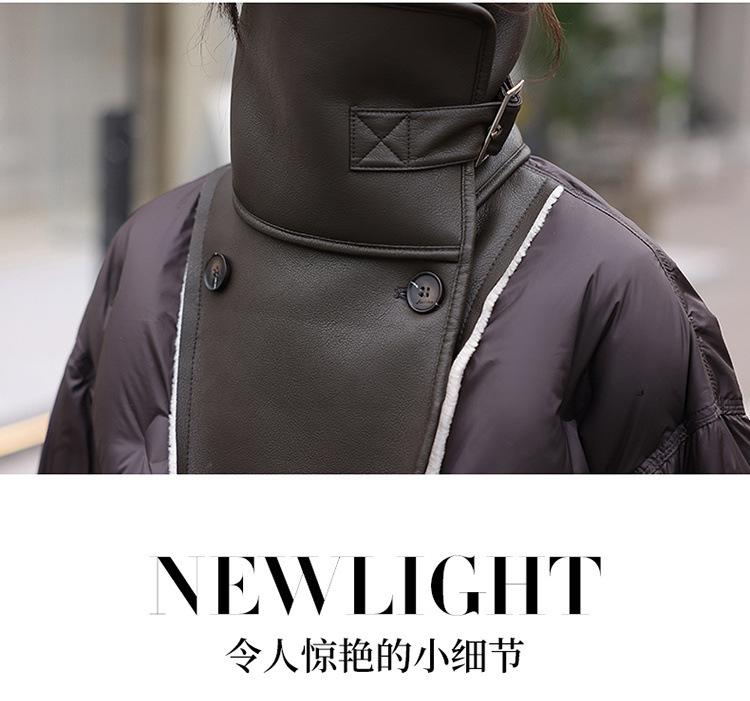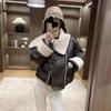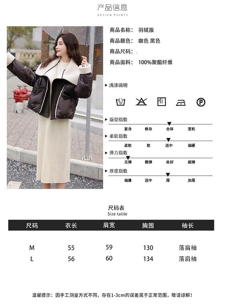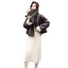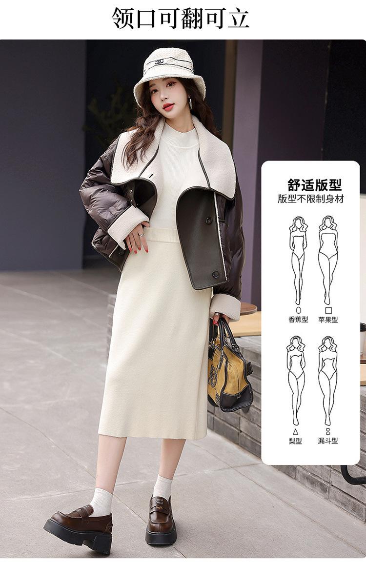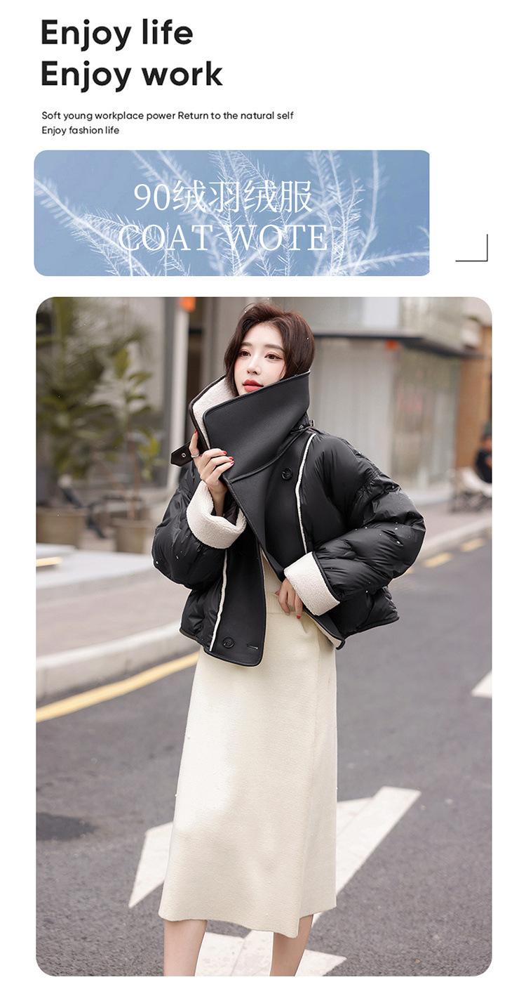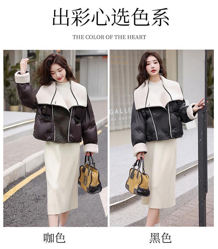 Europeo 2023 invierno Maillard solapa corto PU costuras suelto grueso nuevo chaqueta de plumón abrigo pequeño