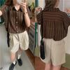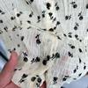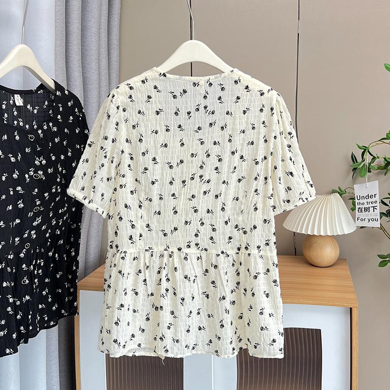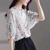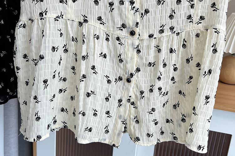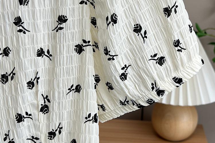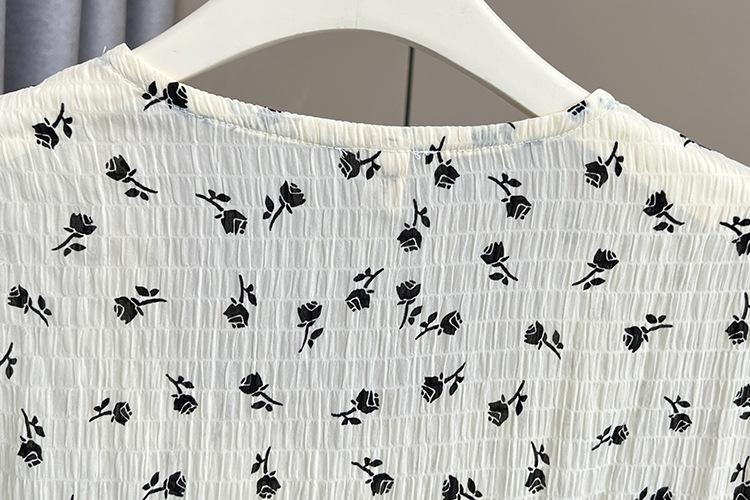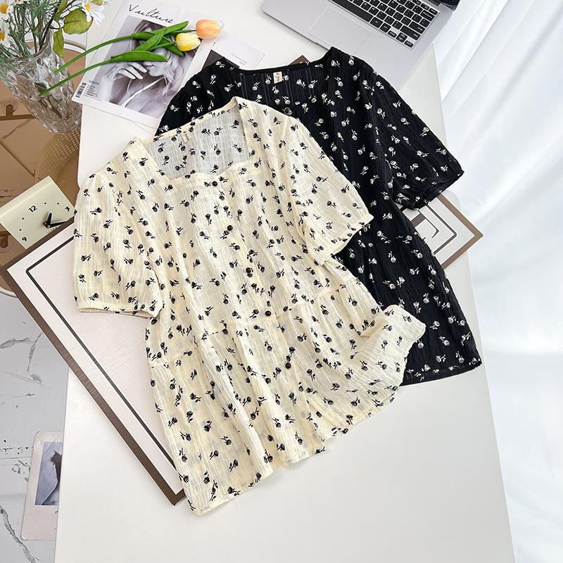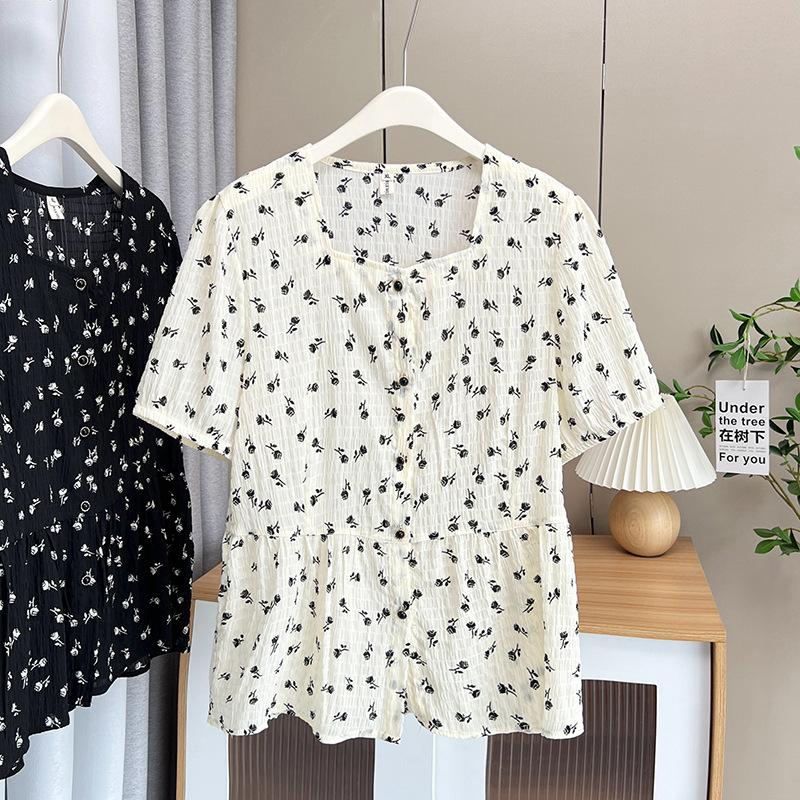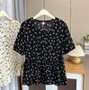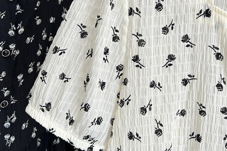 Camisa informal de cuello cuadrado con estampado floral y manga corta, estilo fresco 4240