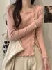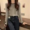 Camiseta de fondo multicolor para mujer, nueva chaqueta fina de manga larga con diseño de nicho de otoño, ajustada con cuello redondo, venta al por mayor