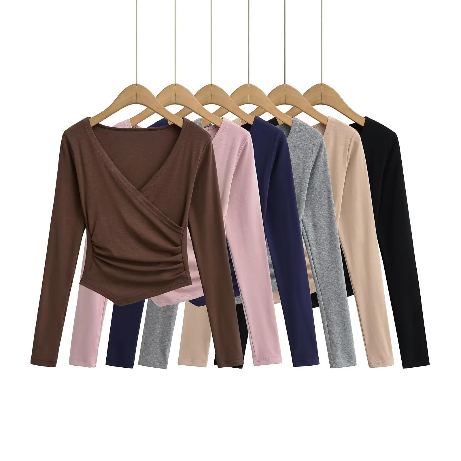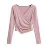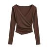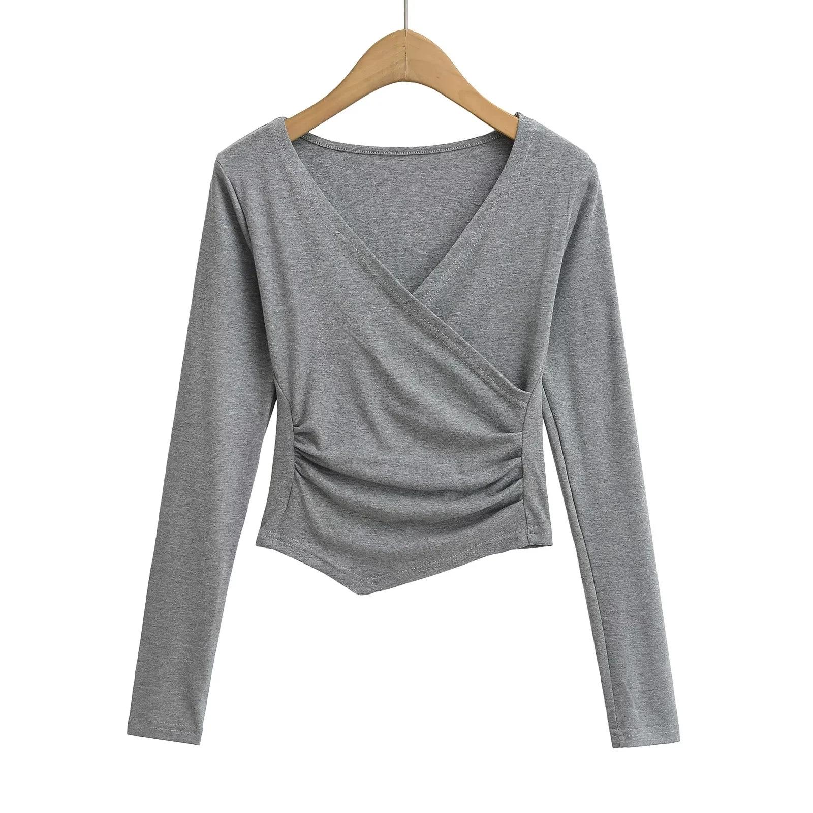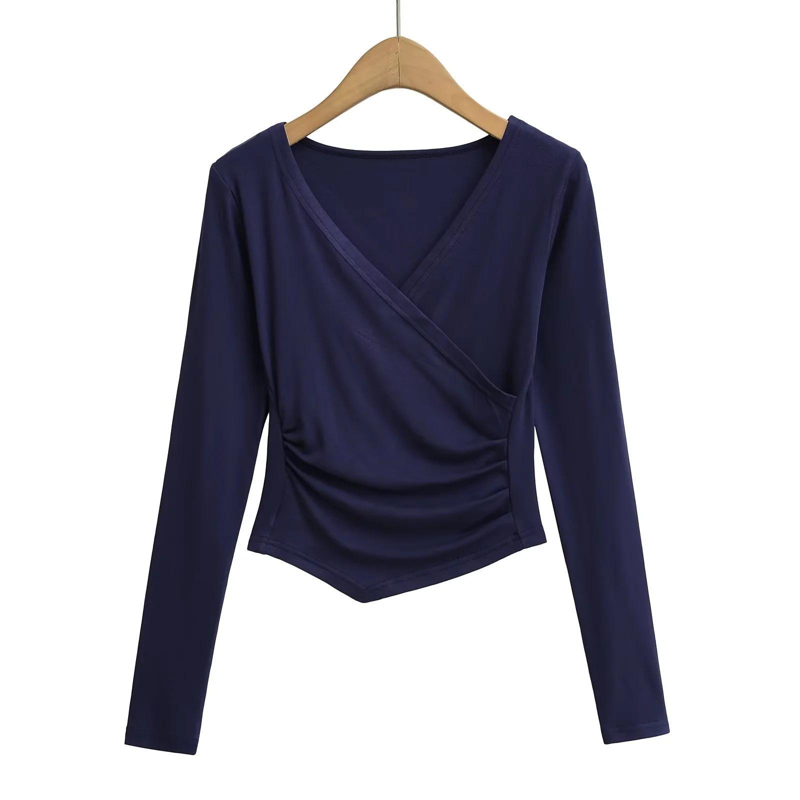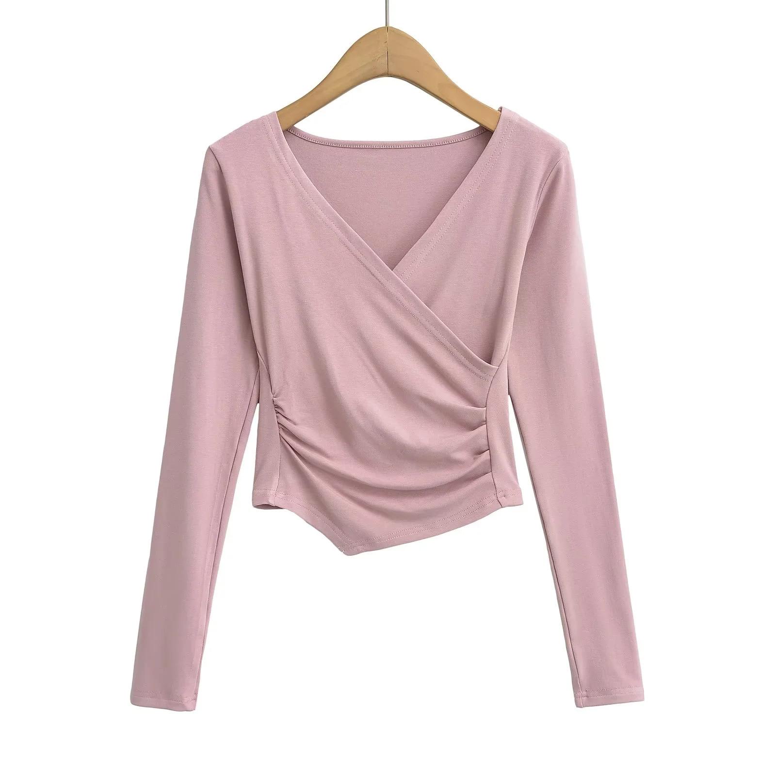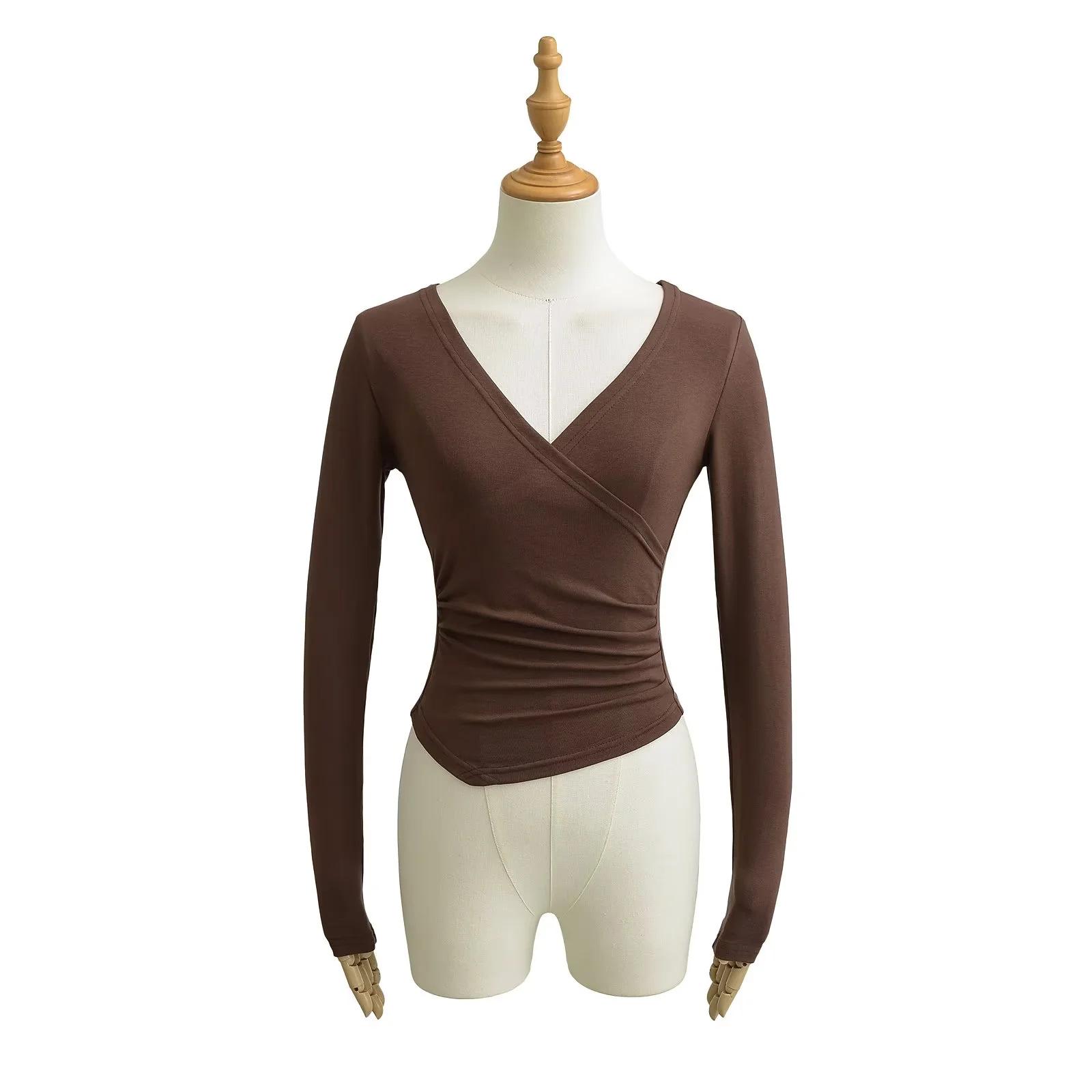 2025 nueva camiseta pura cruz cuello en V cintura manga larga para mujer reglas top de chica caliente lijado acolchado camiseta base