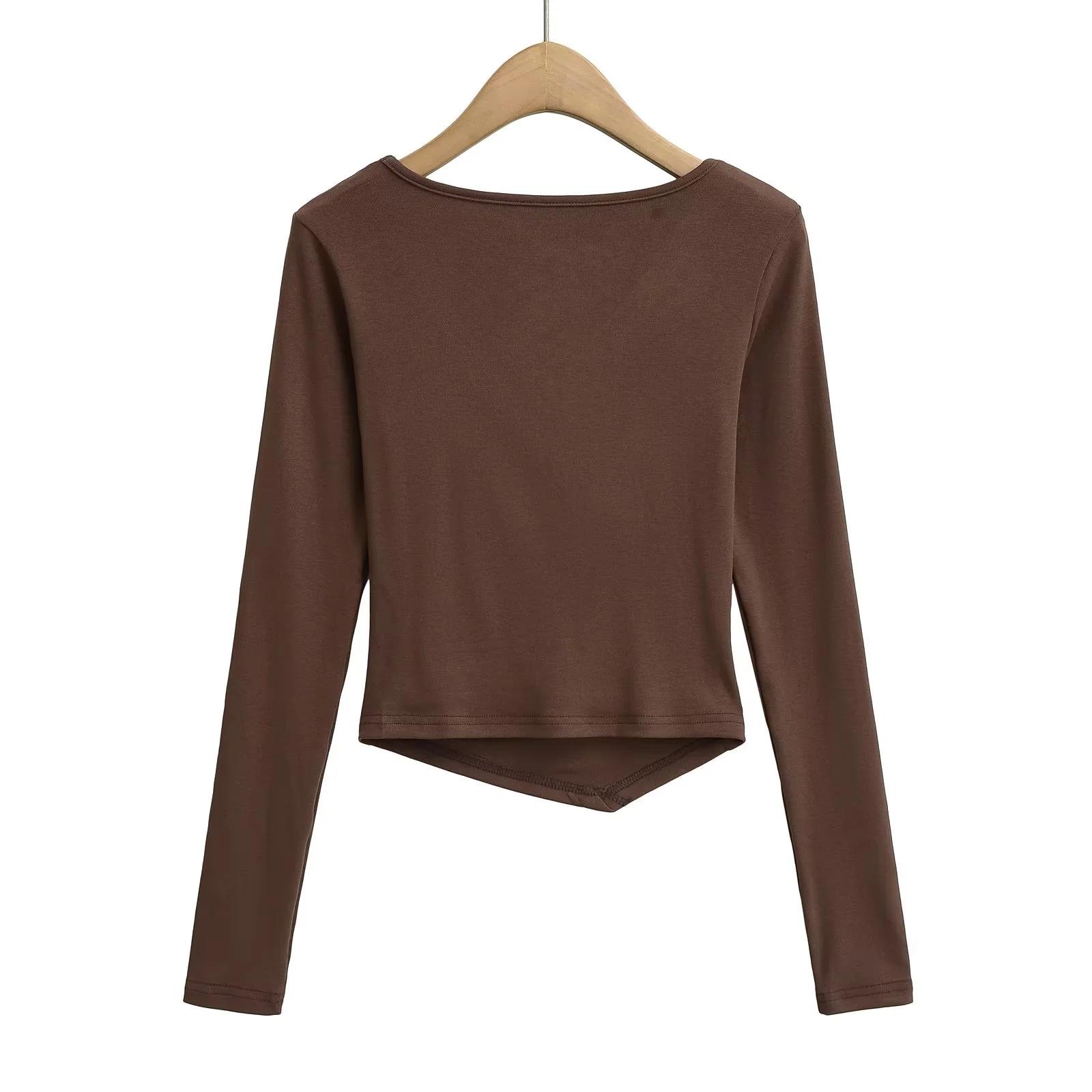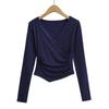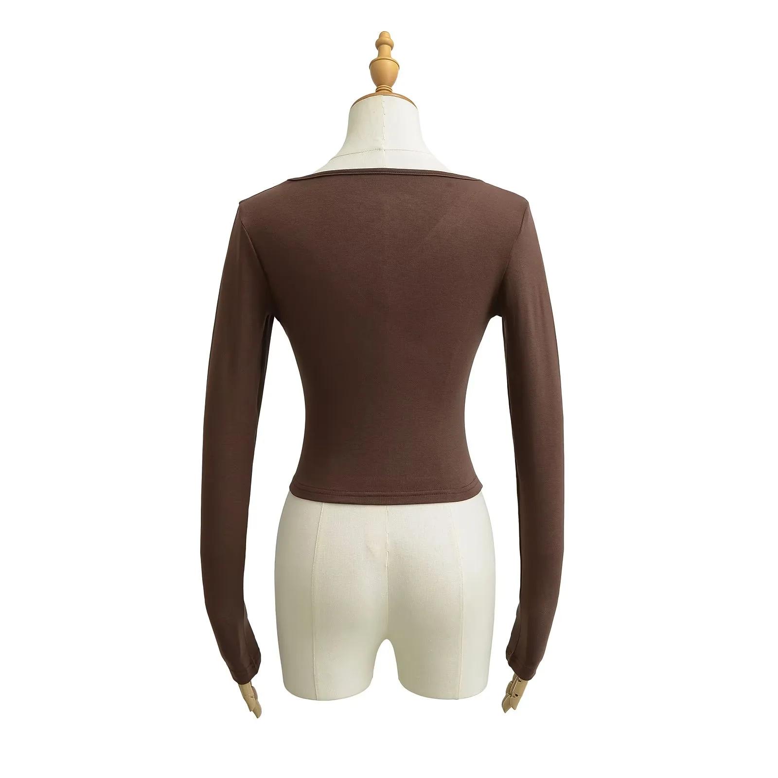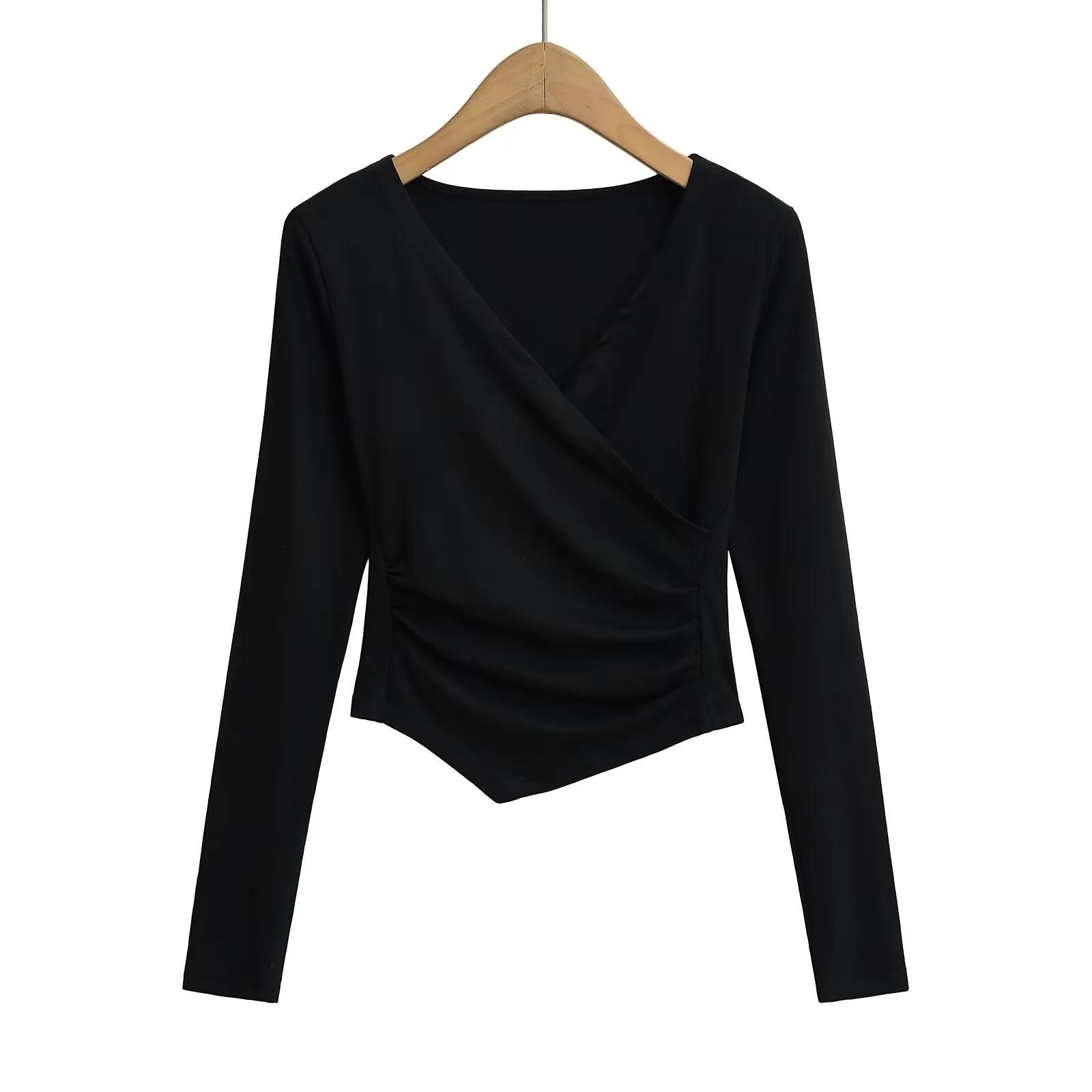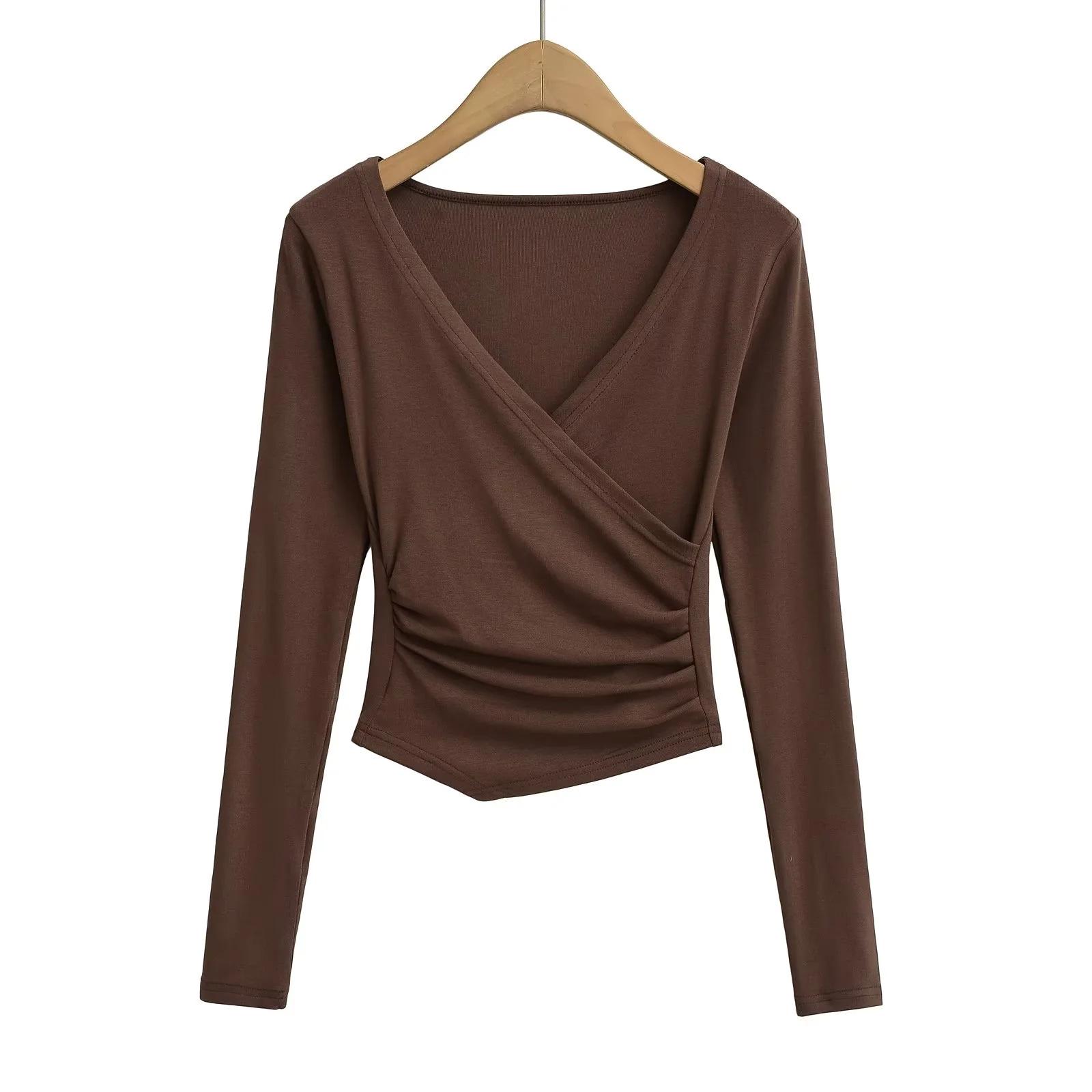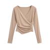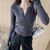 2025 nueva camiseta pura cruz cuello en V cintura manga larga para mujer reglas top de chica caliente lijado acolchado camiseta base