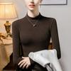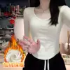 Camiseta interior de invierno para mujer, de algodón, de manga larga, con cuello alto y hombros descubiertos, ajustada, 2024