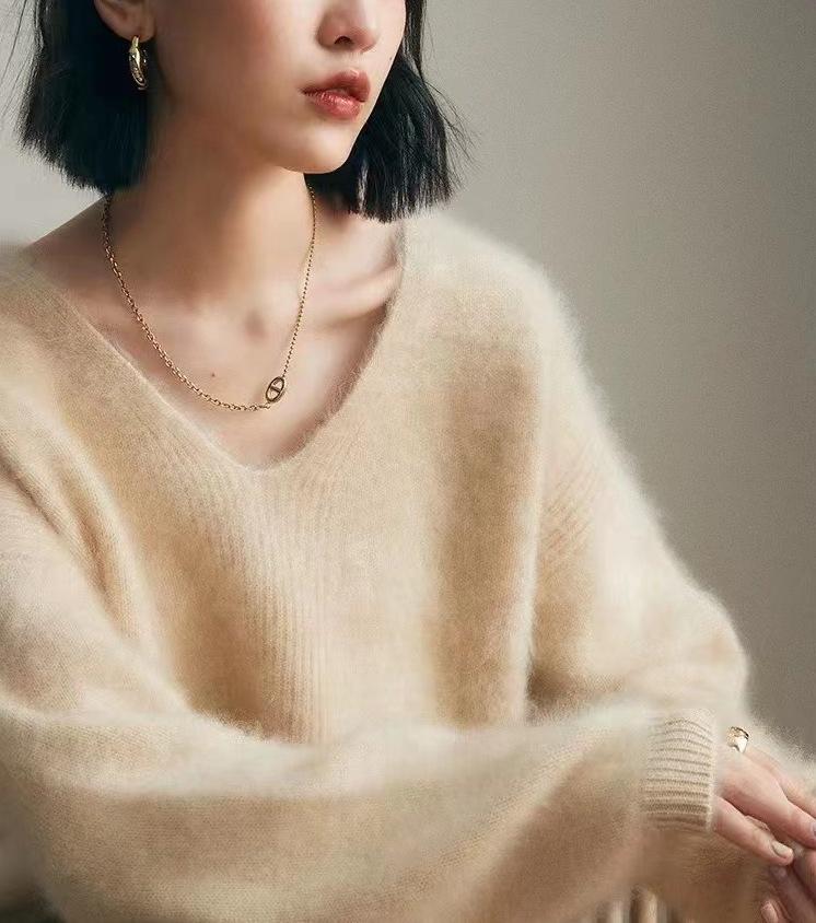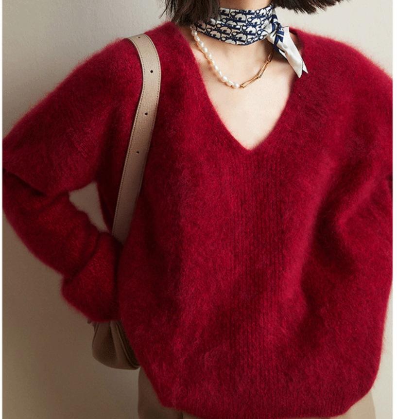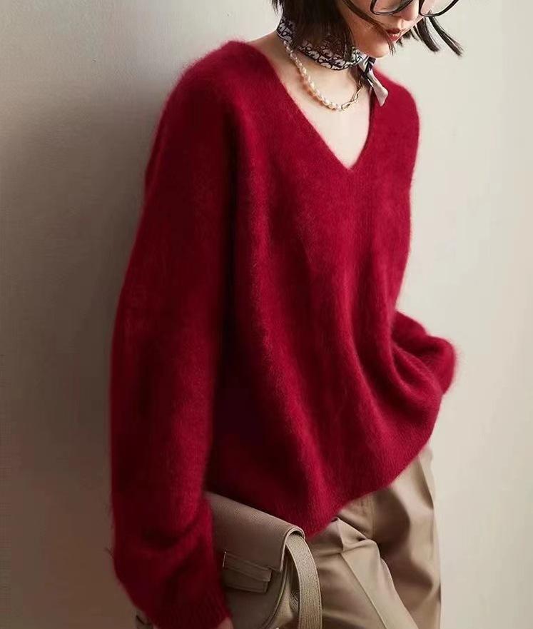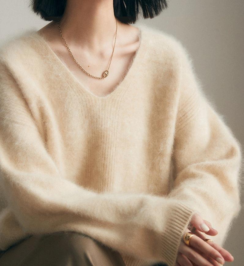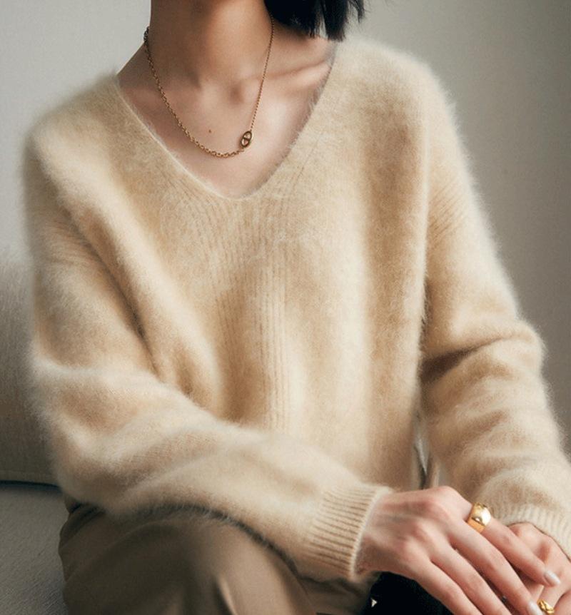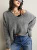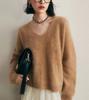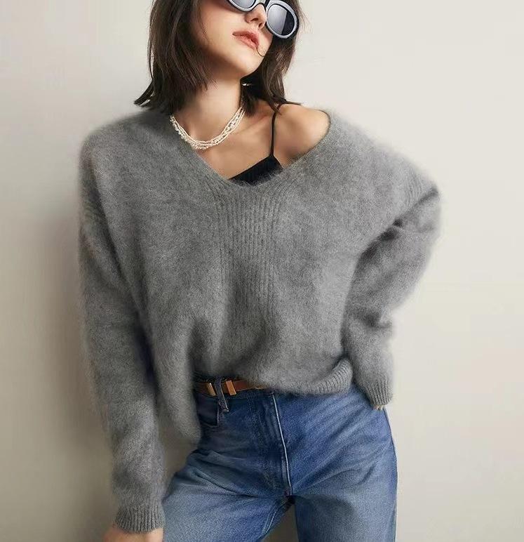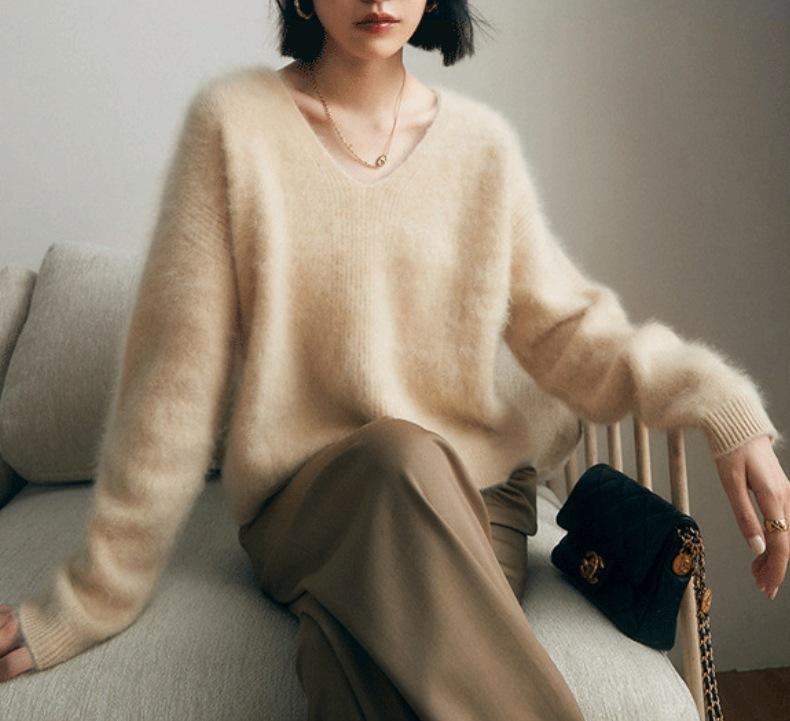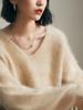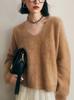 Suéter de cuello en V de terciopelo de visón de imitación de cera suave de alta calidad para mujer, suéter fufu de leche de viento perezoso engrosado de otoño e invierno