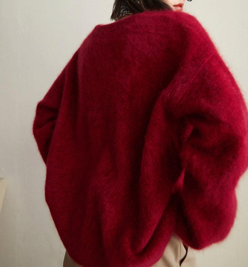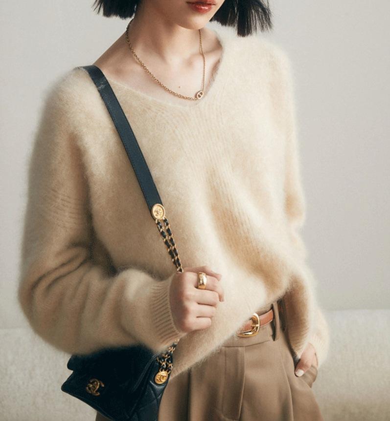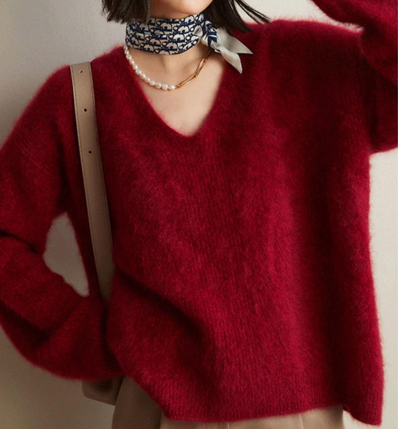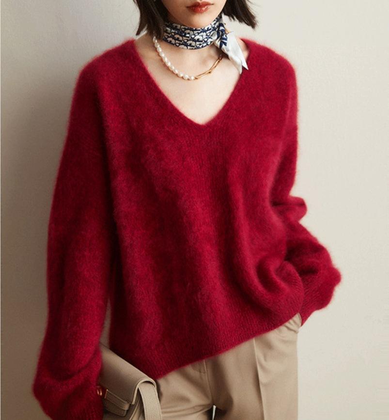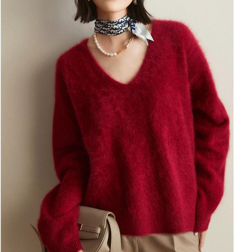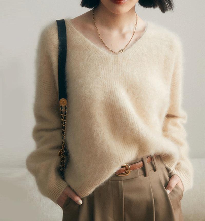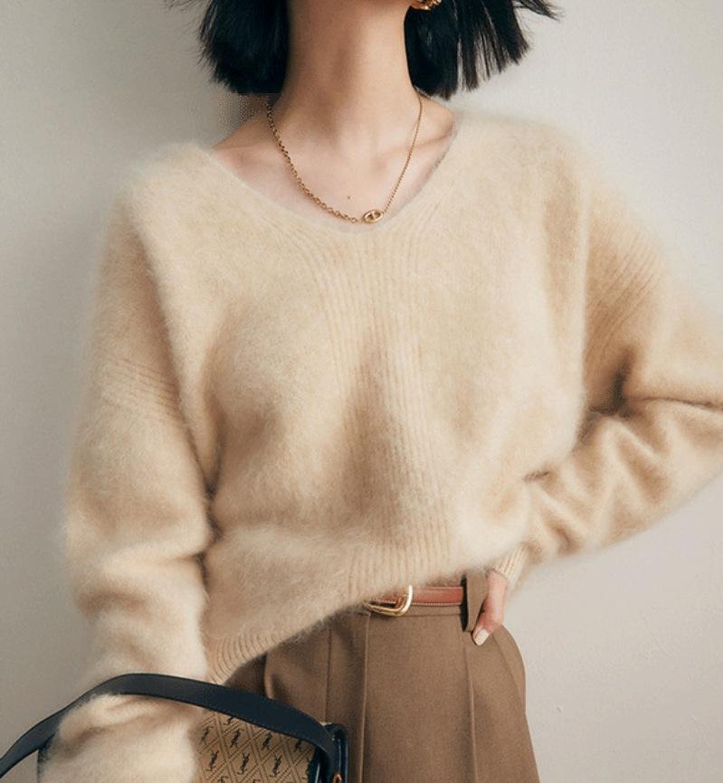 Suéter de cuello en V de terciopelo de visón de imitación de cera suave de alta calidad para mujer, suéter fufu de leche de viento perezoso engrosado de otoño e invierno