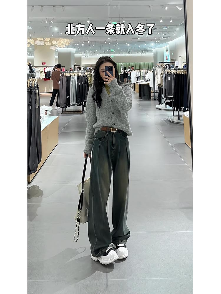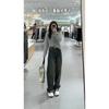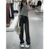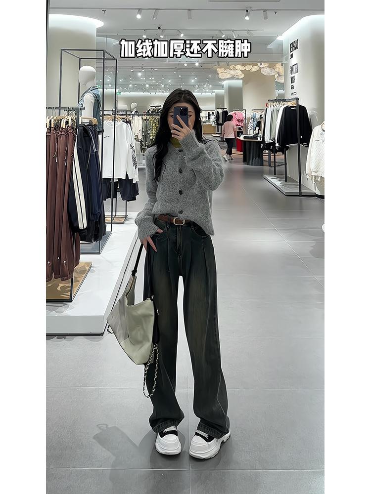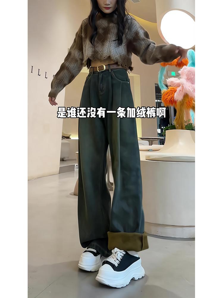Pantalones vaqueros retro de talla grande estilo americano con forro polar para mujer, otoño e invierno 2024, nuevos pantalones adelgazantes de cintura alta y sueltos para chica gordita