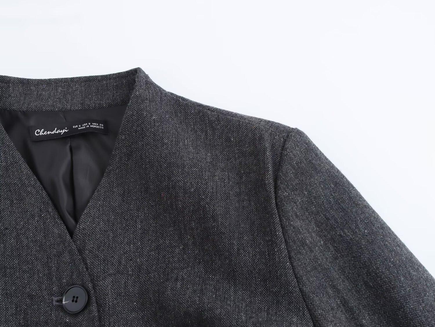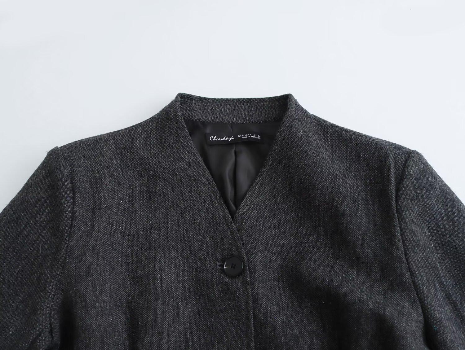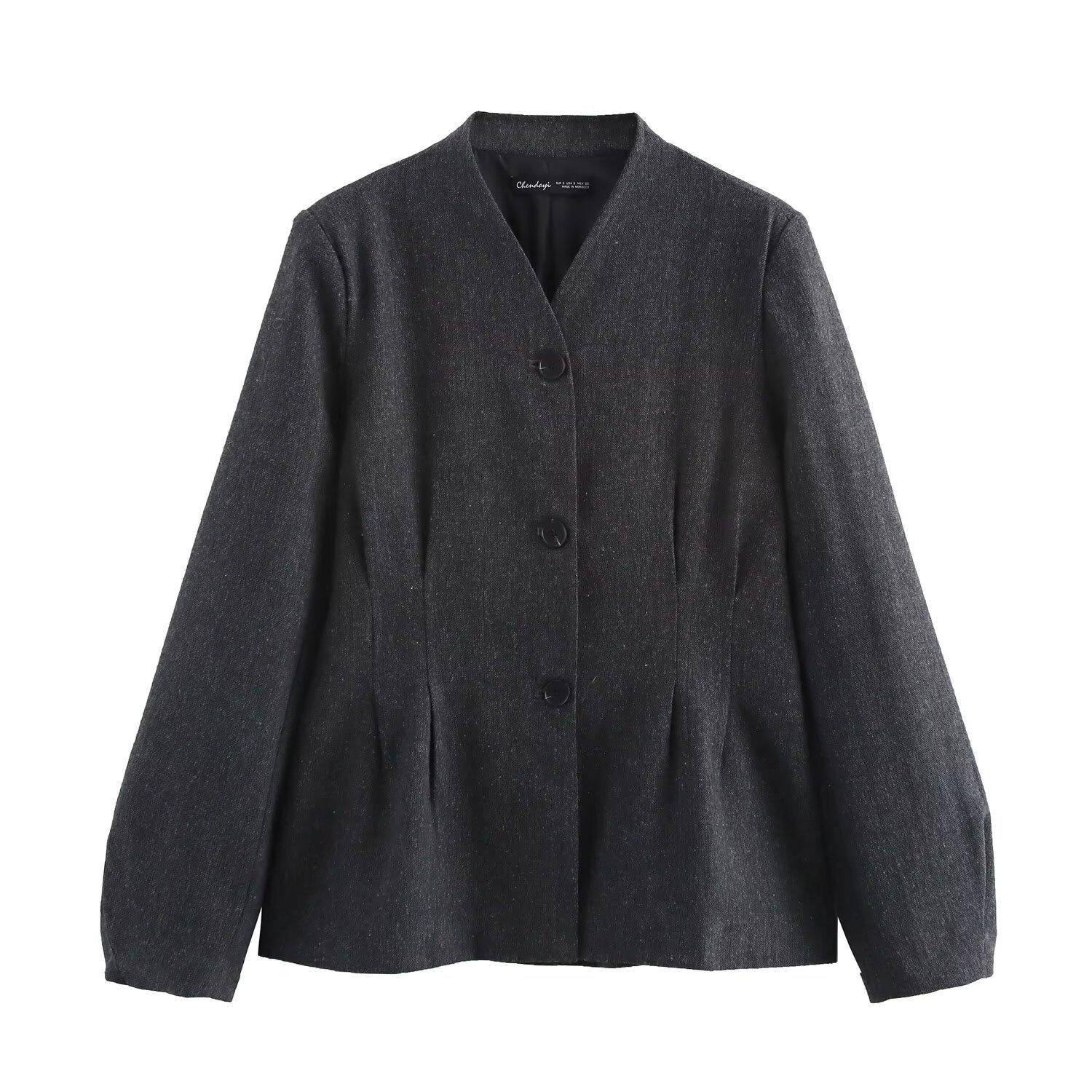 Chaqueta de traje plisada ajustada de moda urbana nueva de otoño e invierno 2024 para mujer europea y americana de comercio exterior transfronterizo de Amazon