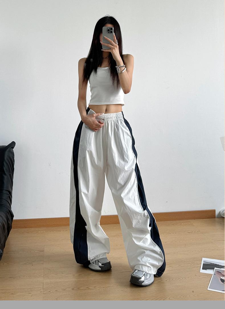 Pantalones Jogger Casuales con Pliegues y Bloques de Color para Mujer, Pantalones Deportivos Holgados Versátiles, Pantalones Largos Rectos Finos de Secado Rápido, Trendy