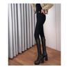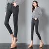 Vaqueros ajustados de terciopelo con cintura alta, elásticos y negros, para otoño e invierno.