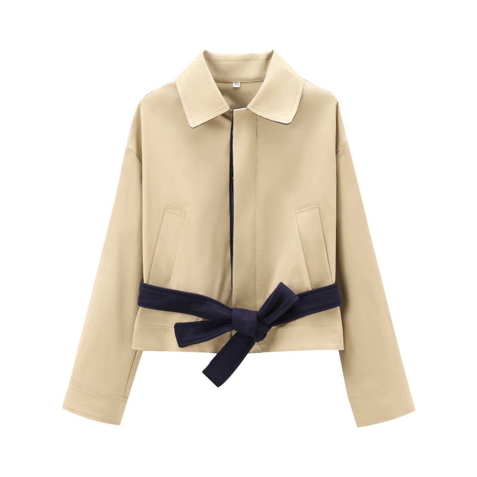 Chaqueta de manga larga con solapa y cinturón para mujer europea y americana transfronteriza, nueva moda urbana de otoño e invierno de 2024