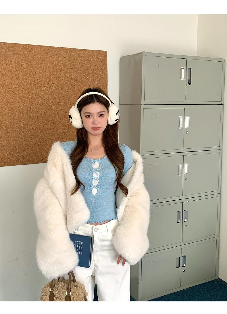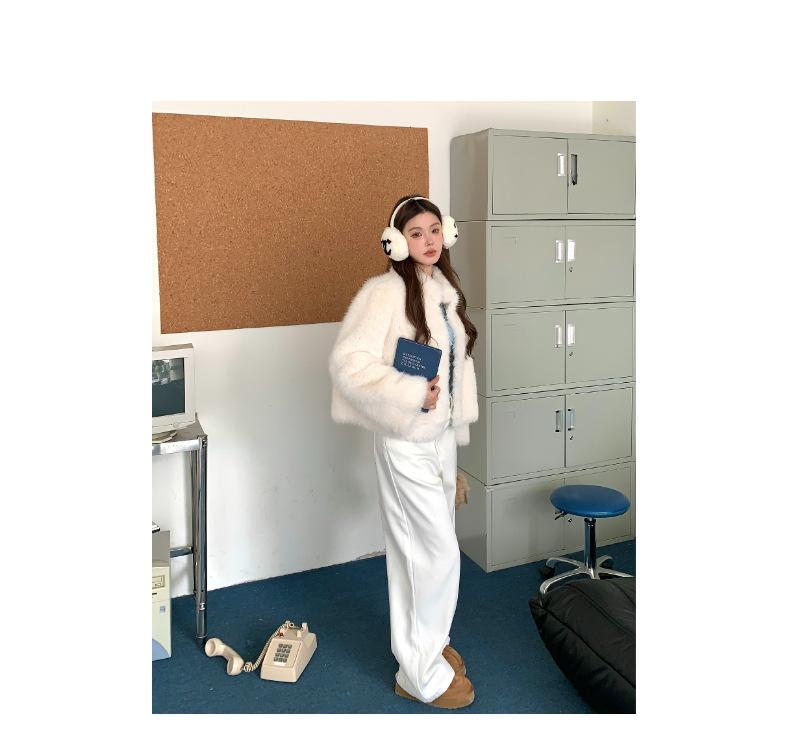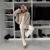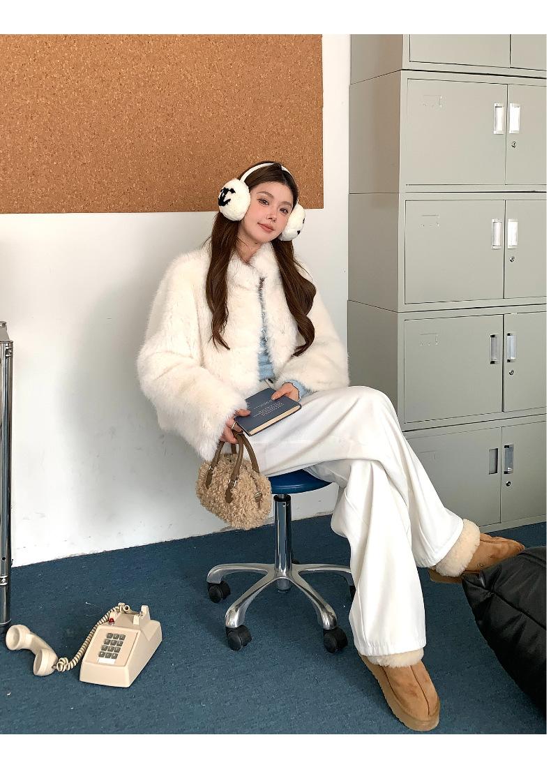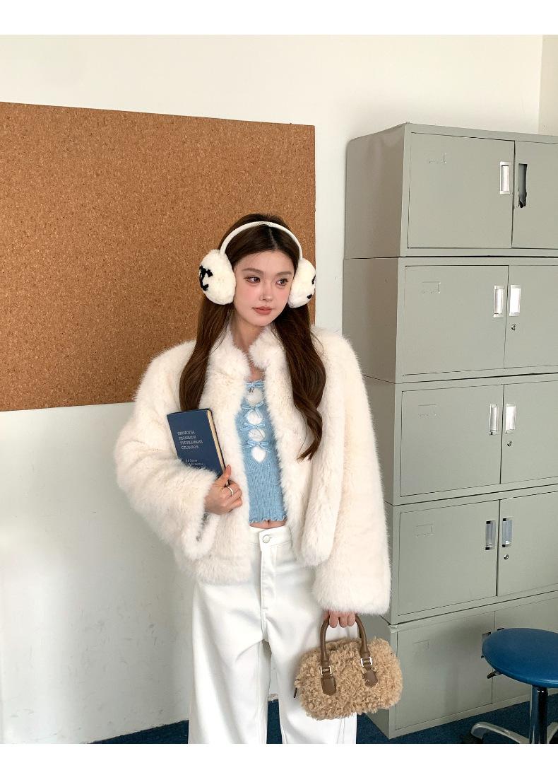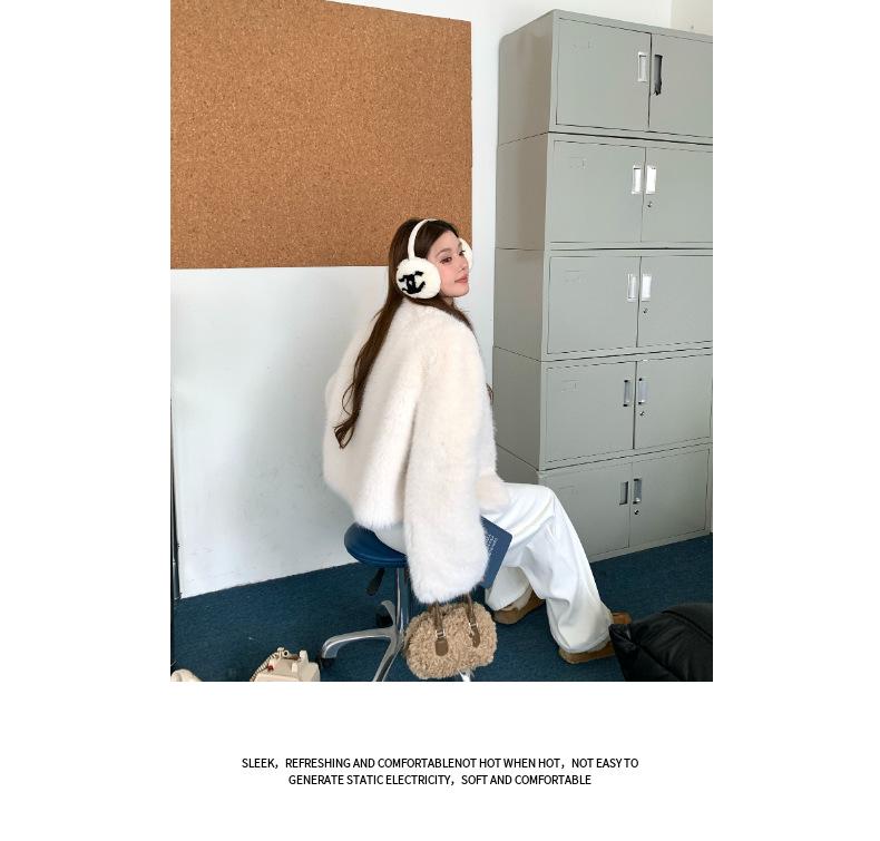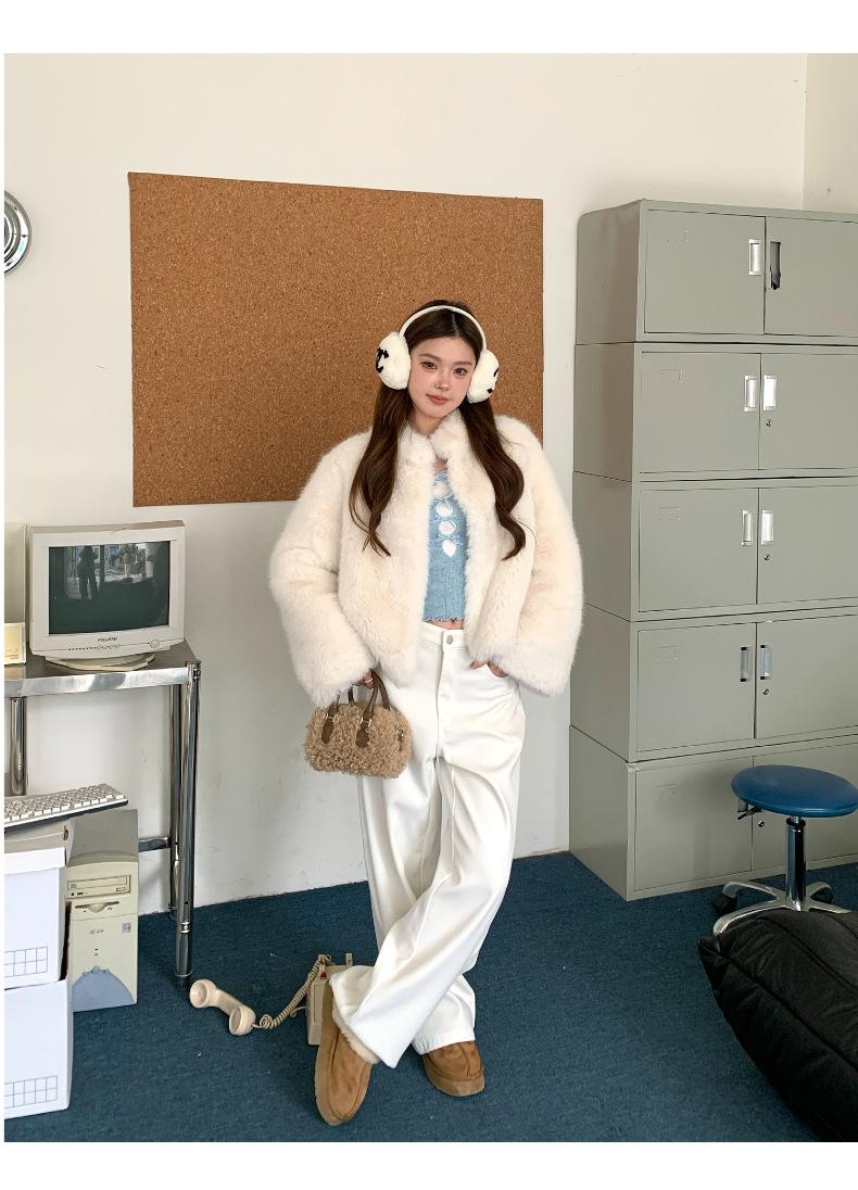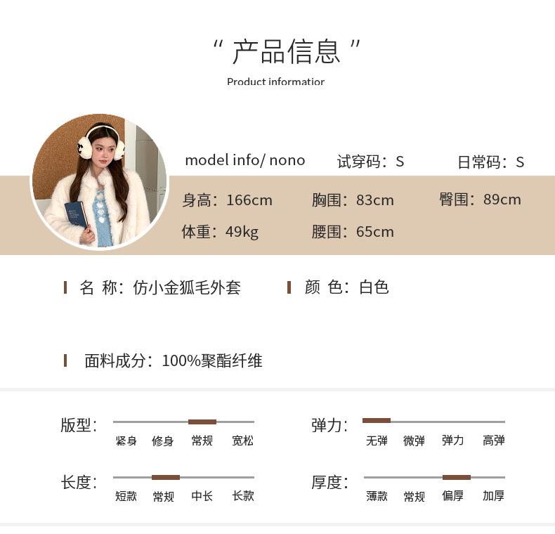 En stock SHE U Moda de Invierno Abrigo de Piel Sintética de Zorro Dorado para Mujer Cuello Cálido Peludo