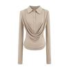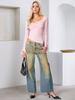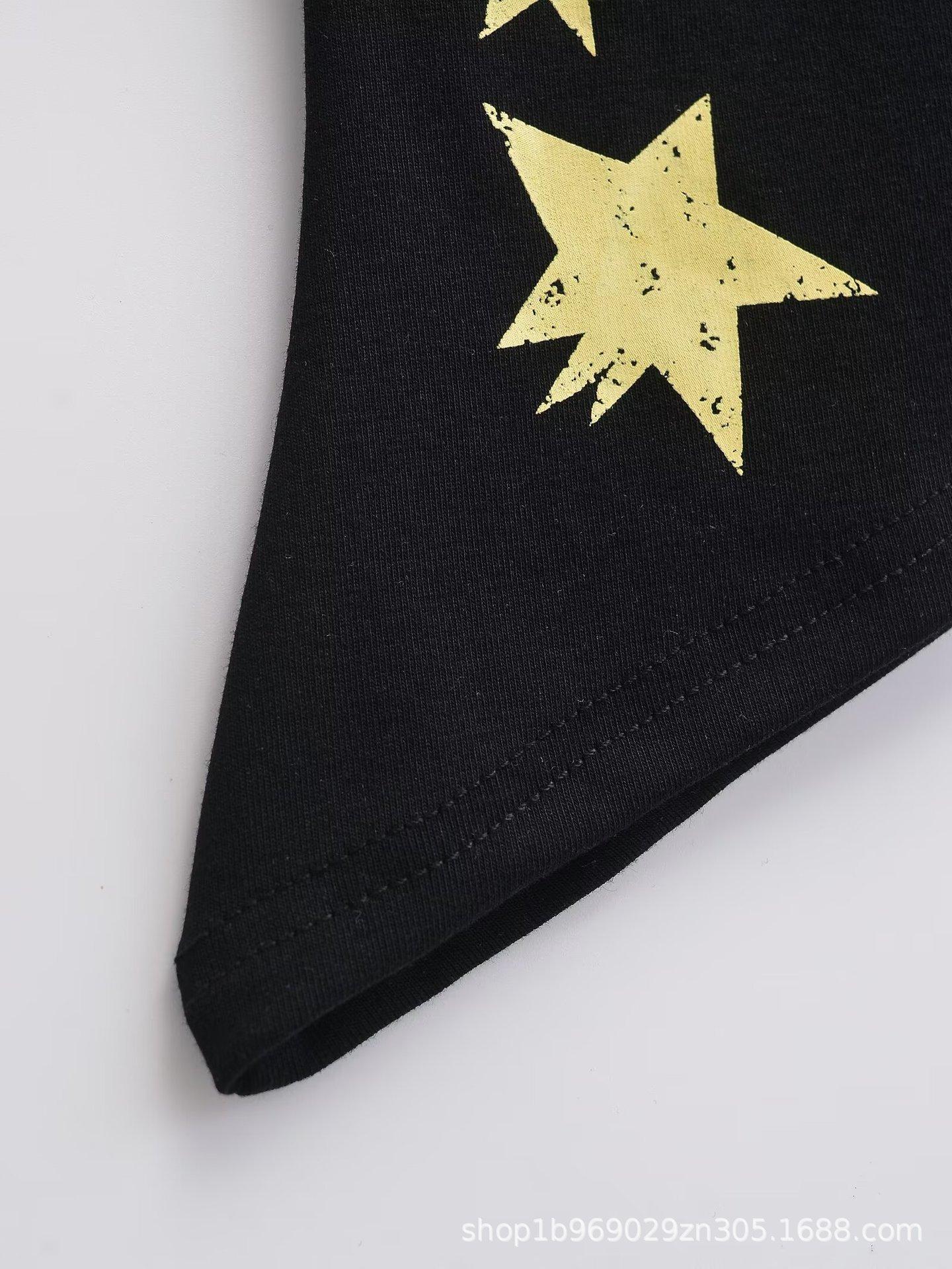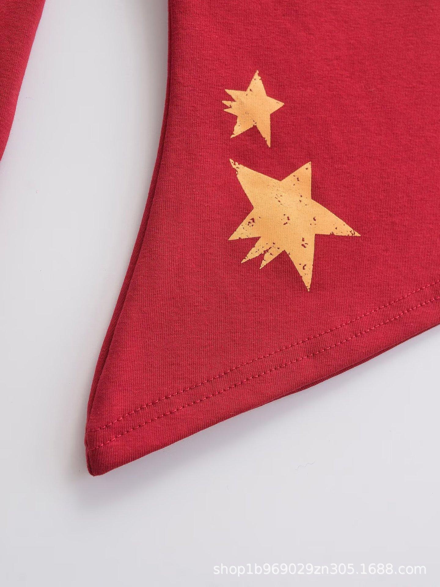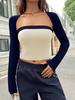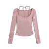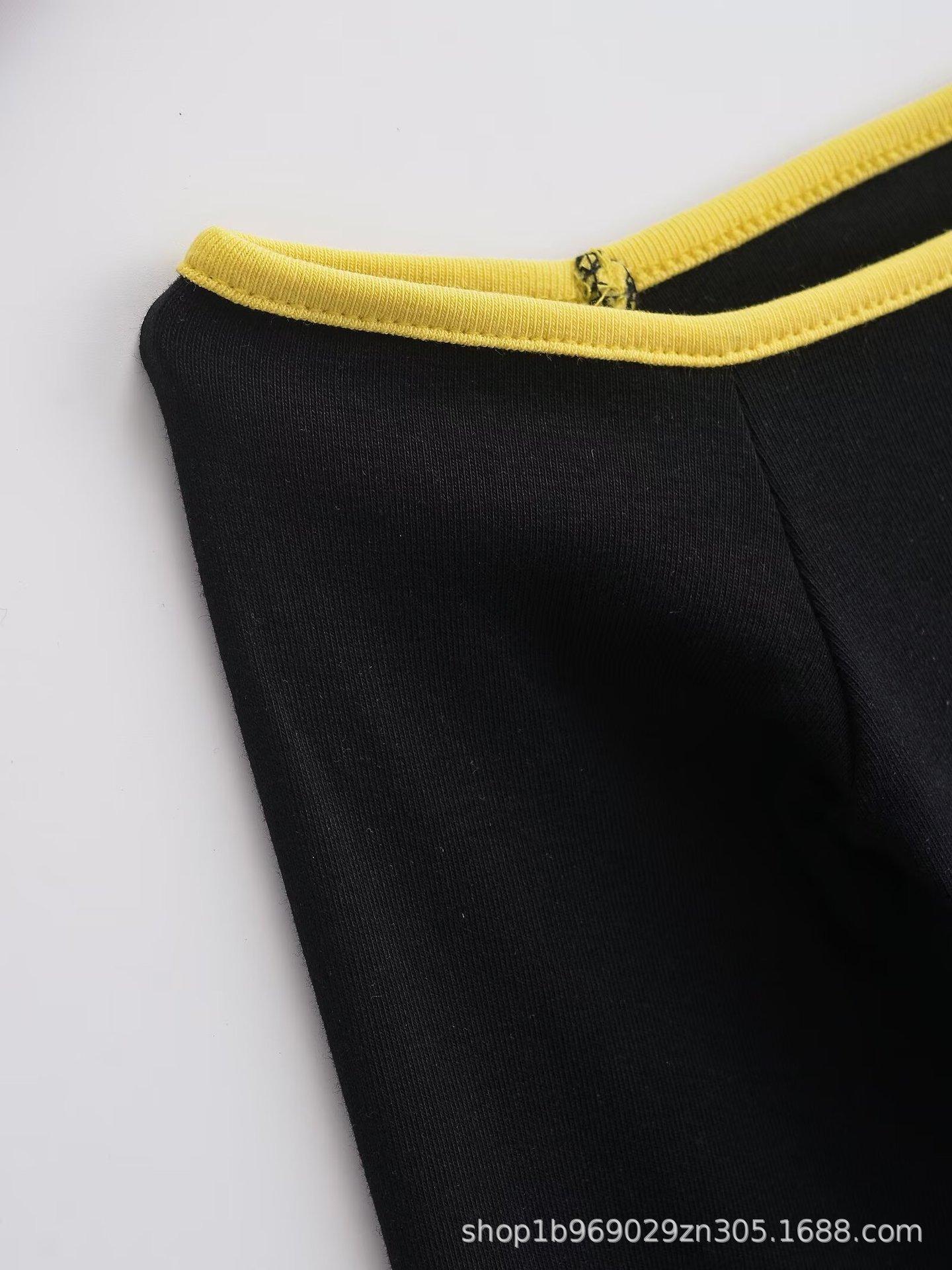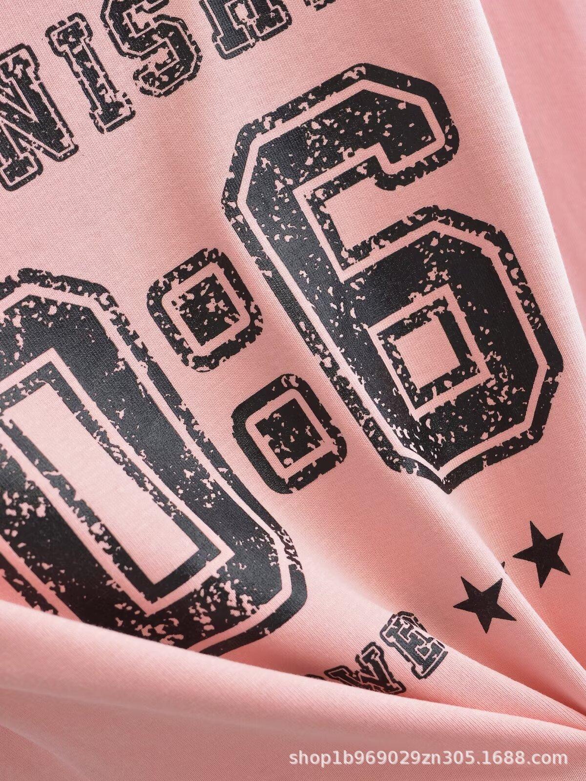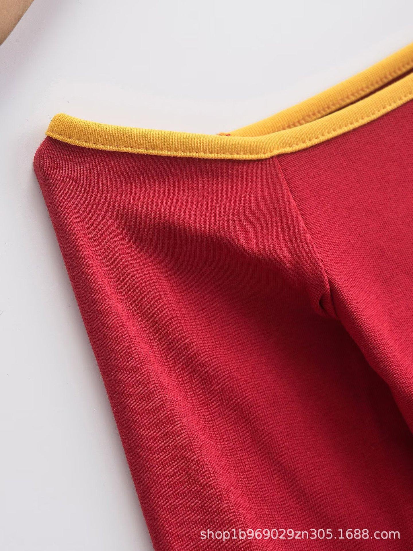 2024 Transfronterizo Estilo Spice Girl Francés Cuello Cruzado Hombro Descubierto Estampado de Letras Color en Contraste Camiseta de Manga Larga Otoño Nuevo Top de Ajuste Ceñido