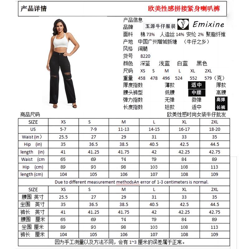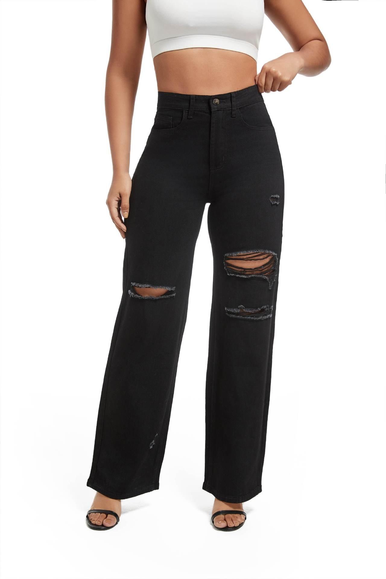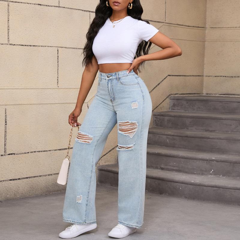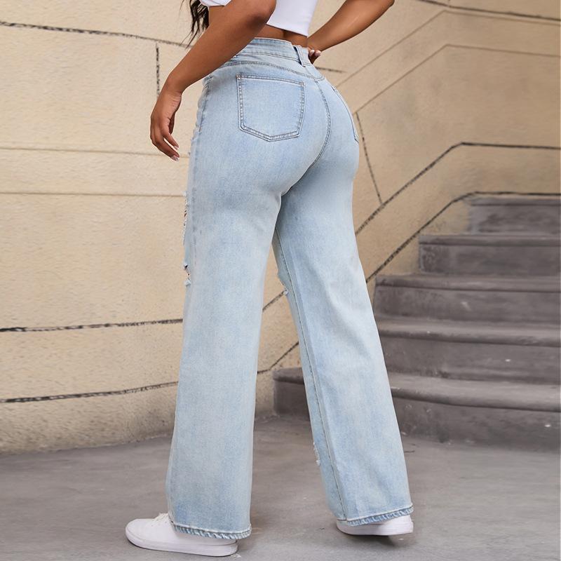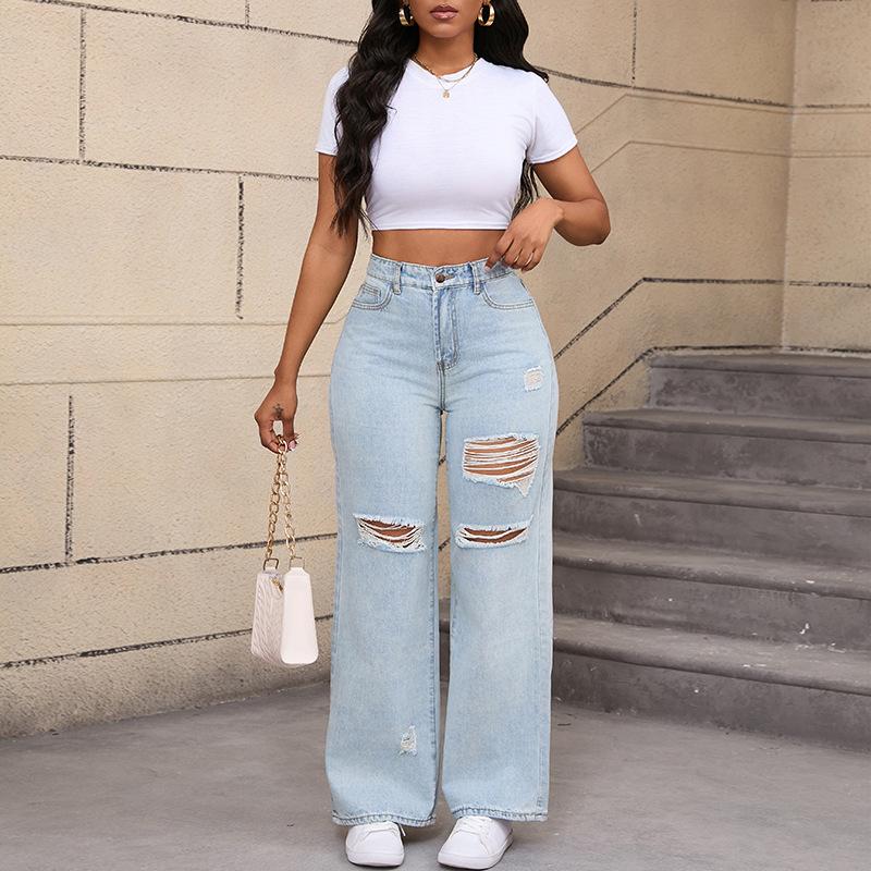 2024 Nuevo Suministro Directo Transfronterizo Amazon Jeans de Pierna Ancha Rotos de Alta Calidad para Mujer Venta Directa de Fábrica