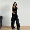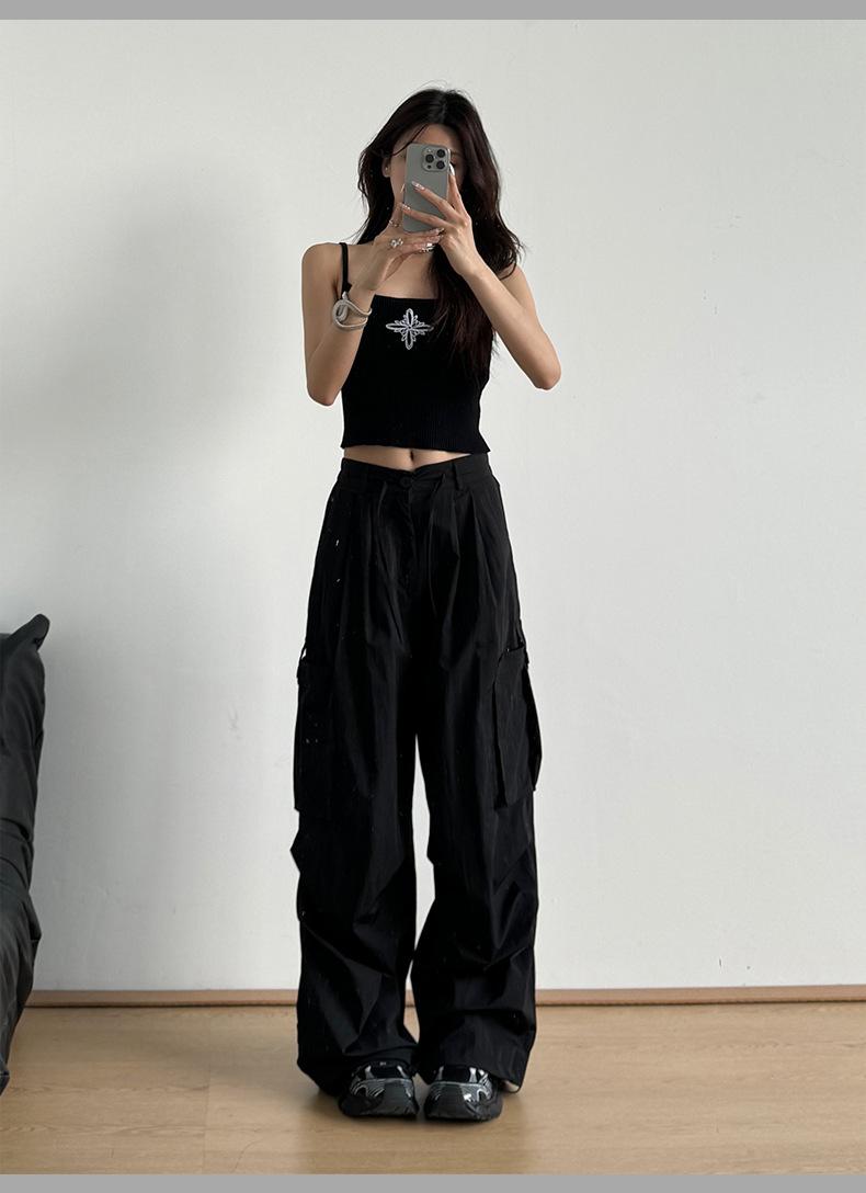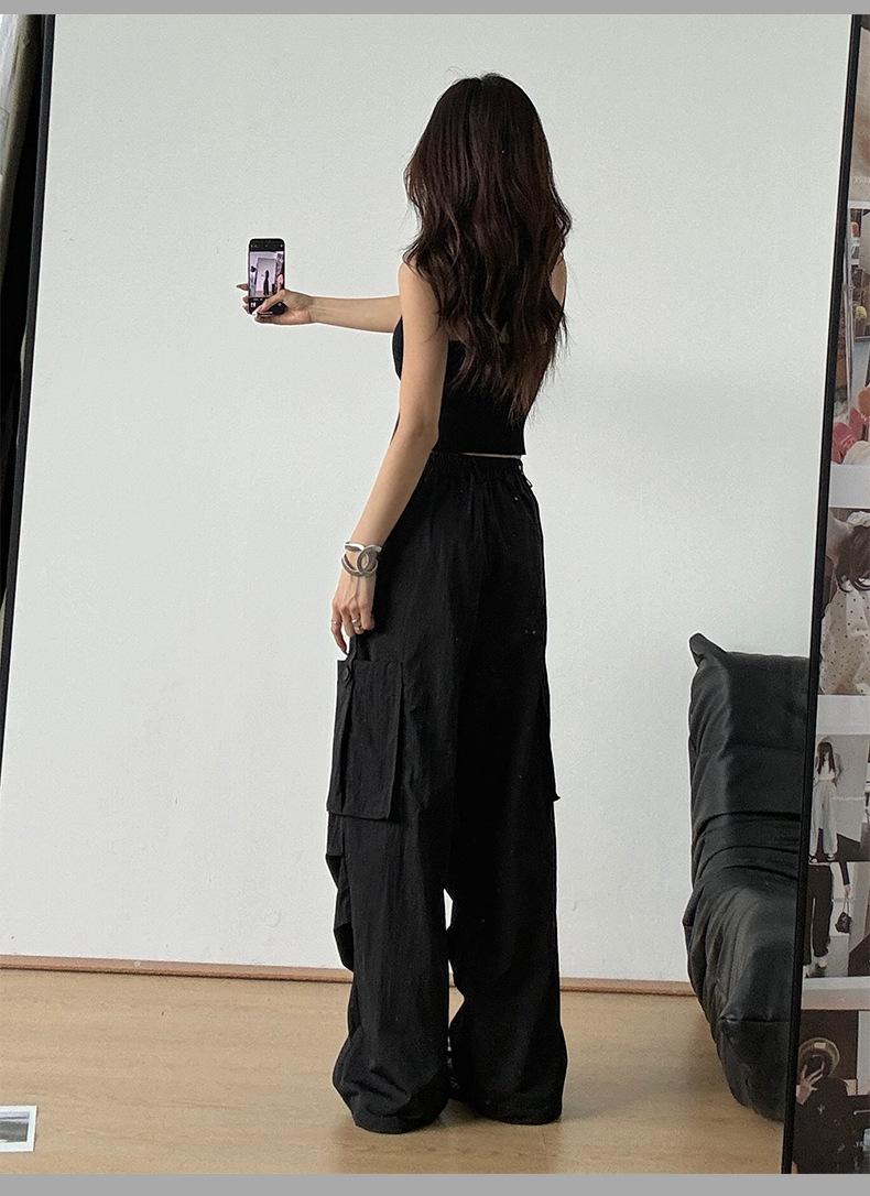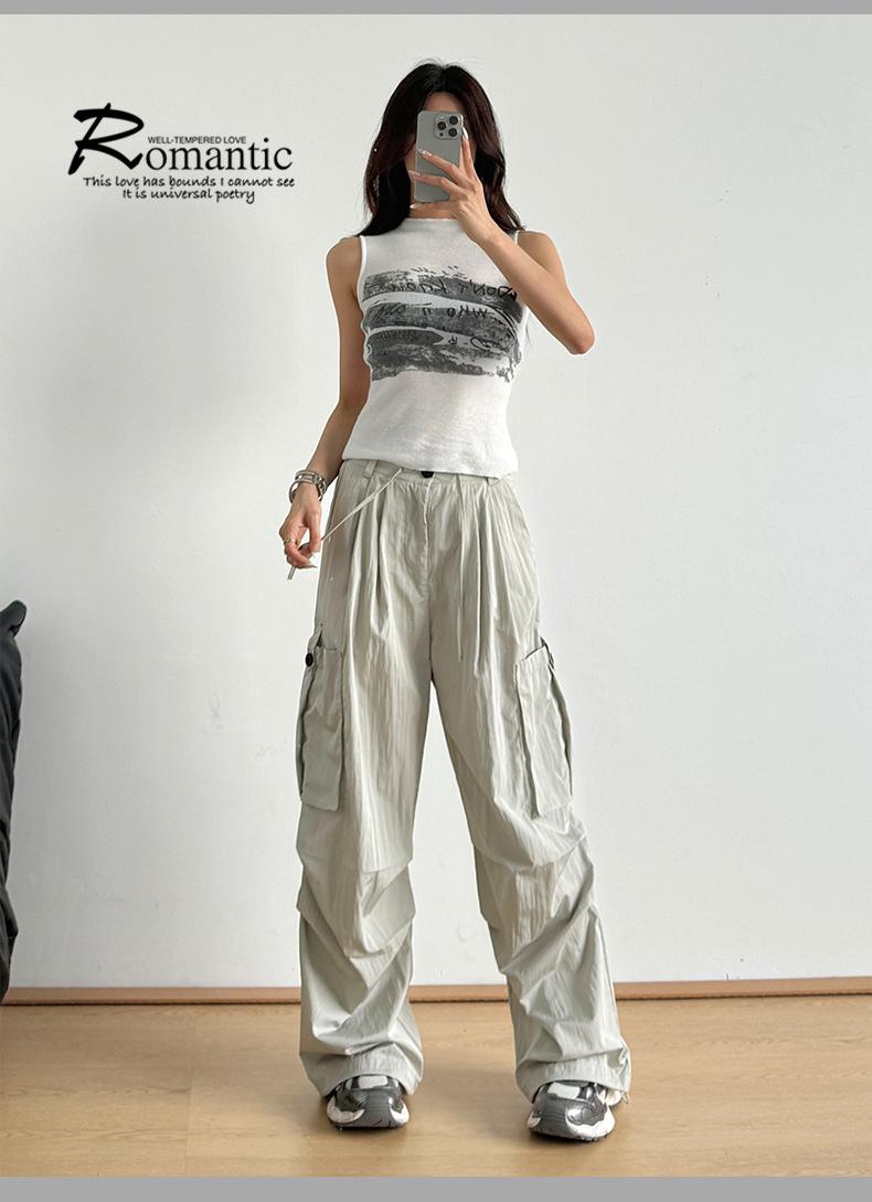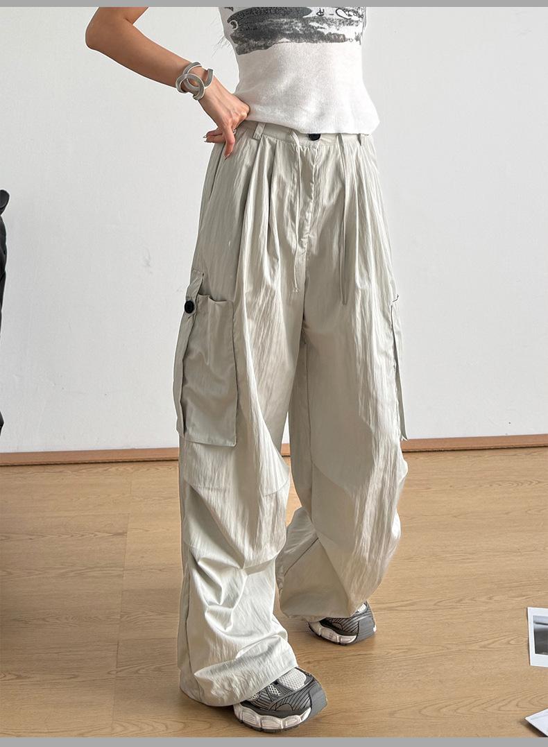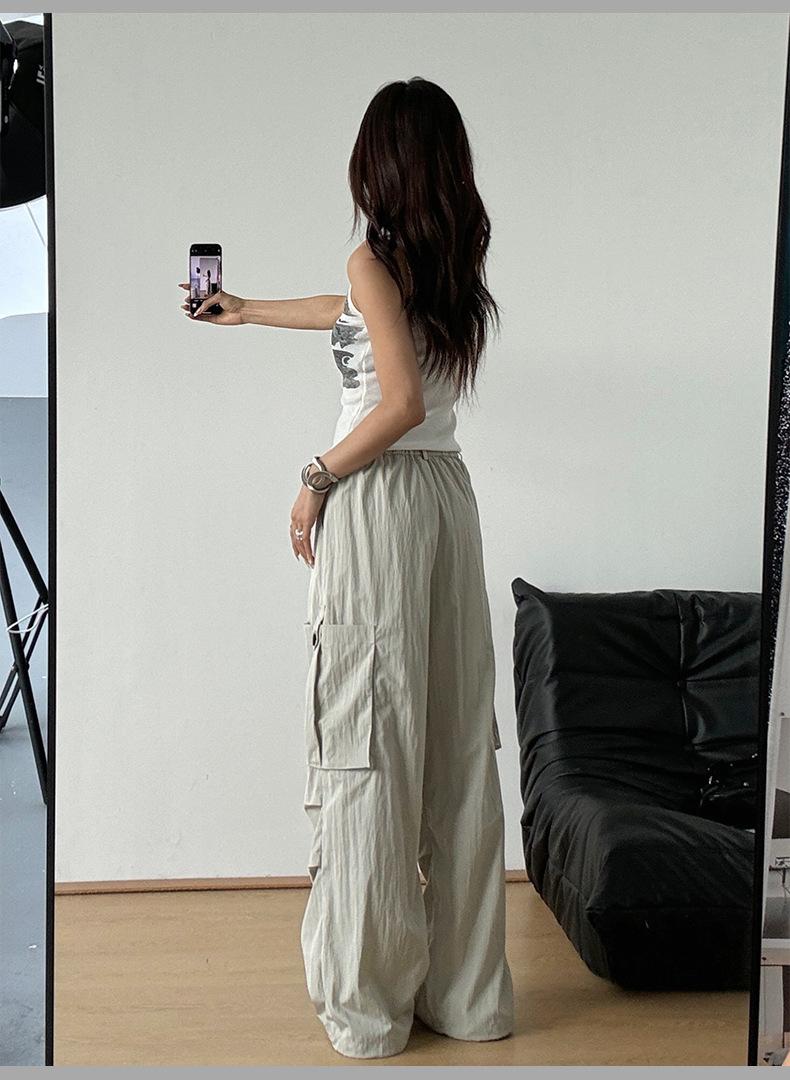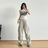 Pantalones de Trabajo de Pierna Recta de Secado Rápido para Mujer, Pantalones Holgados Finos de Verano de Pierna Ancha, Estilo Retro Americano, Pantalones Casuales de Moda