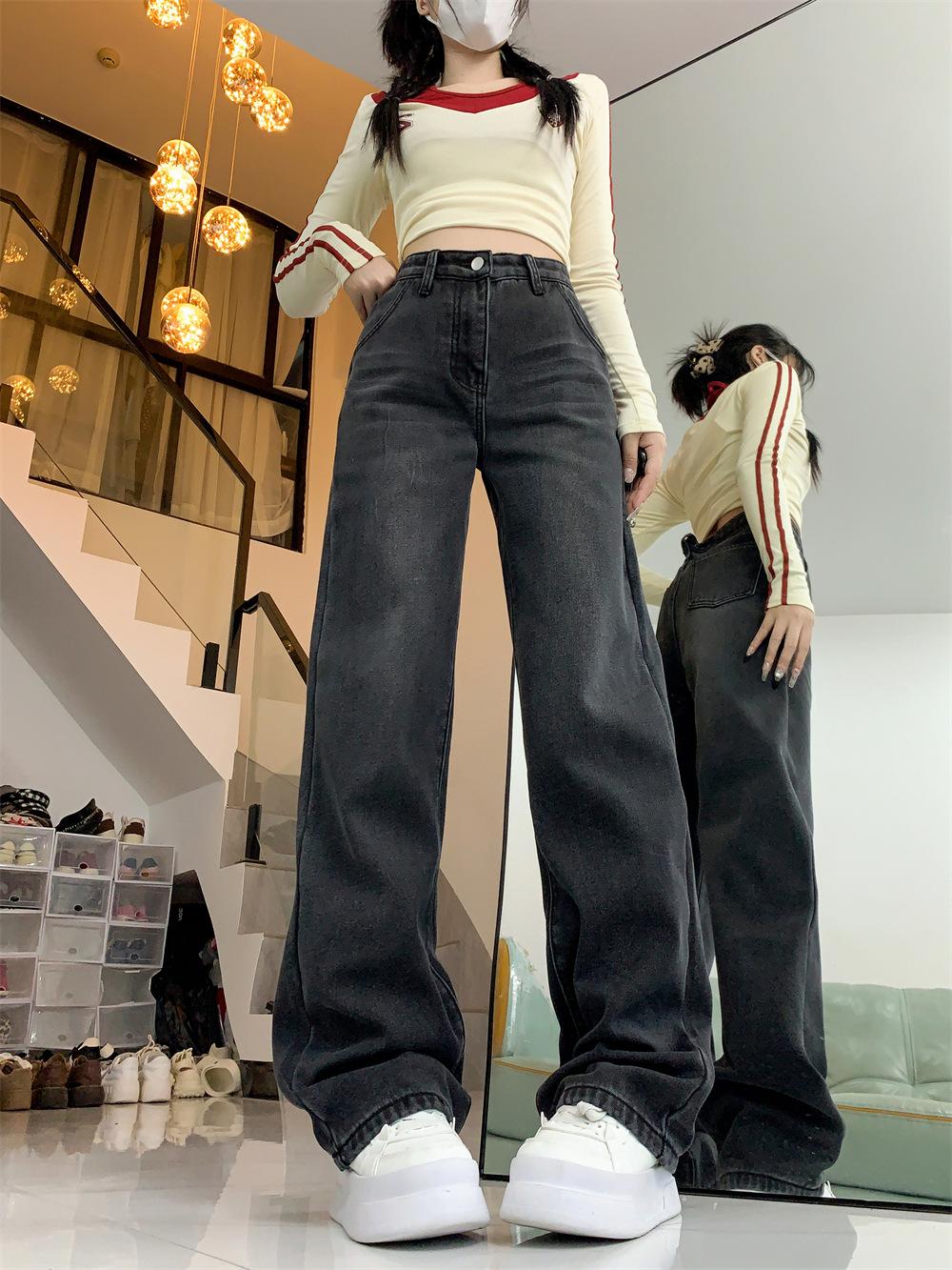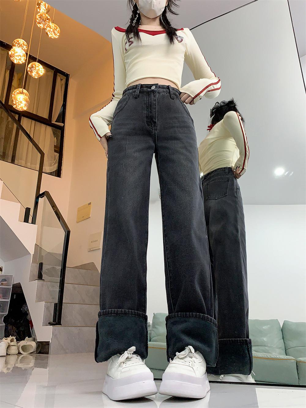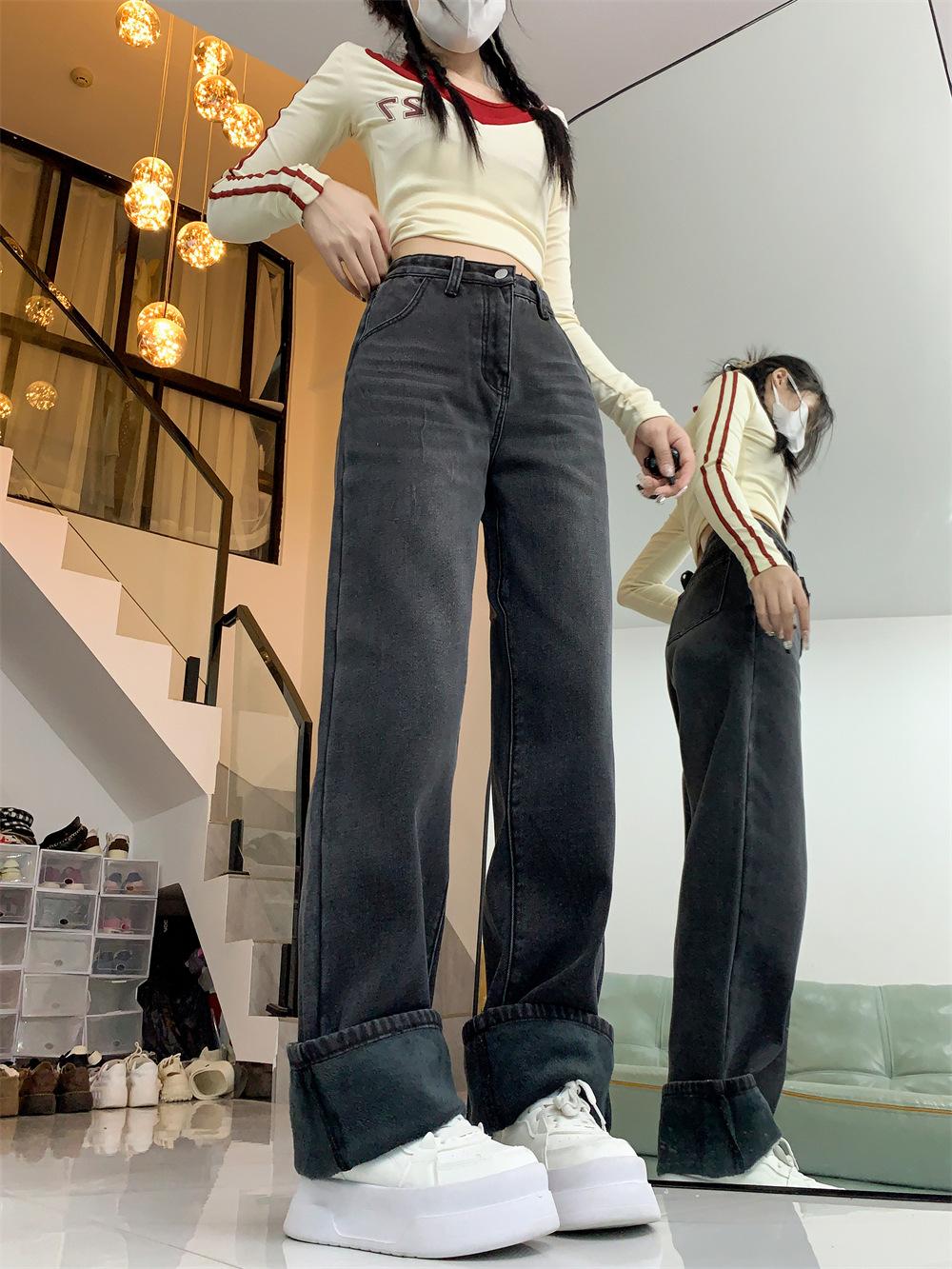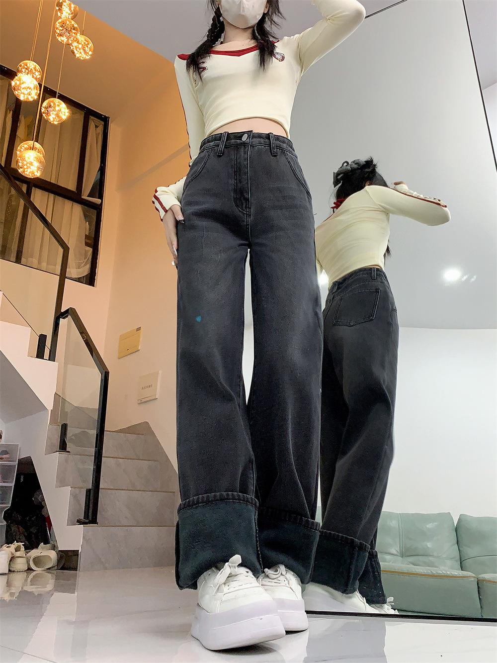 Jeans de pierna ancha de talla grande para mujer Otoño e Invierno 2024 Nuevo mm Gordo Suelto Figura en forma de pera Aspecto adelgazante Pantalones rectos estrechos