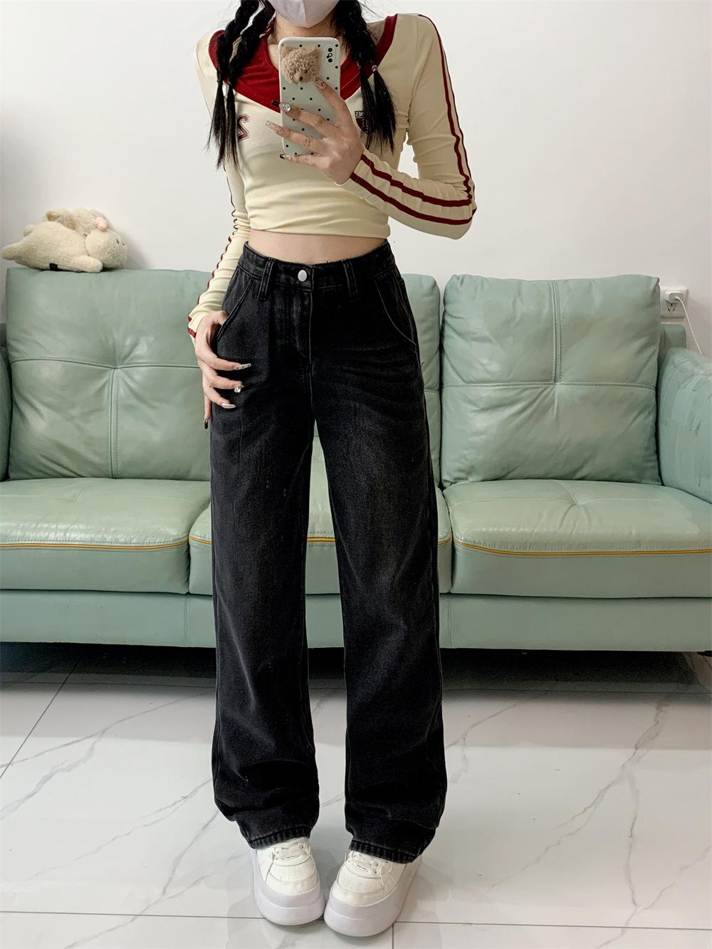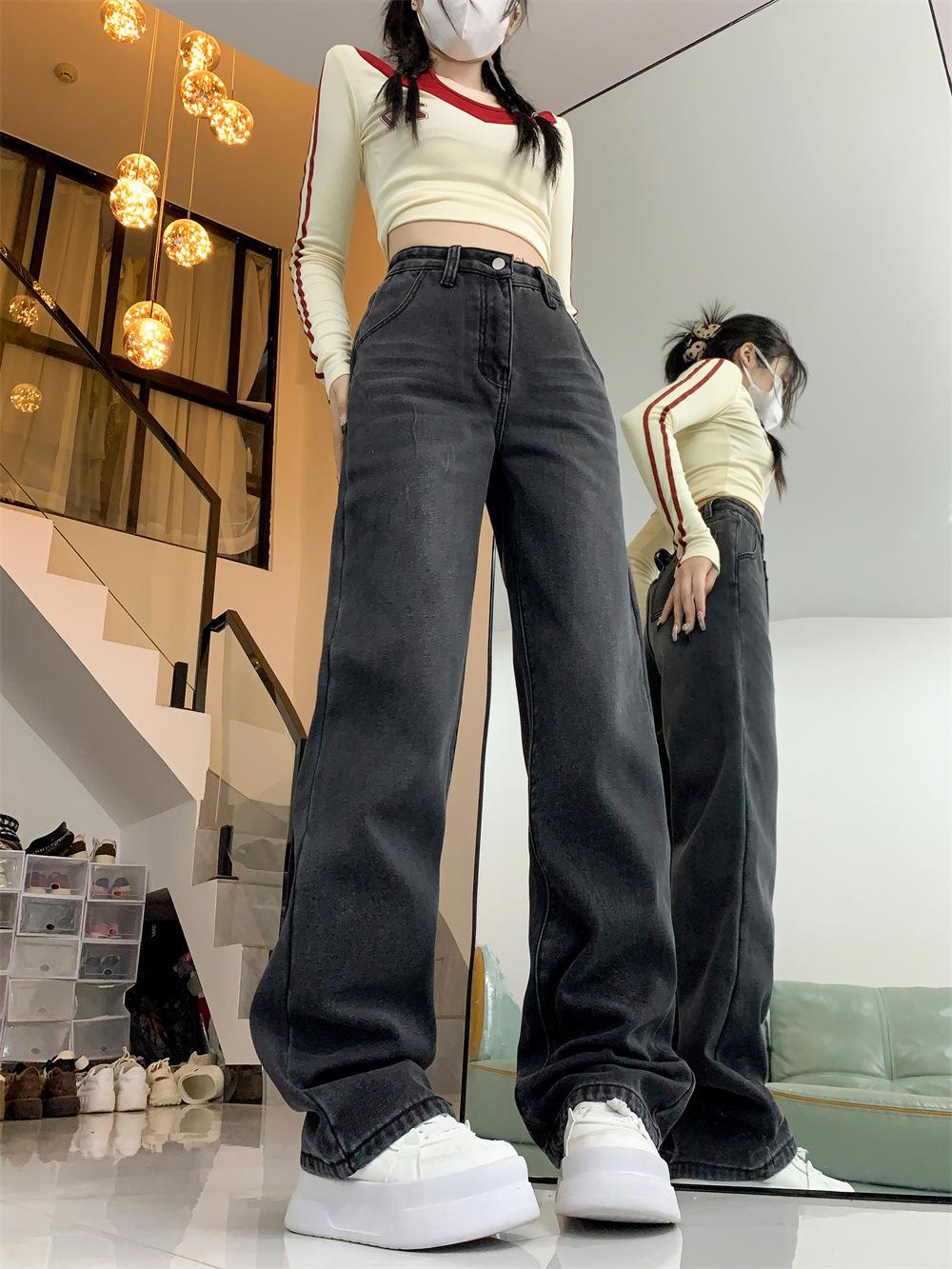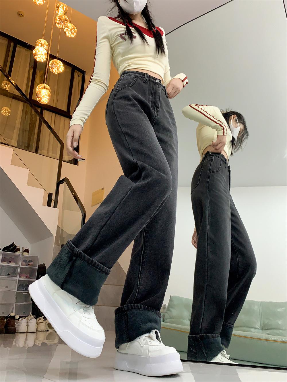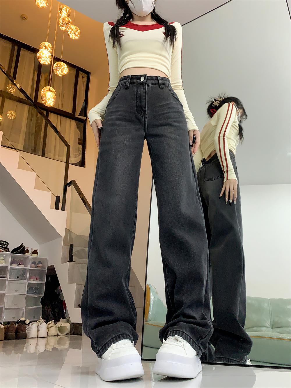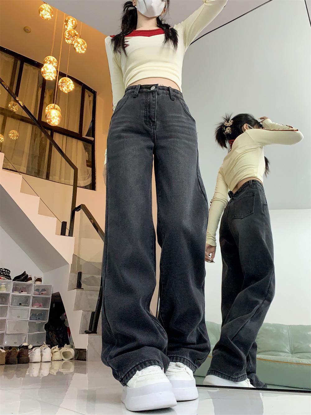 Jeans de pierna ancha de talla grande para mujer Otoño e Invierno 2024 Nuevo mm Gordo Suelto Figura en forma de pera Aspecto adelgazante Pantalones rectos estrechos
