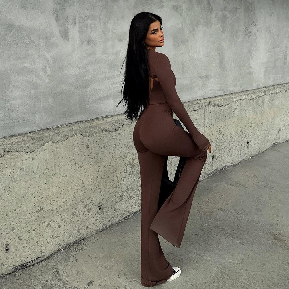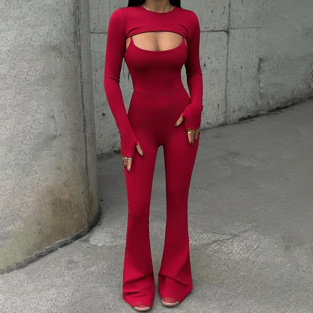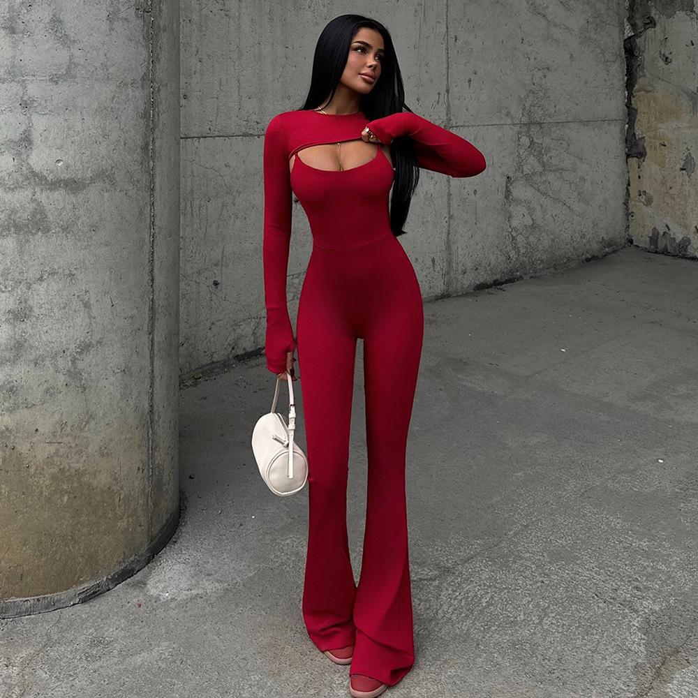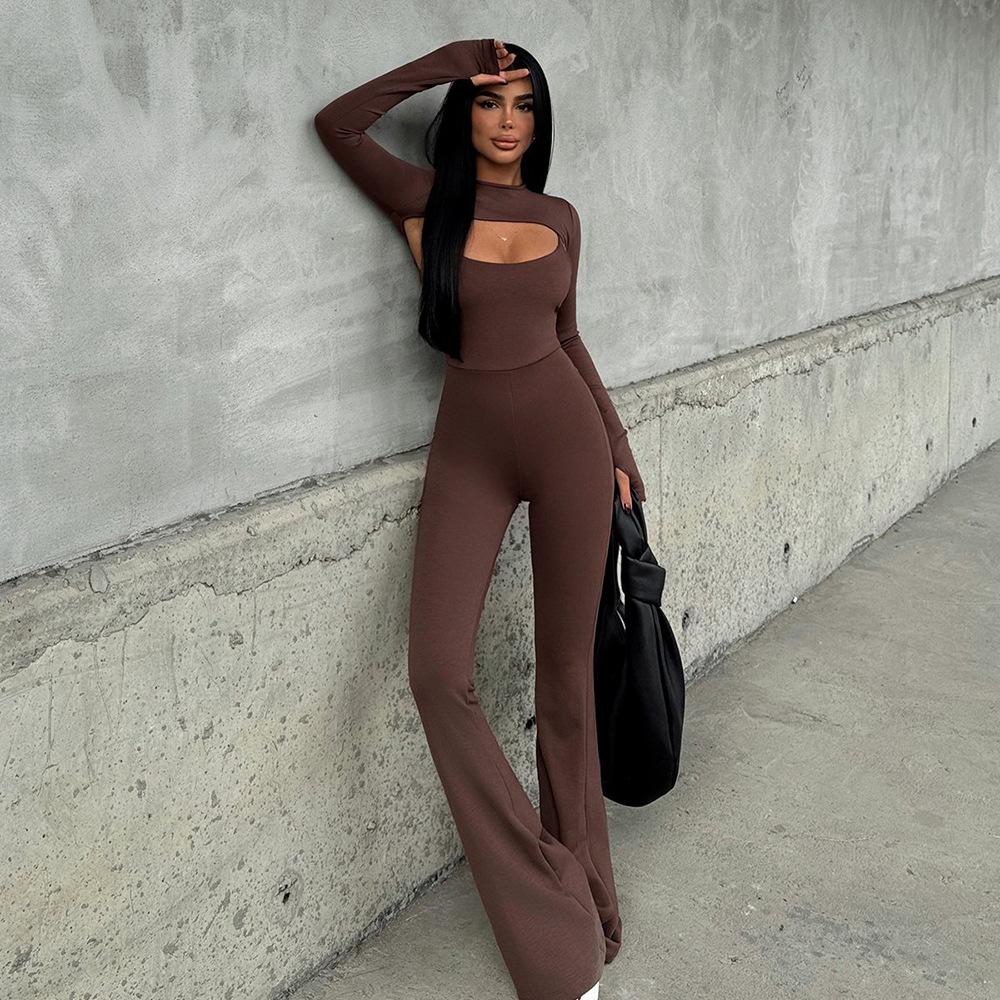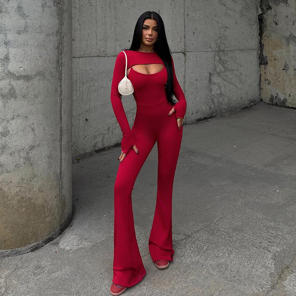 Mono deportivo ajustado de manga larga con hombros descubiertos para mujer, estilo Spice Girl, estilo europeo y americano, de dos piezas, recién llegado