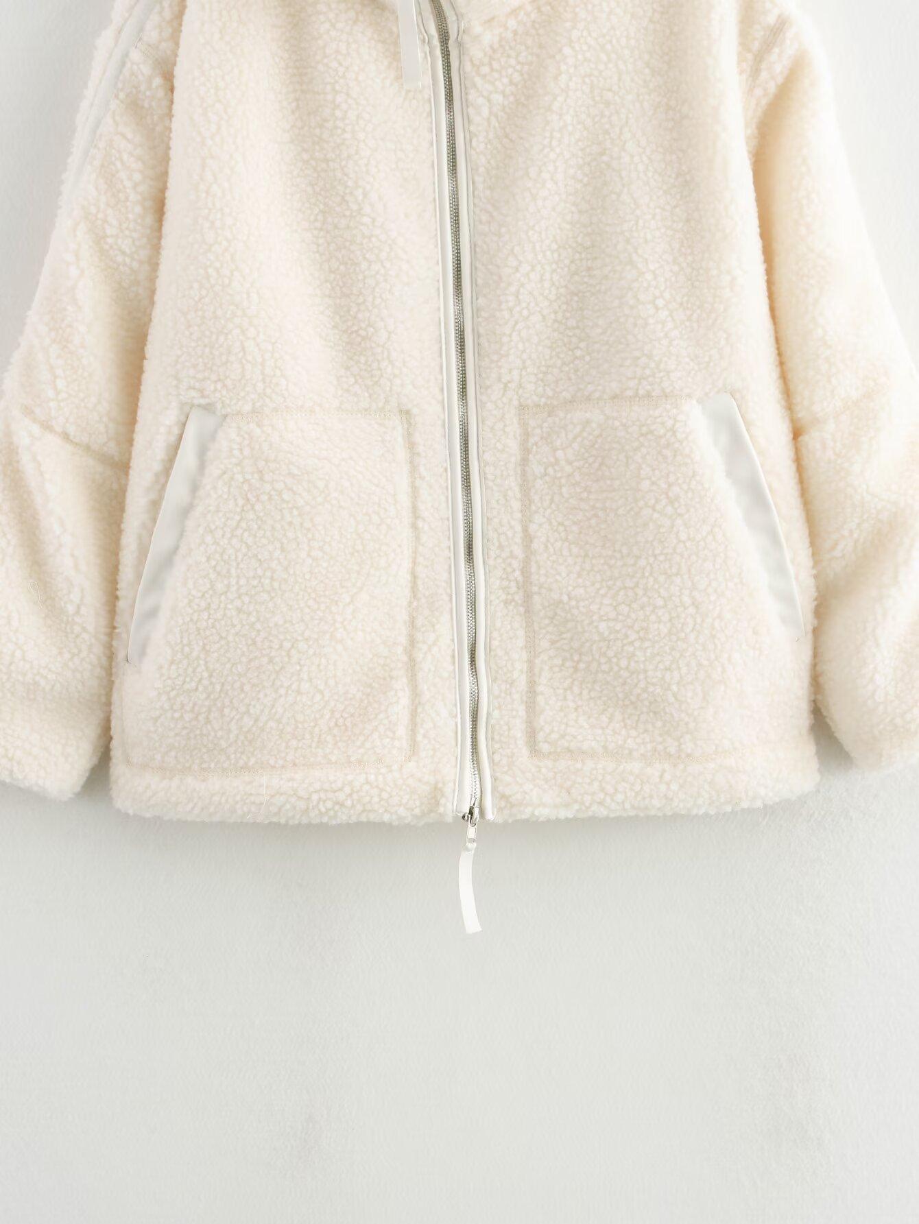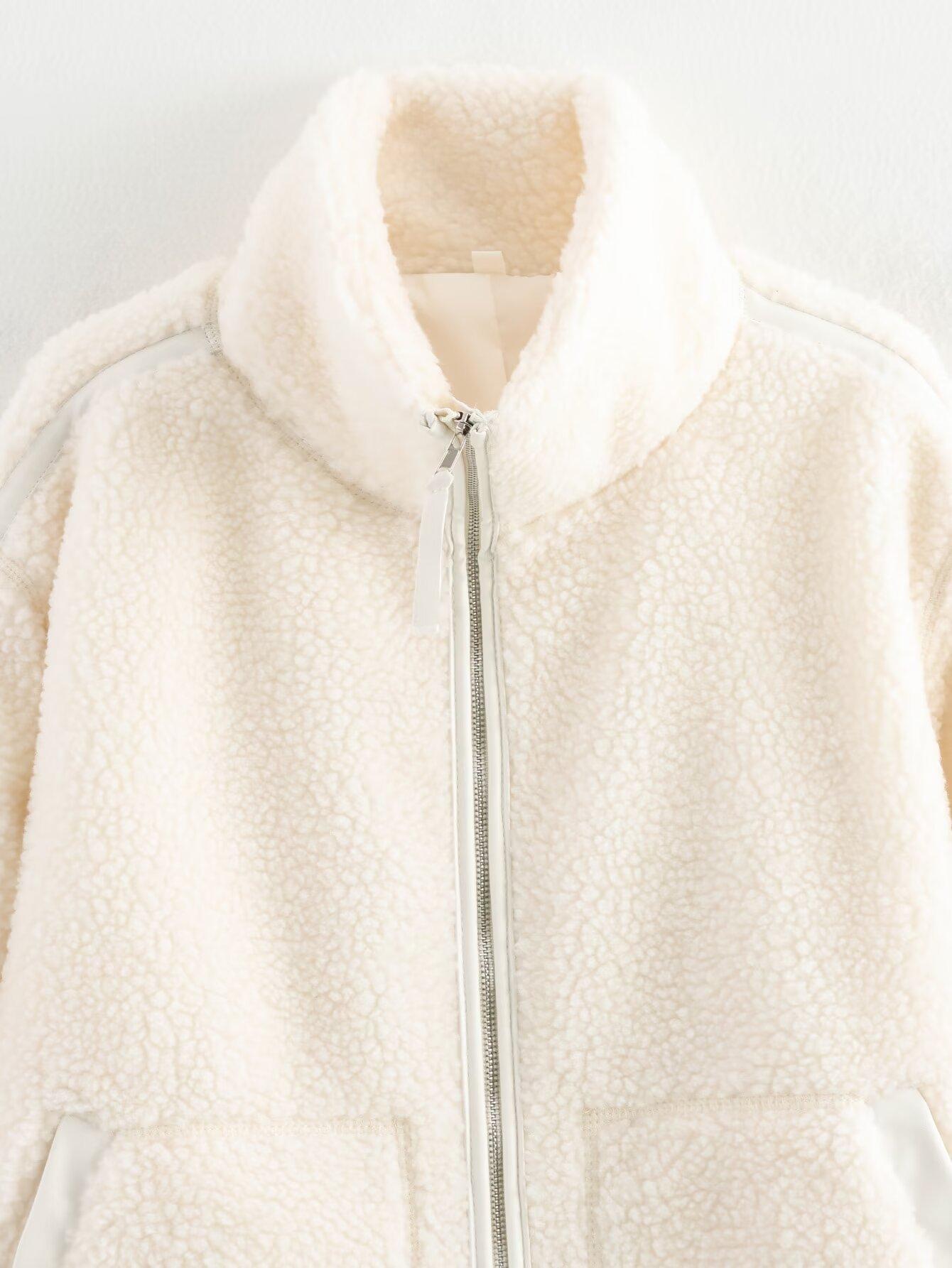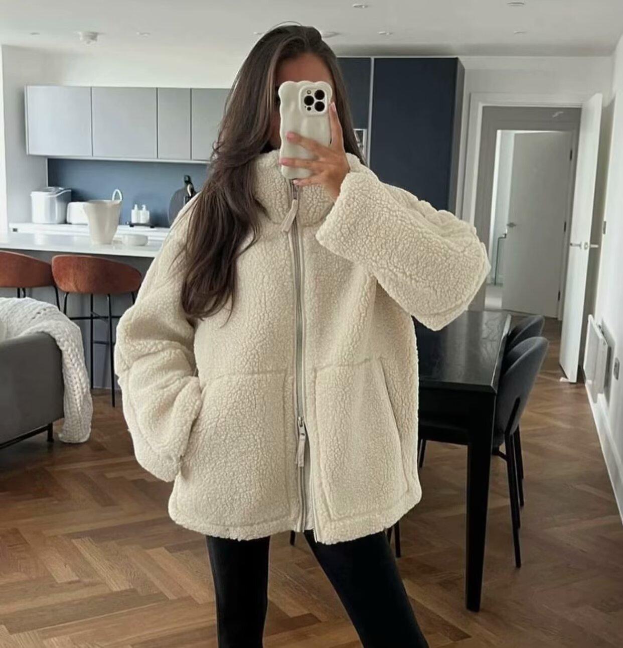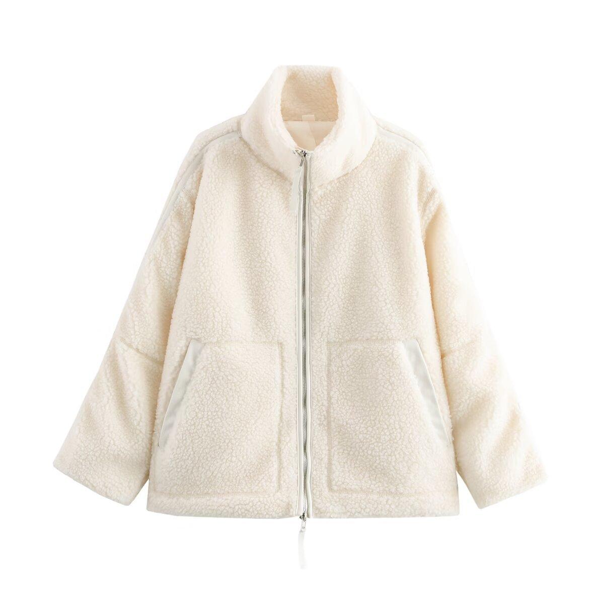Chaqueta de invierno 2024 transfronteriza de lana de cordero de estilo perezoso para mujer, cuello alto, moda urbana, doble cremallera, Europa y Estados Unidos