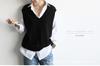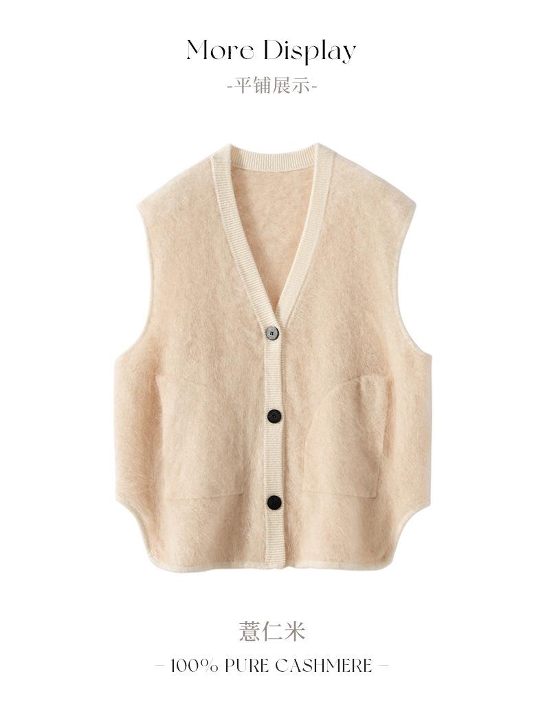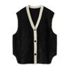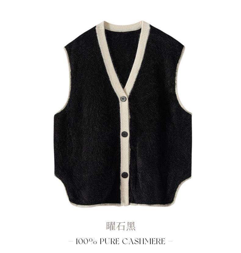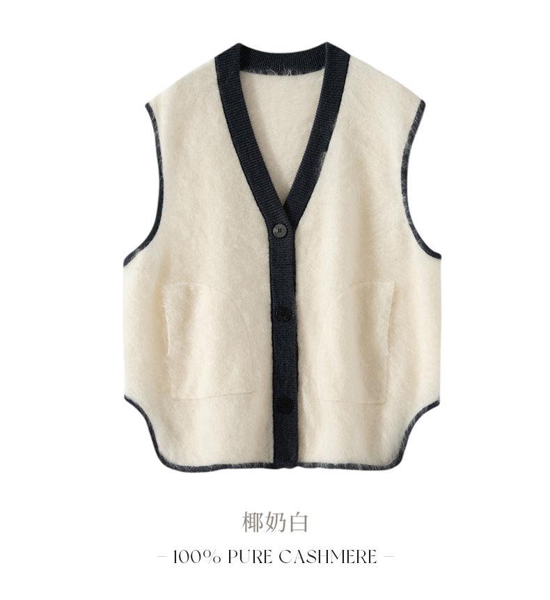 Nuevo Chaleco de Terciopelo 100 Cachemira Color Block sin Mangas Chaleco de Punto para Mujer Cuello en V Chaleco Apilado