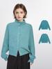 Abrigo Suéter de Cuello Alto Azul Lago para Mujer Otoño e Invierno Holgado Estilo Coreano Estilo Perezoso Grueso de Terciopelo de Mapache Cárdigan Tejido