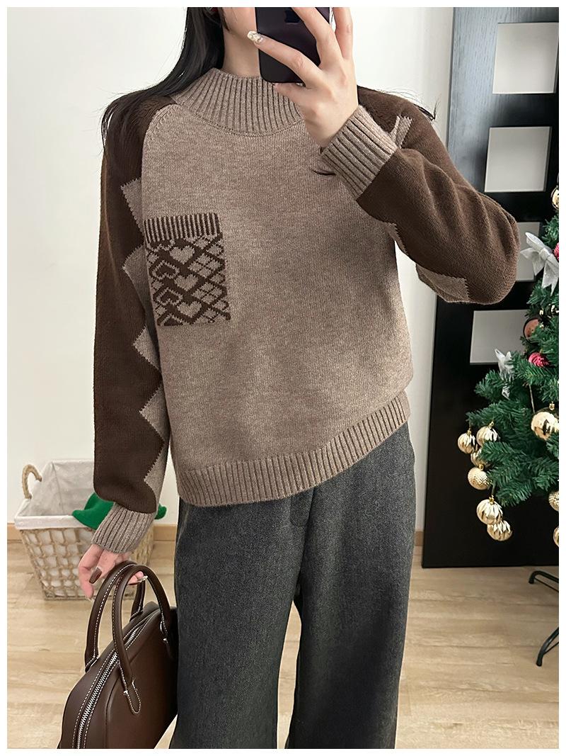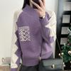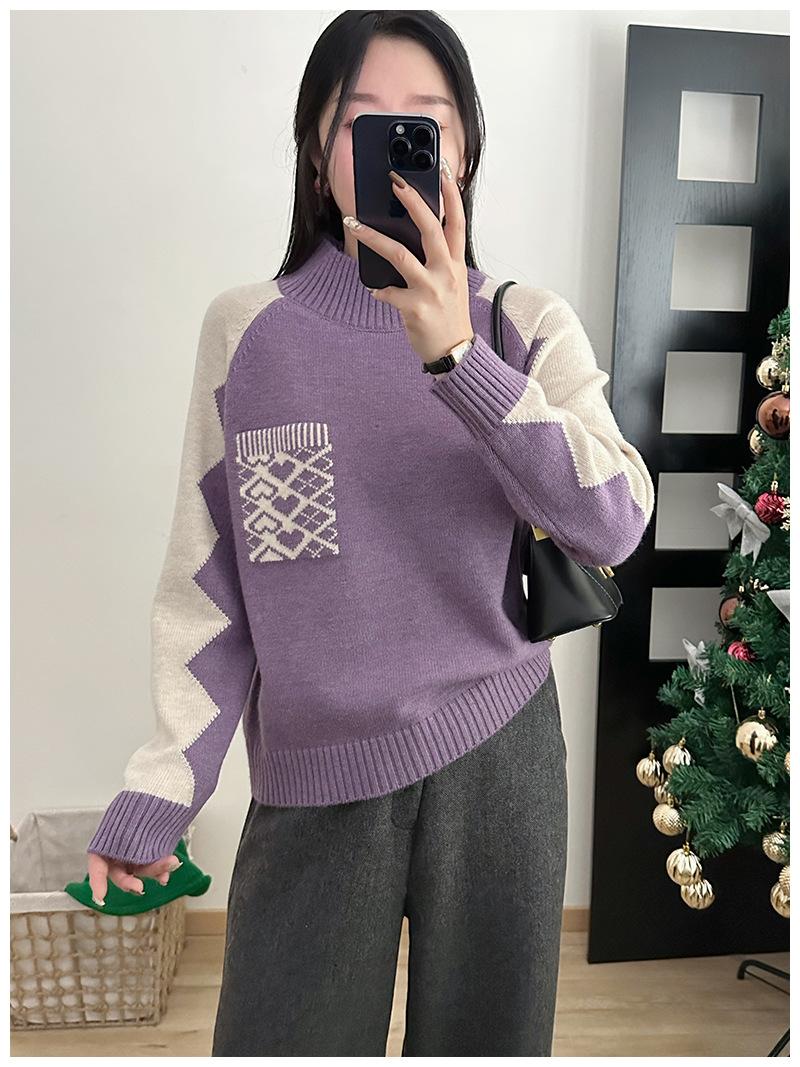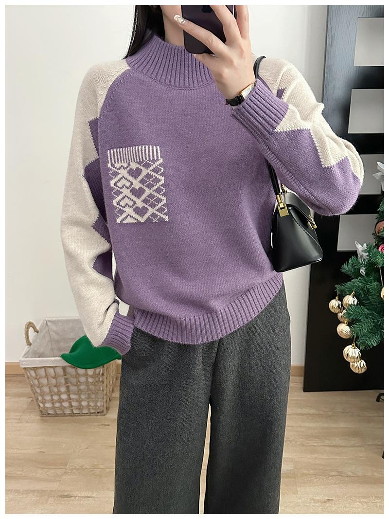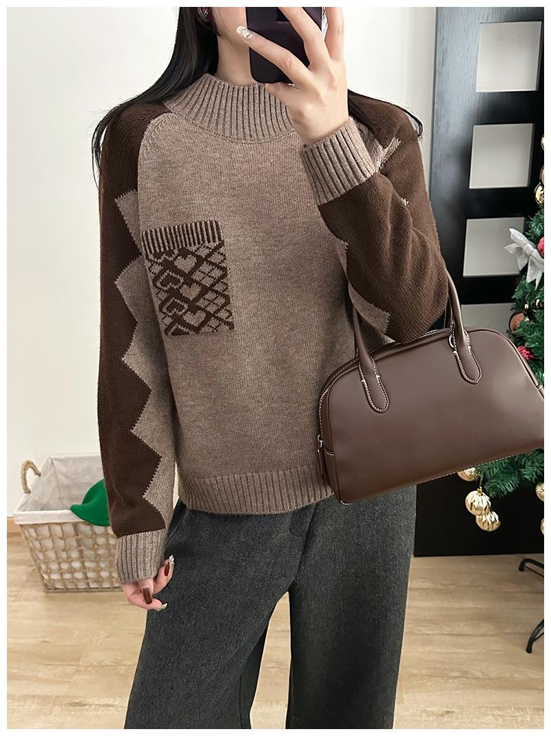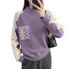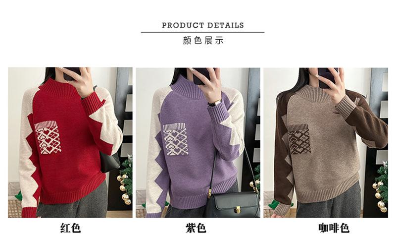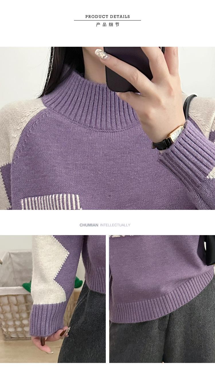 2025 Nuevo Otoño e Invierno Cuello Redondo Medio Alto Color Bloqueado Tejido Suéter Top Jersey con Cálida Capa Base para Mujer