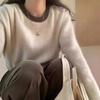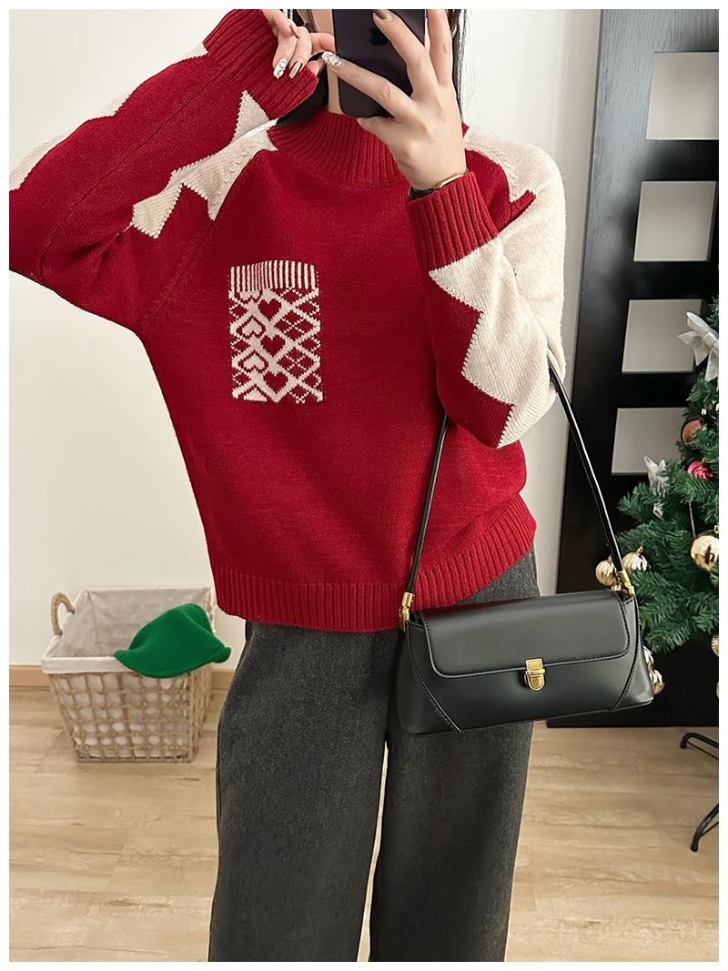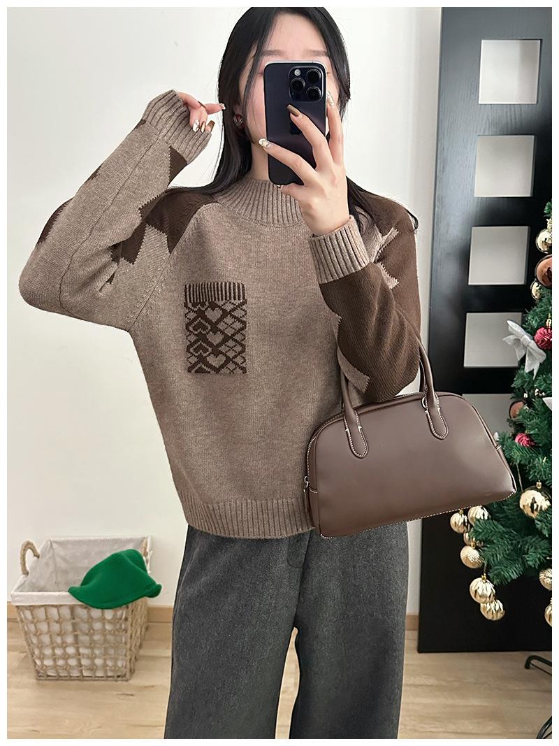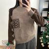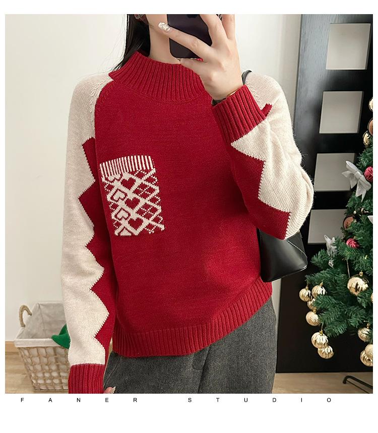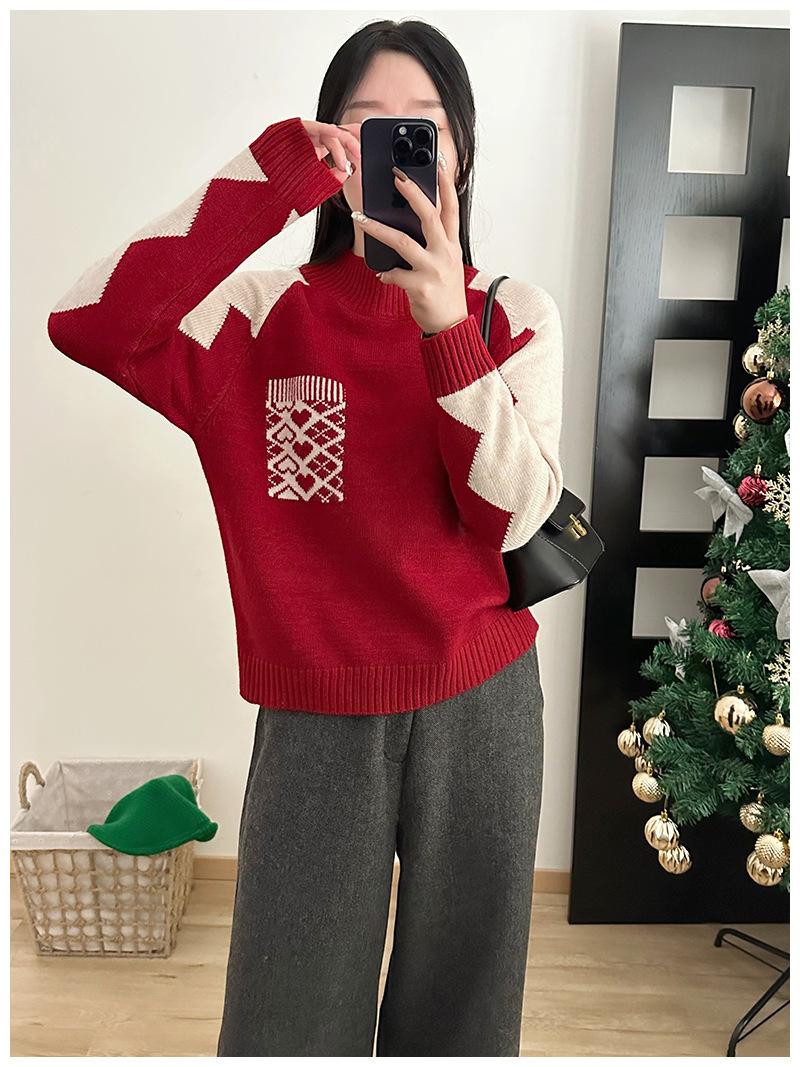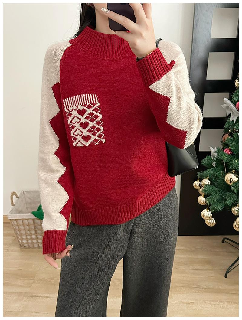 2025 Nuevo Otoño e Invierno Cuello Redondo Medio Alto Color Bloqueado Tejido Suéter Top Jersey con Cálida Capa Base para Mujer