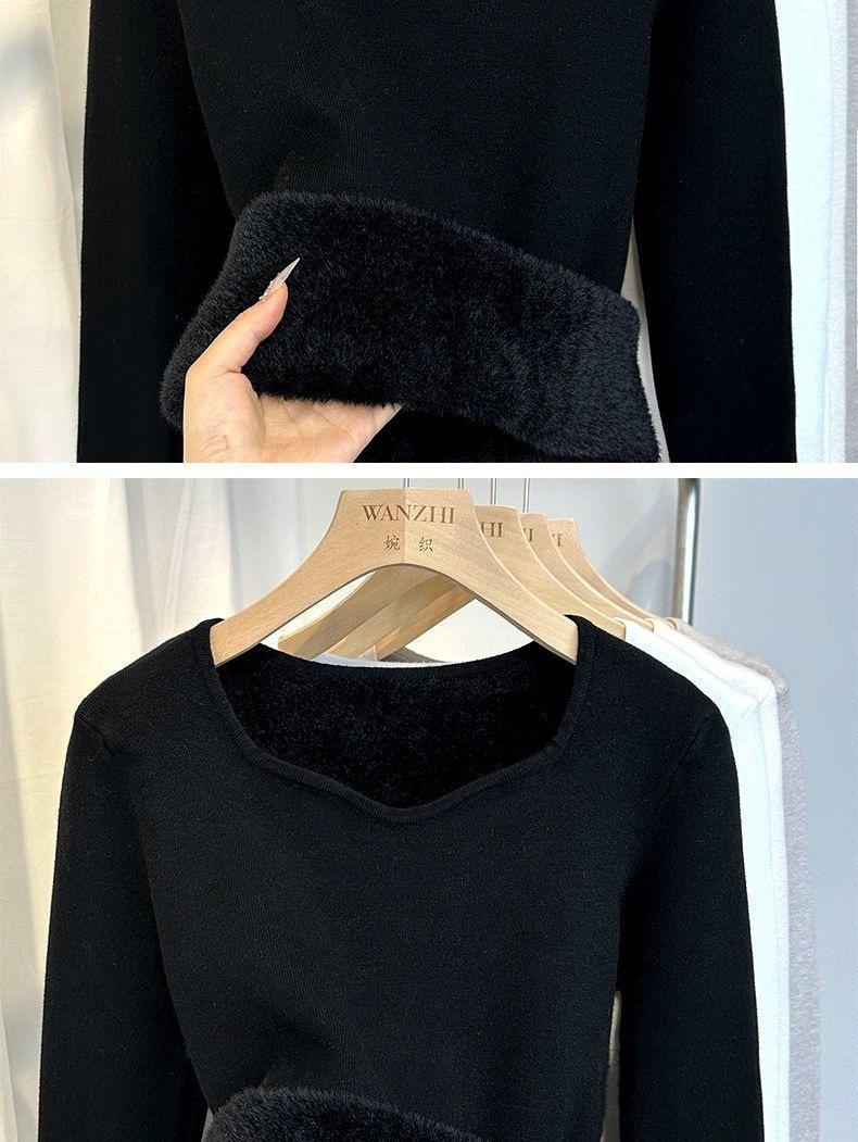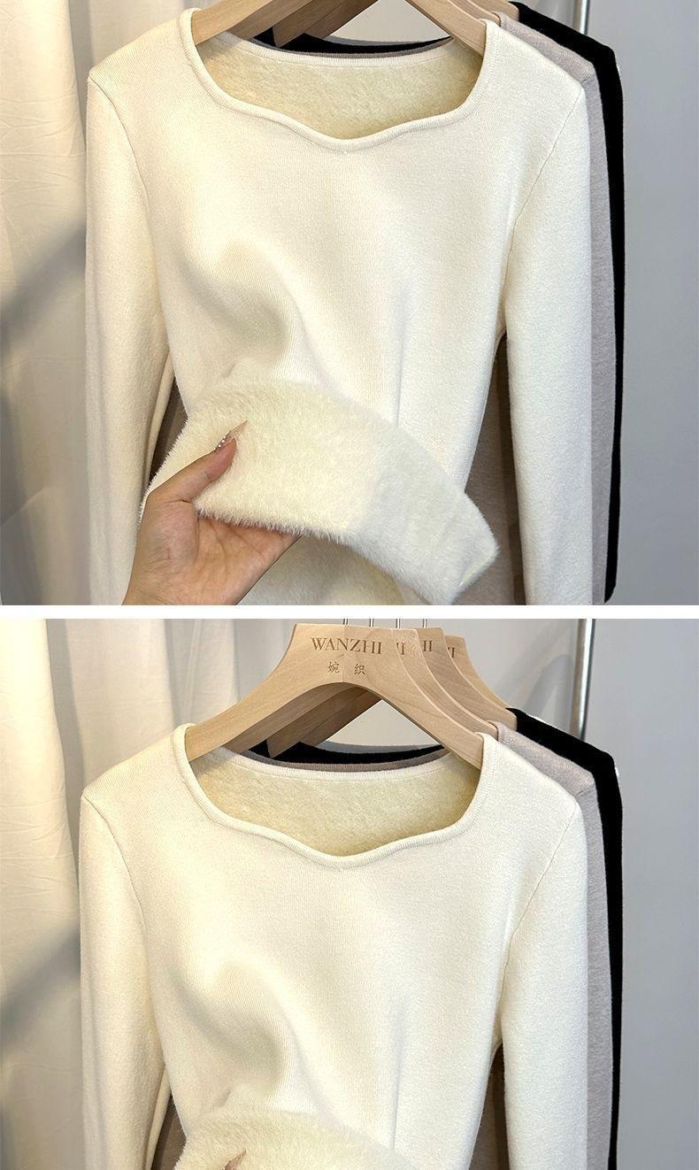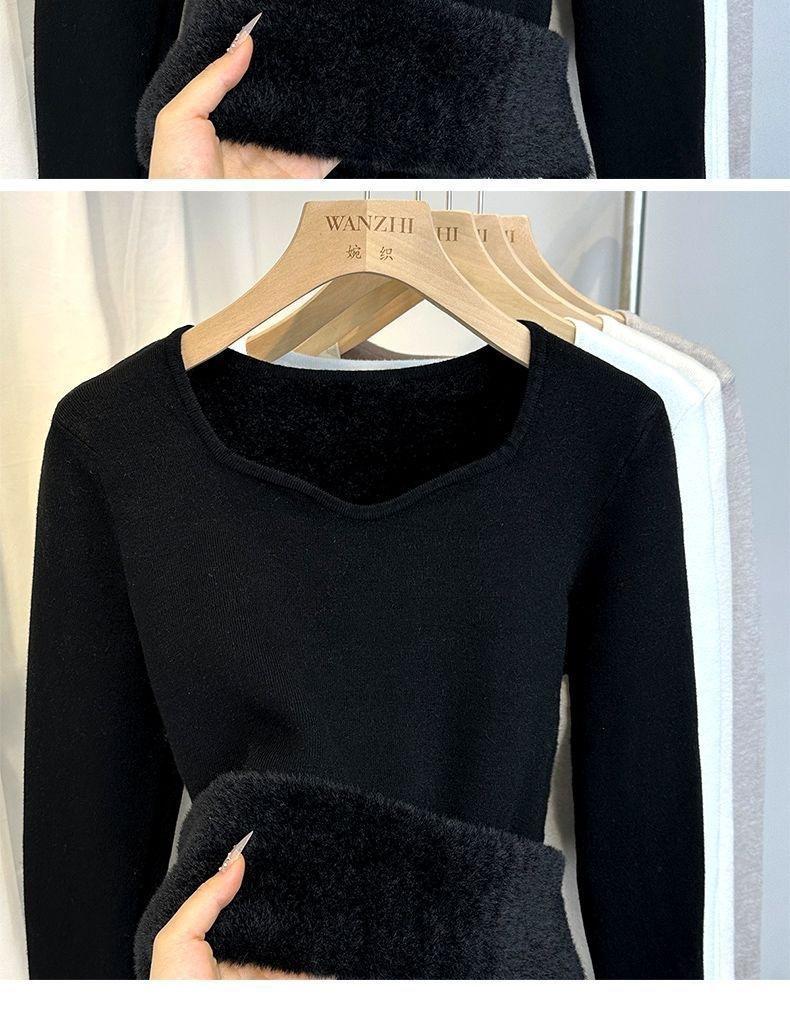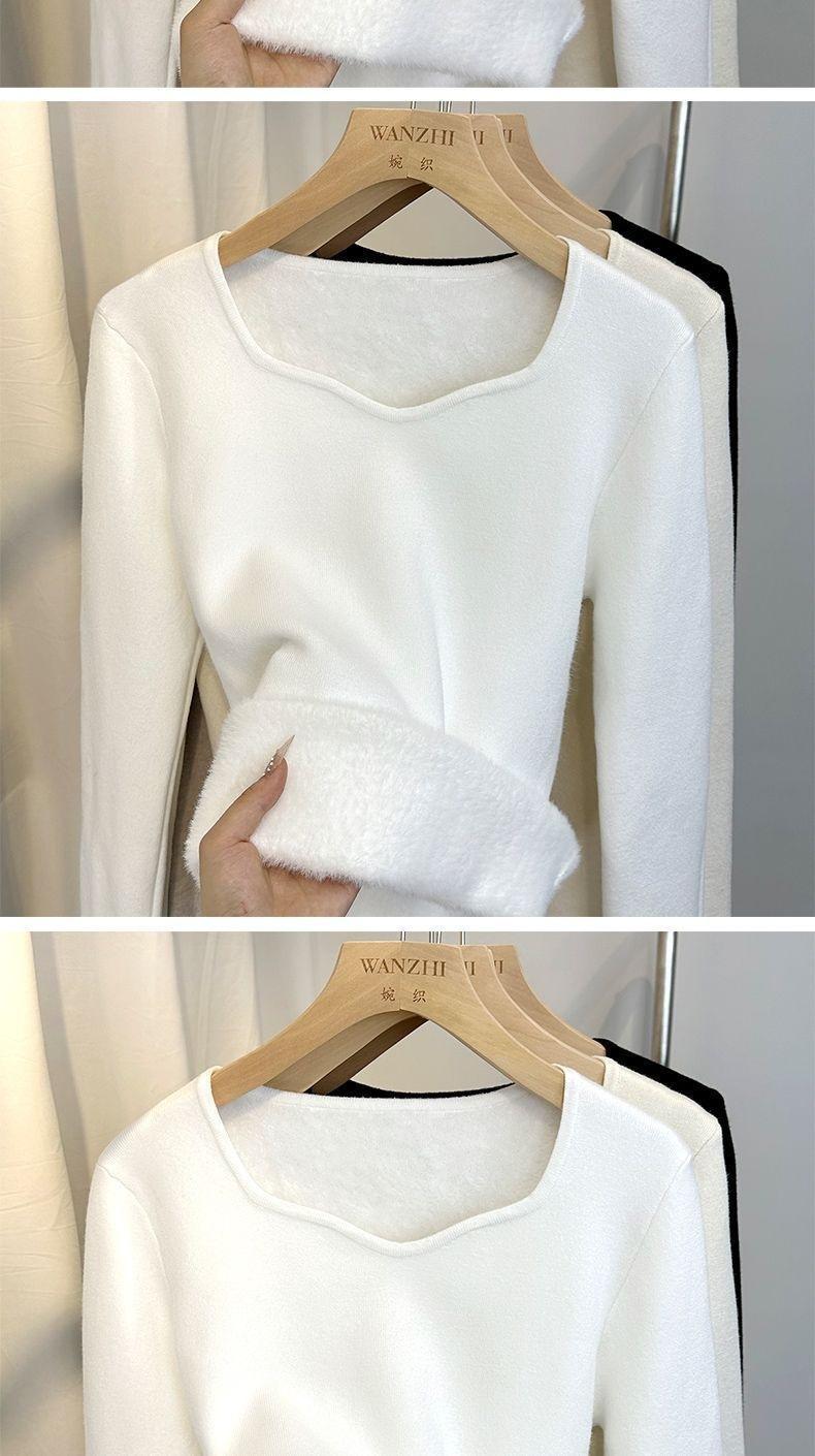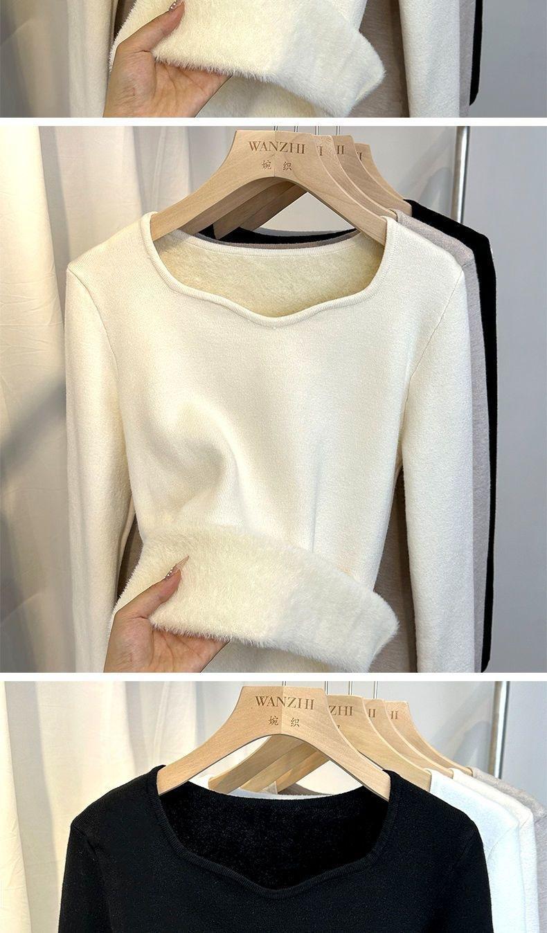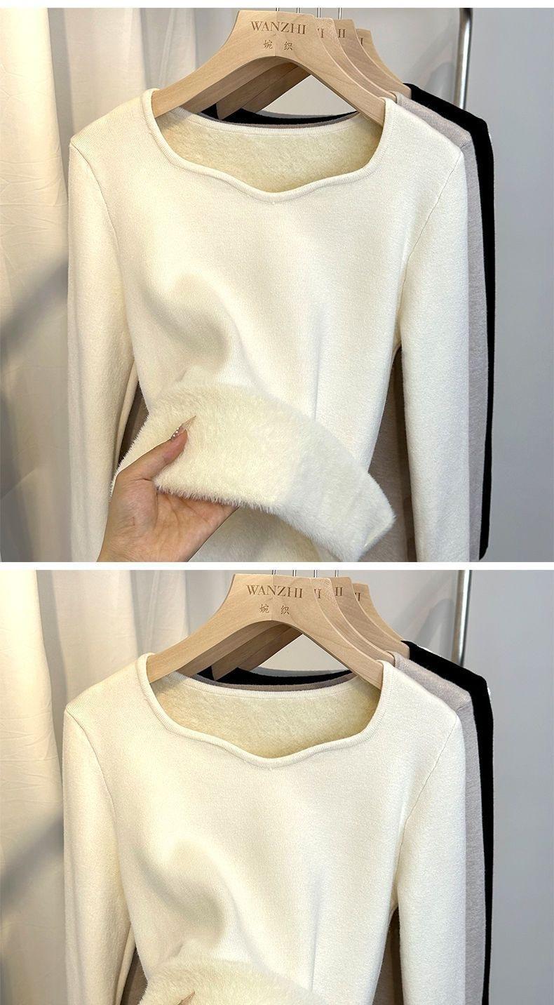 Otoño e invierno pieza única cálida de terciopelo cuello cuadrado ropa interior de mujer cálida más terciopelo engrosada camisa base delgada única adelgazante top ins