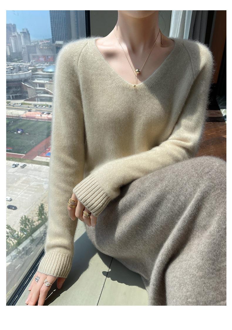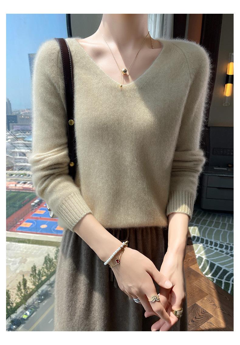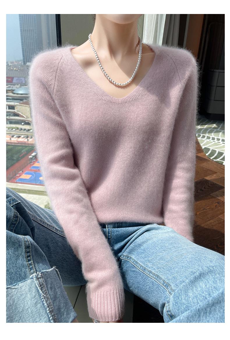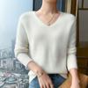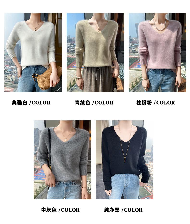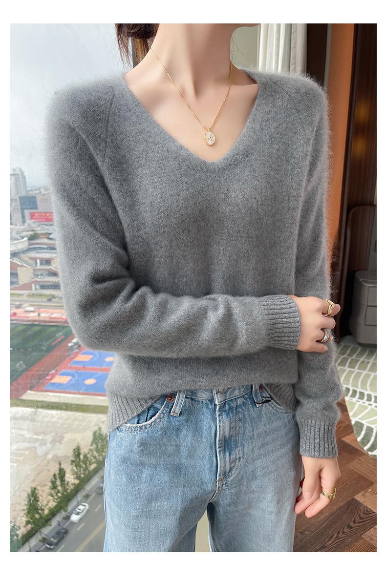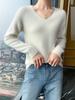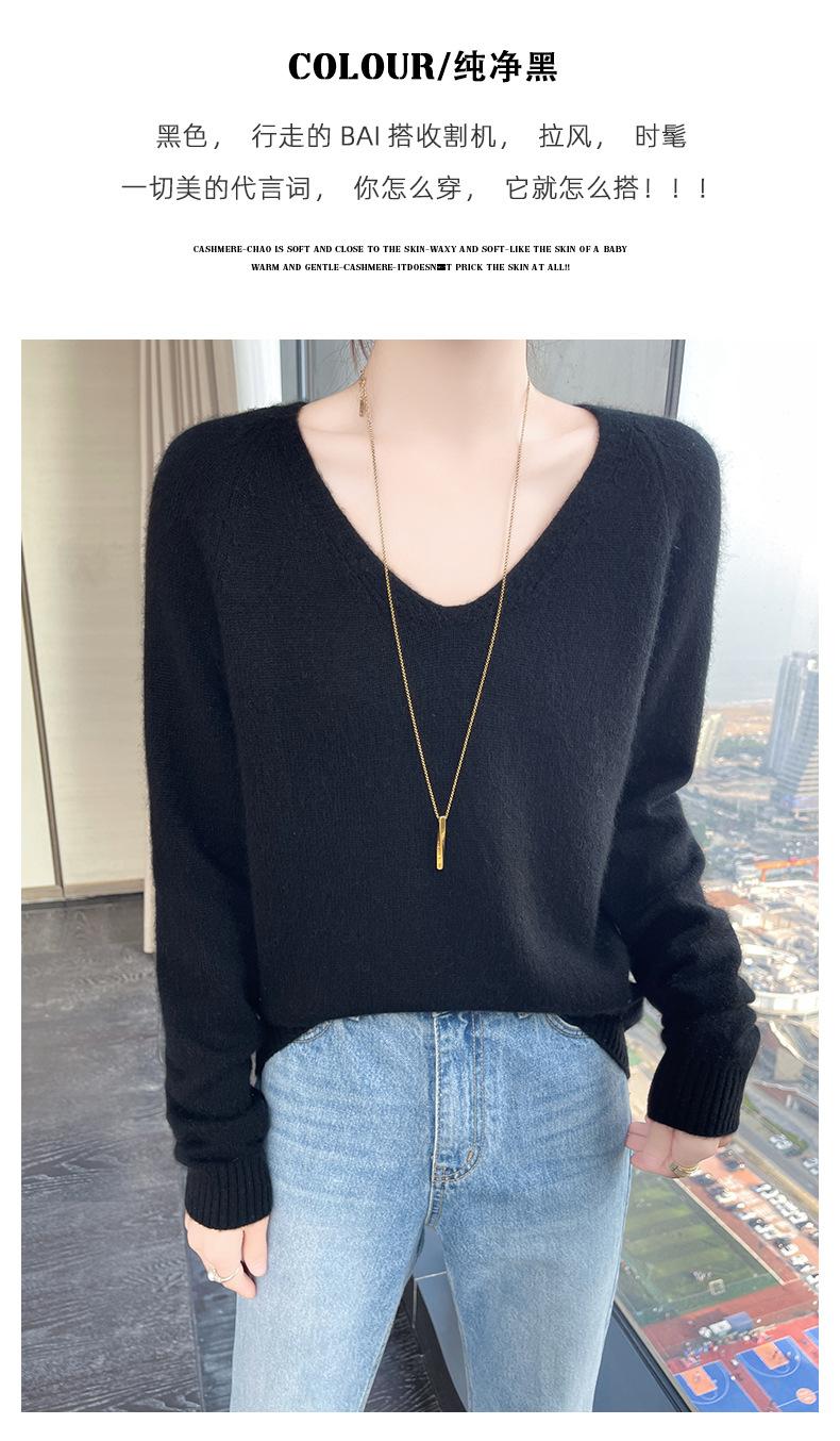 Suéter de cachemira de manga larga raglán grueso para mujer, suéter de cuello en V, camisa holgada de punto de lana de manga larga, otoño e invierno, 24 unidades