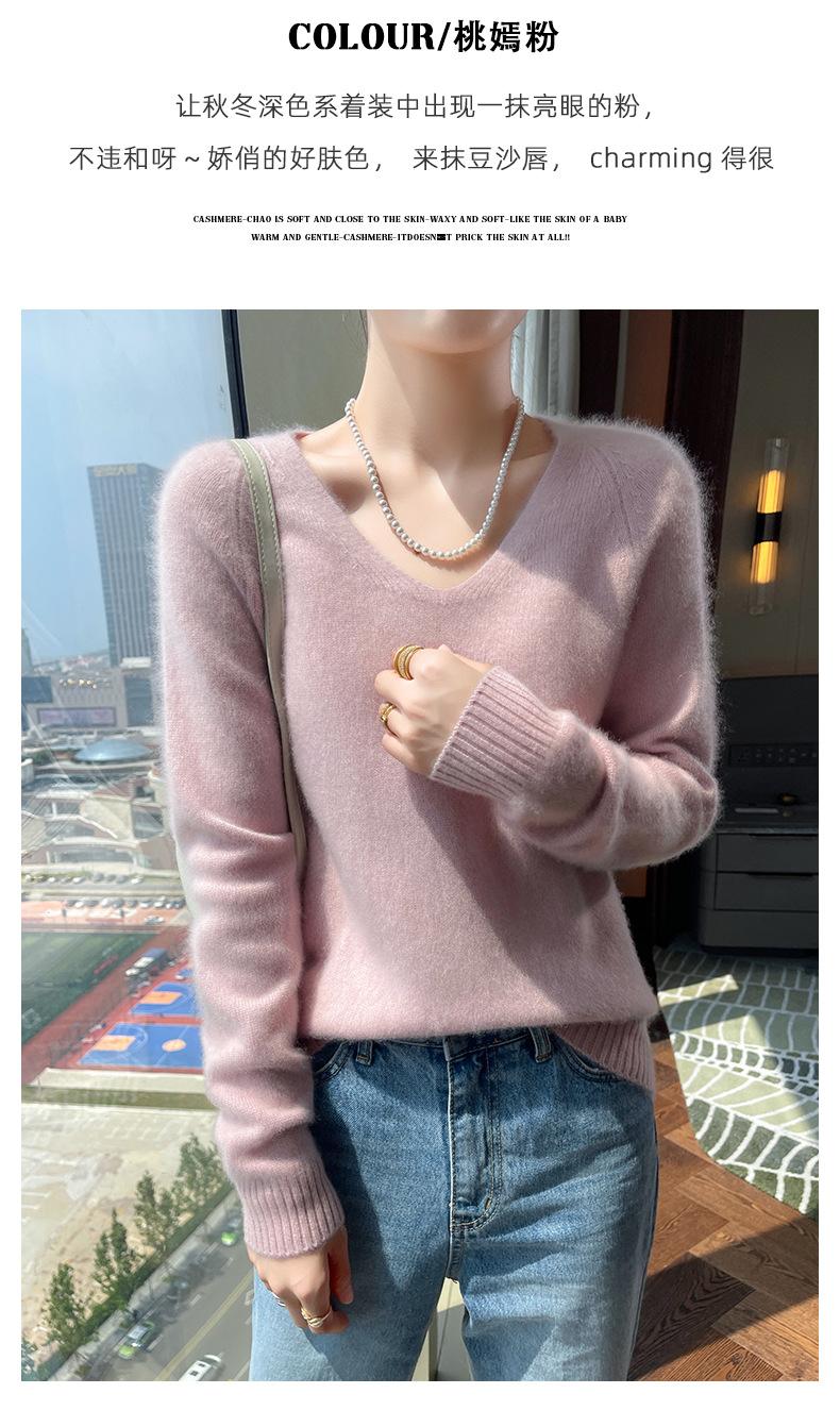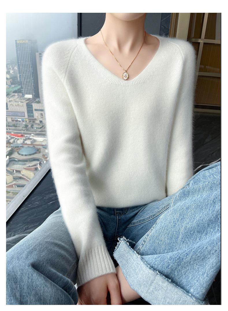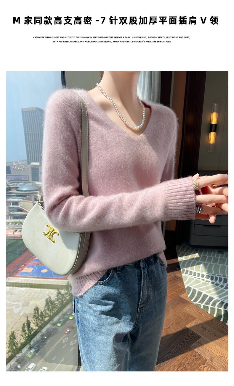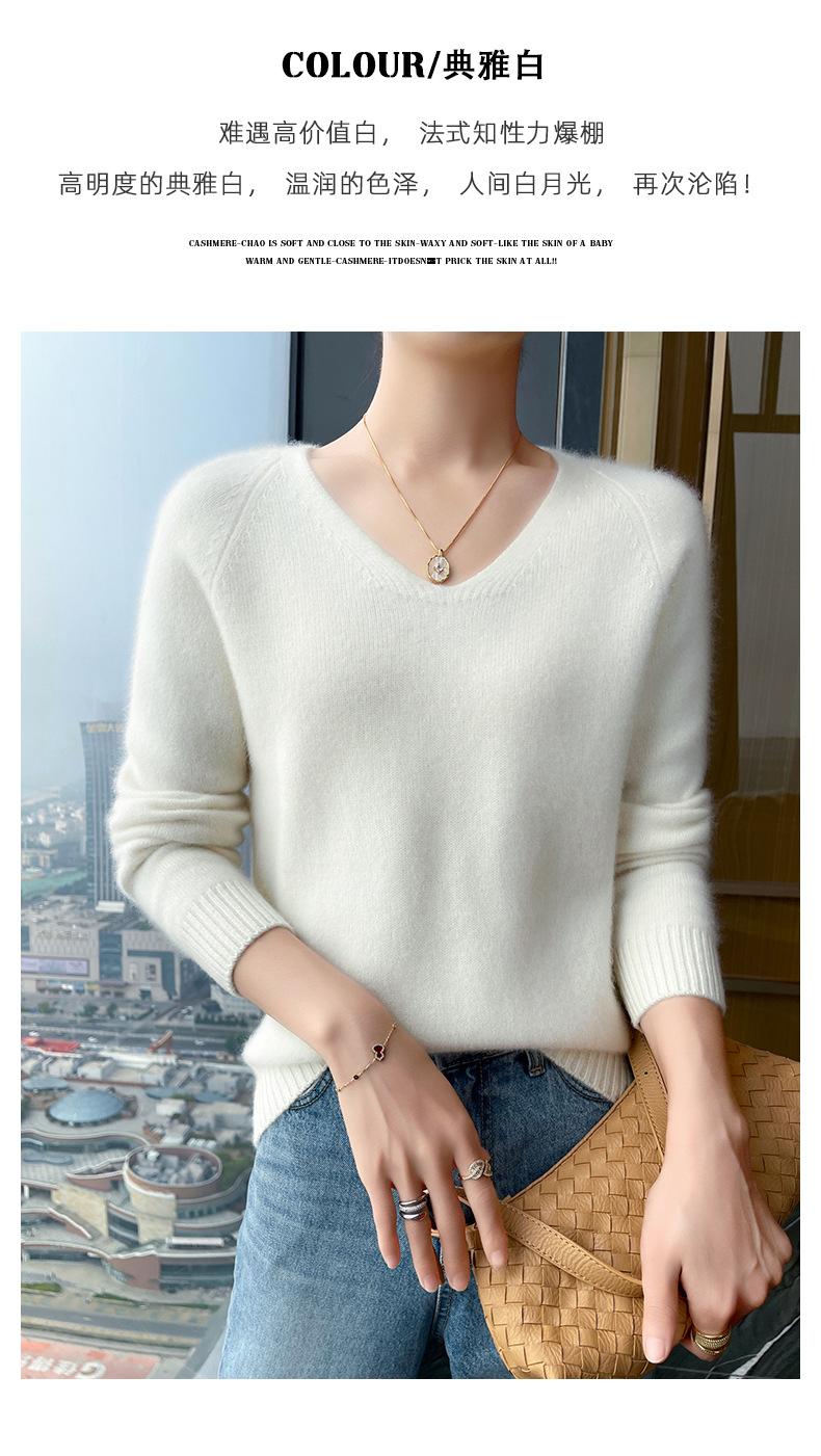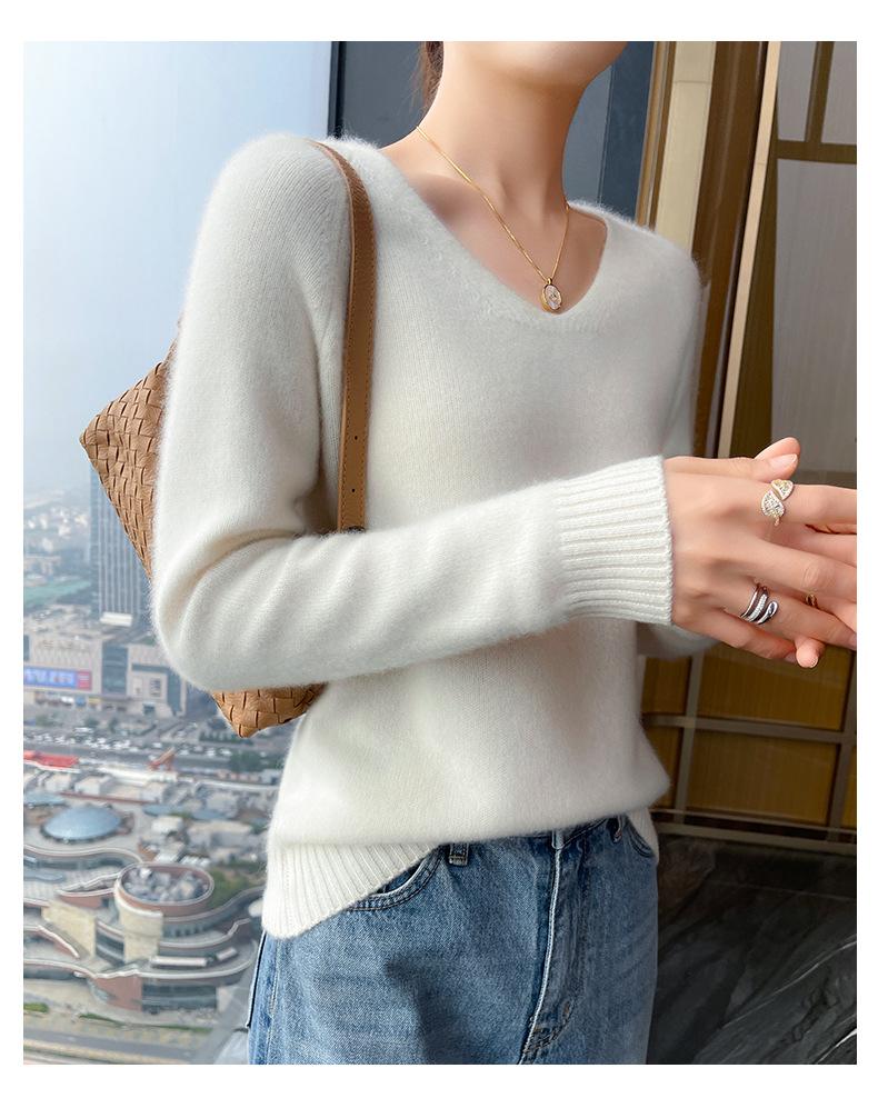 Suéter de cachemira de manga larga raglán grueso para mujer, suéter de cuello en V, camisa holgada de punto de lana de manga larga, otoño e invierno, 24 unidades