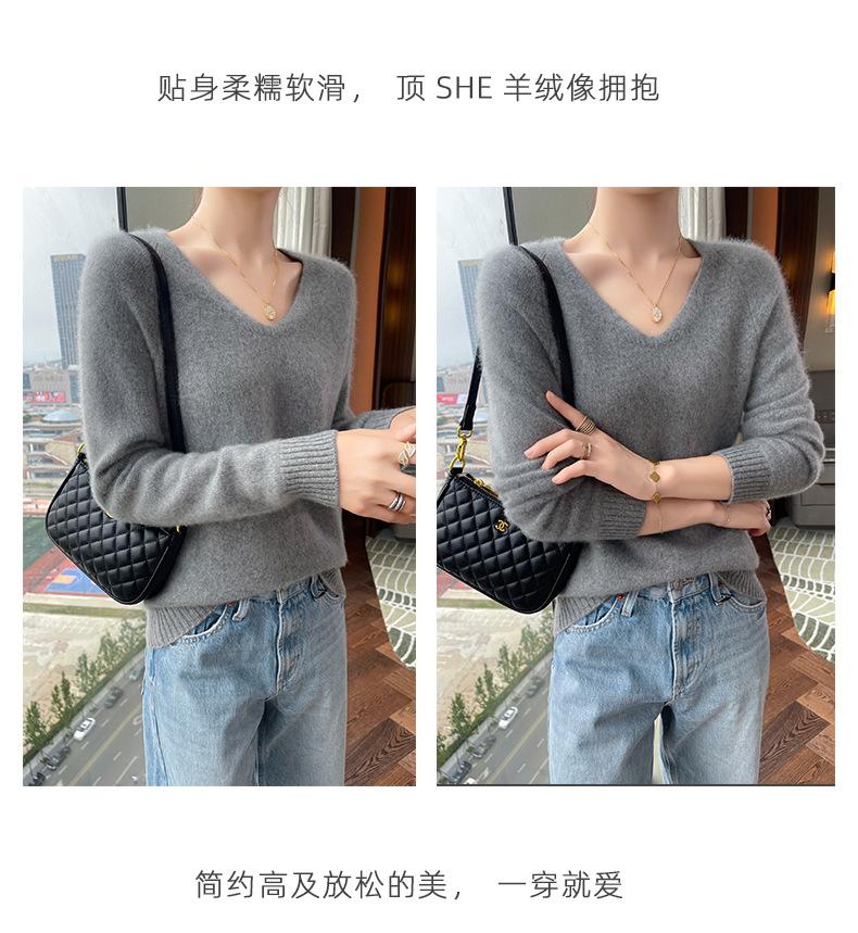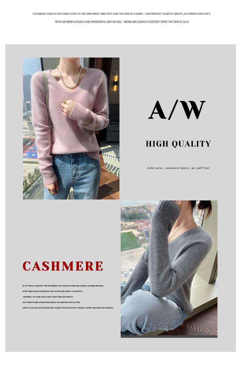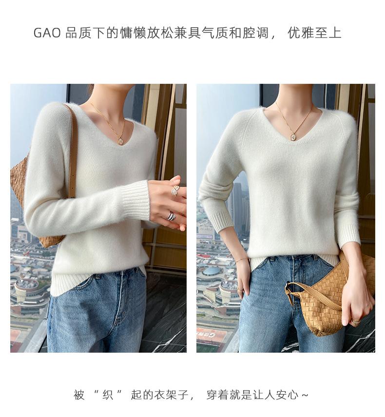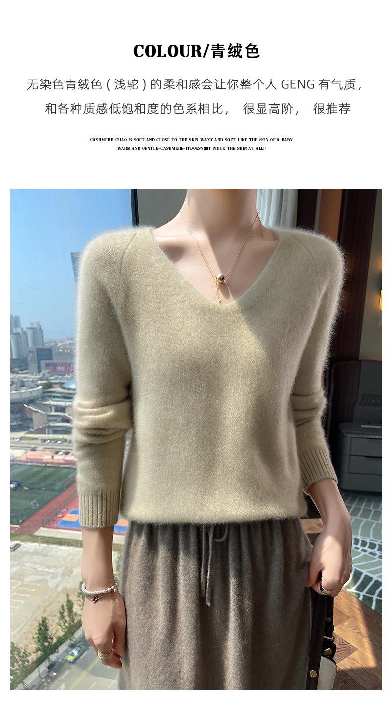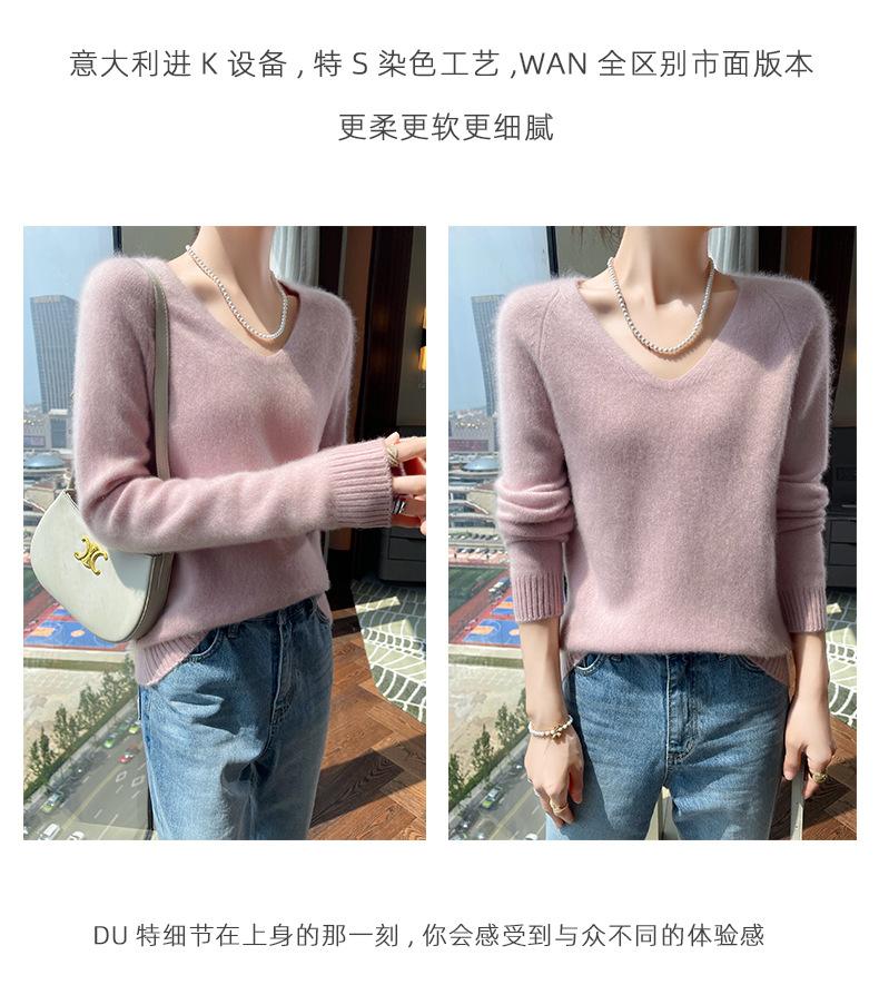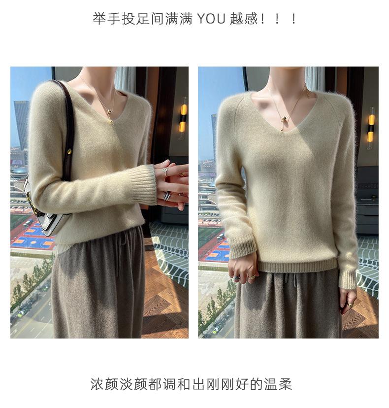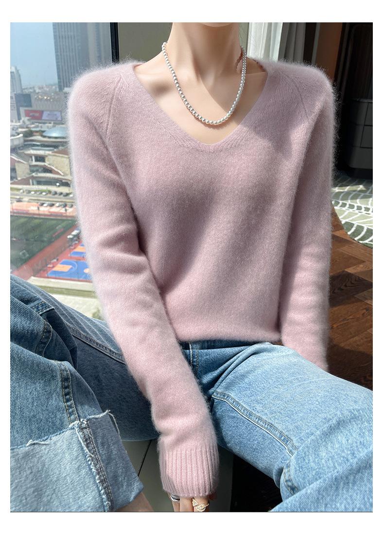 Suéter de cachemira de manga larga raglán grueso para mujer, suéter de cuello en V, camisa holgada de punto de lana de manga larga, otoño e invierno, 24 unidades