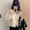 Primavera y Otoño Nuevo Uso Vintage Suéter Pequeño Cárdigan de Mujer de Alto Sentido Azul Cuello Redondo Rayado Chaqueta de Suéter