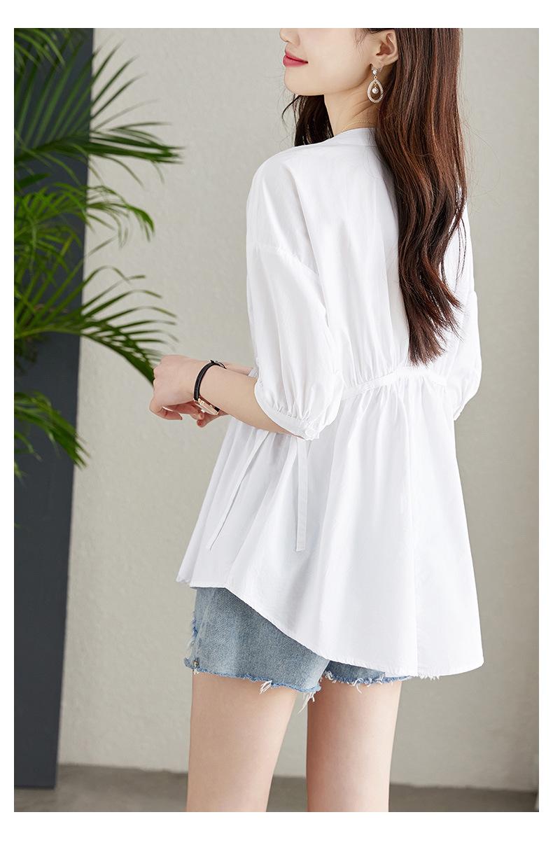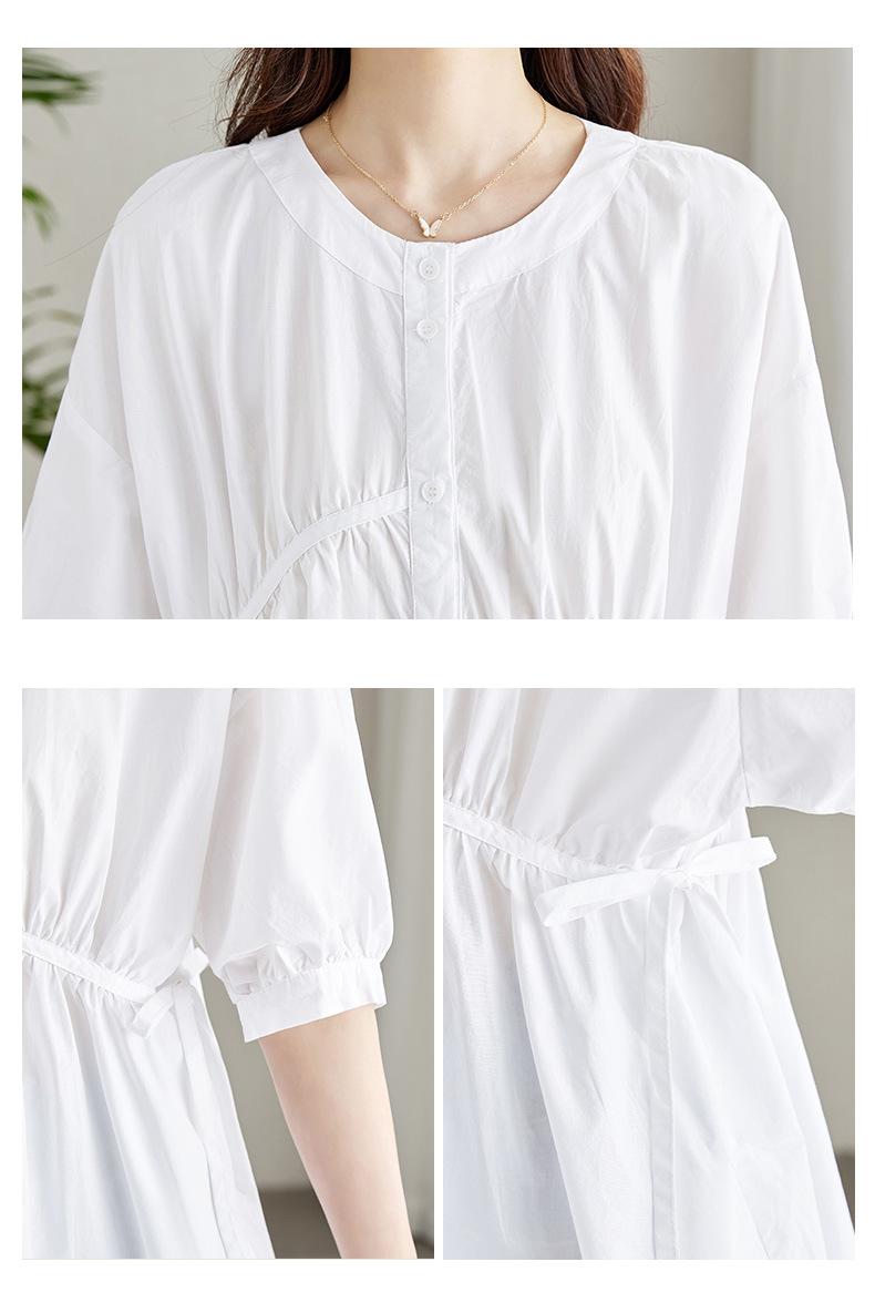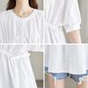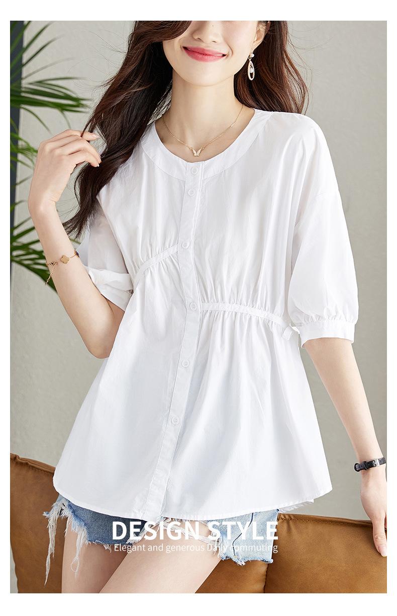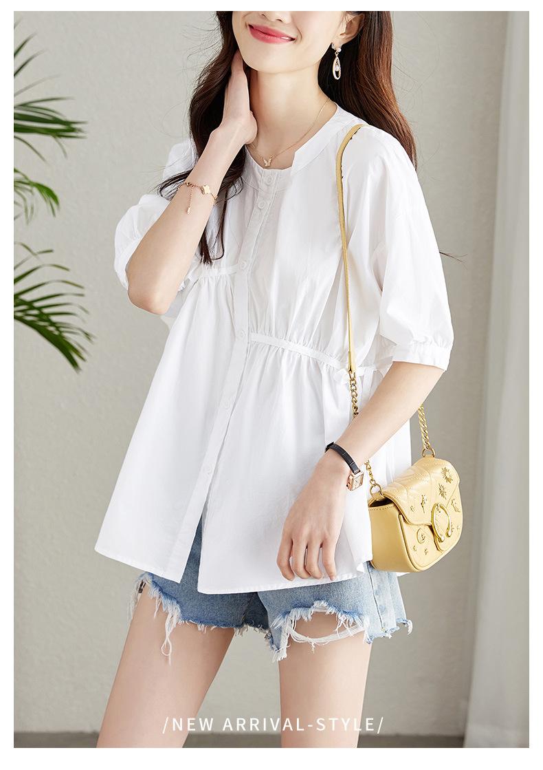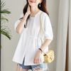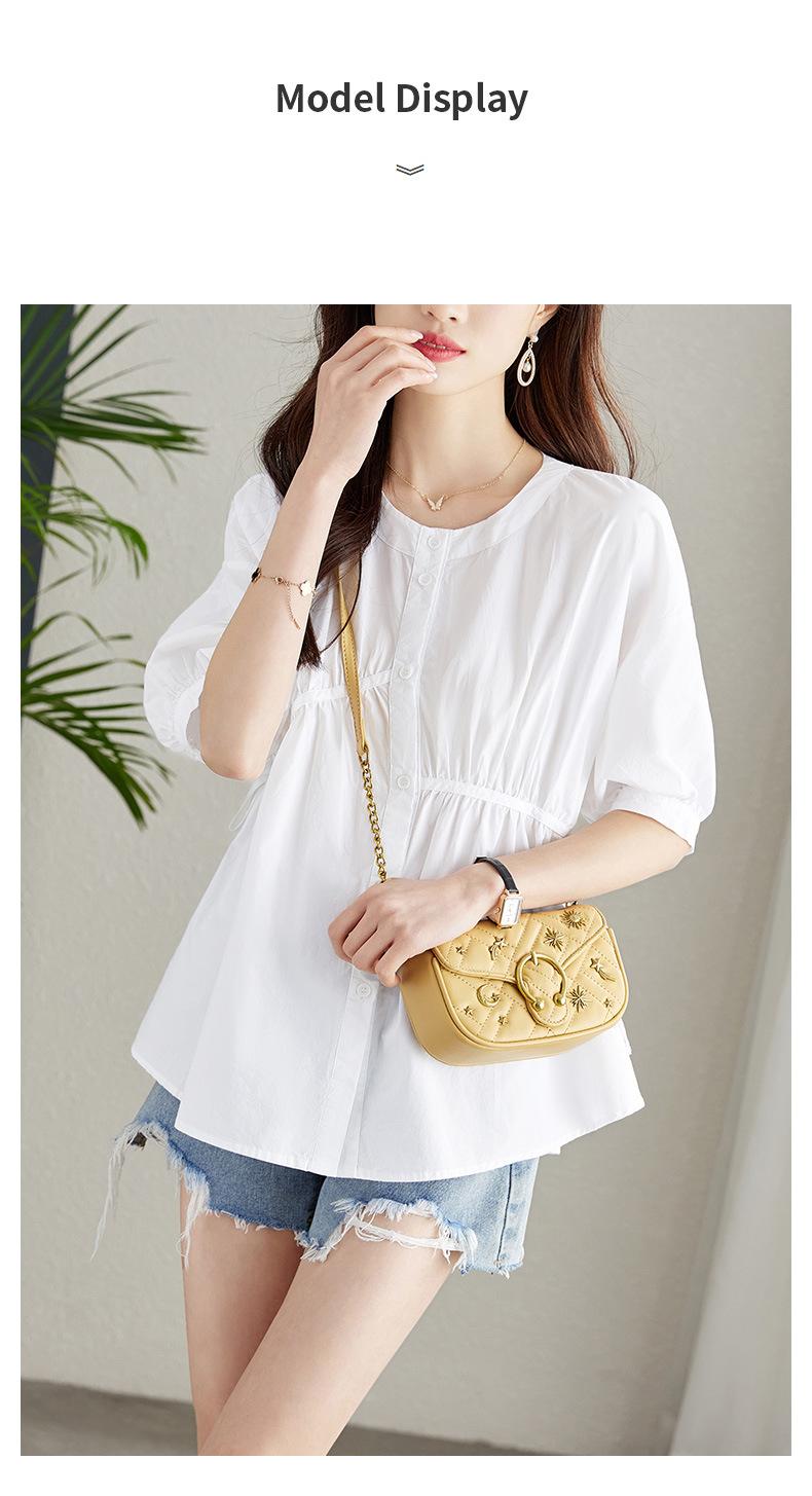 Camisa Blanca Plisada Asimétrica para Mujer Manga Media Verano 2025 Cuello Redondo Cintura Top Baby Doll Camisa Chic Estilo Occidental