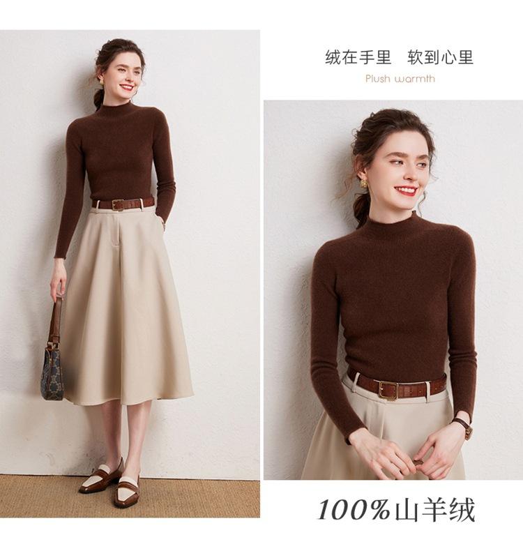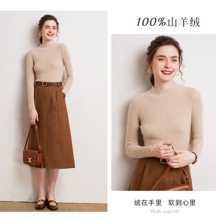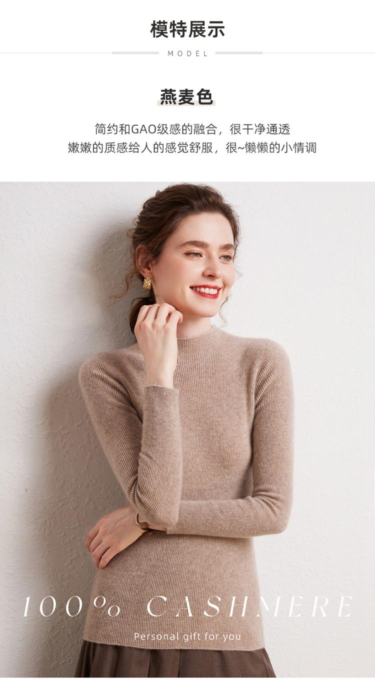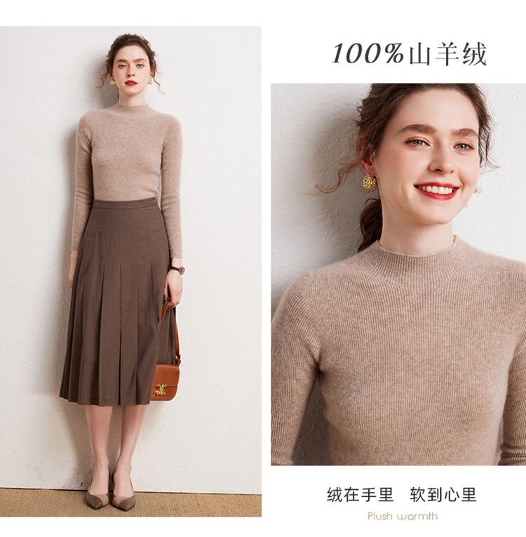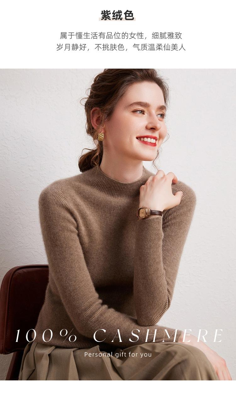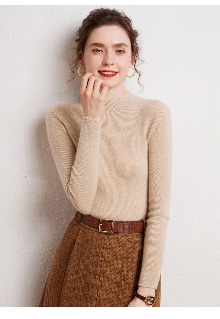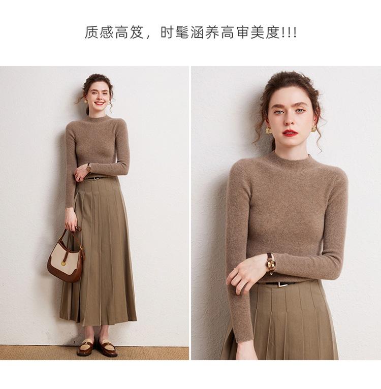 Suéter de Cachemira para Mujer 100% Cachemira Ligera Otoño e Invierno Nuevo Una Línea Listo para Usar Medio Cuello Alto Delgado Tejido Suéter de Fondo para Mujer