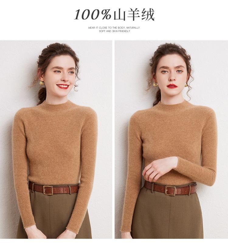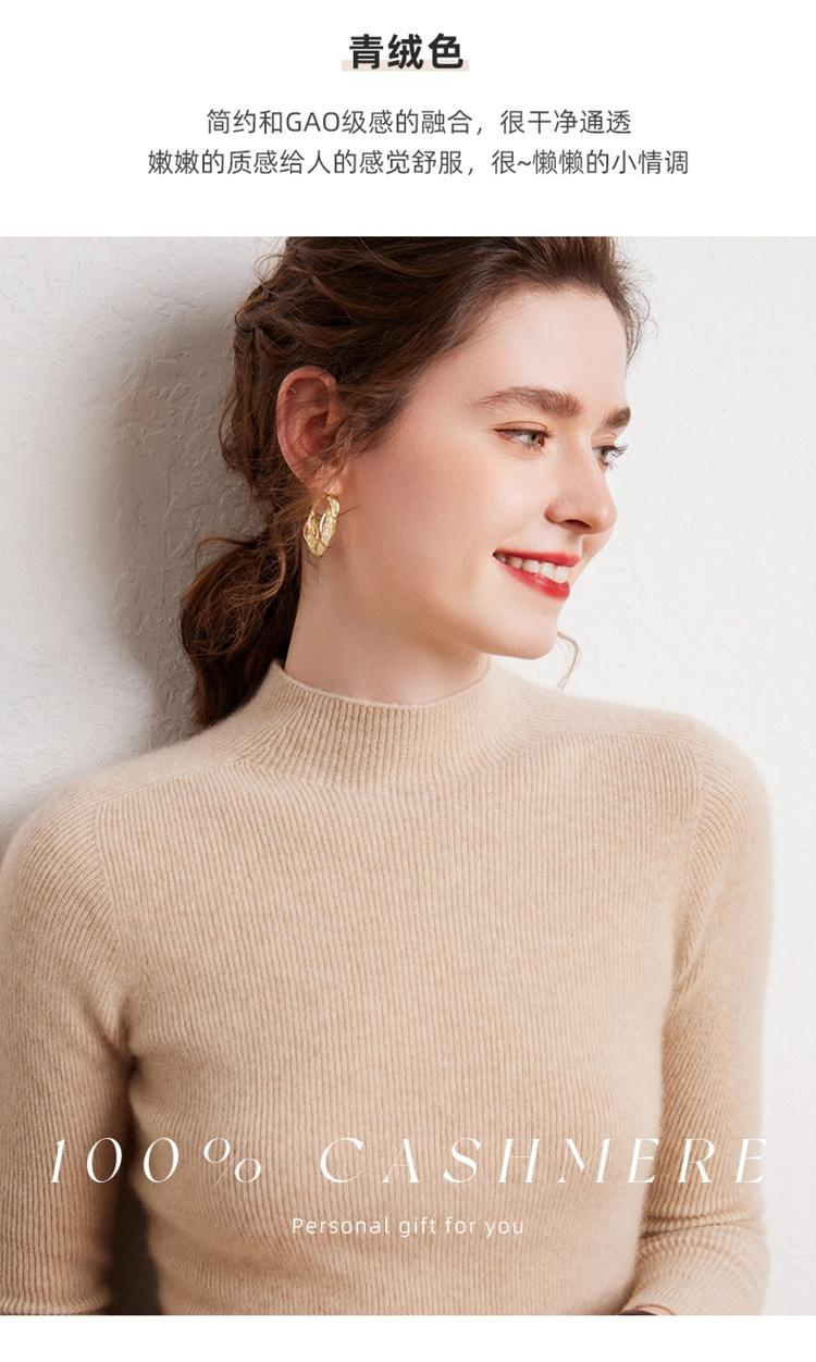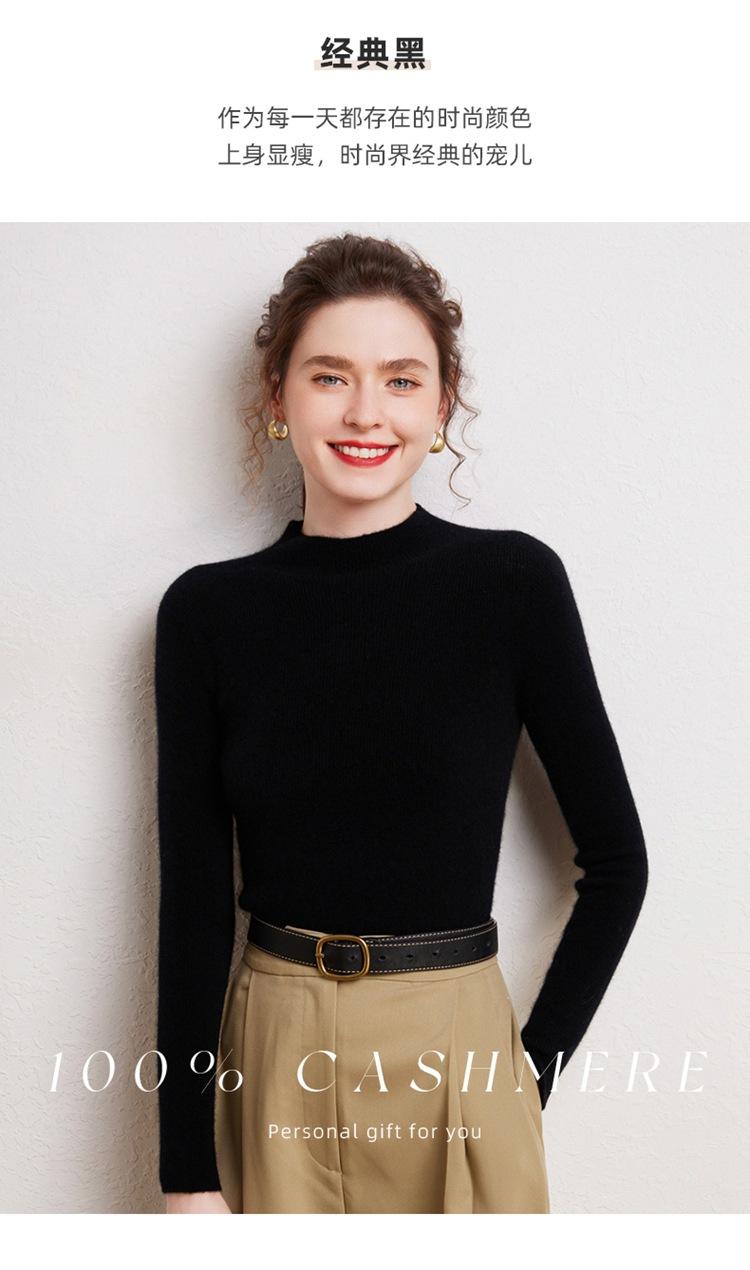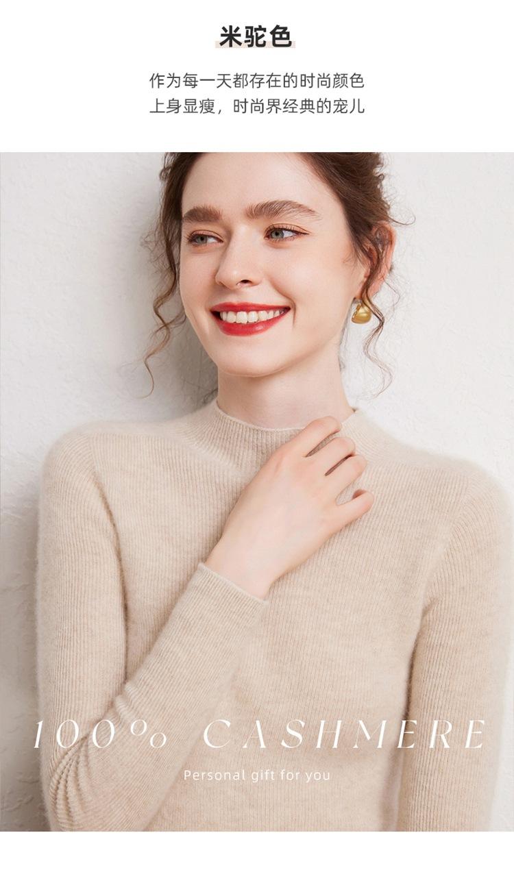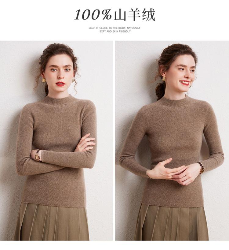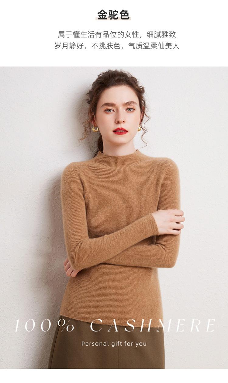 Suéter de Cachemira para Mujer 100% Cachemira Ligera Otoño e Invierno Nuevo Una Línea Listo para Usar Medio Cuello Alto Delgado Tejido Suéter de Fondo para Mujer