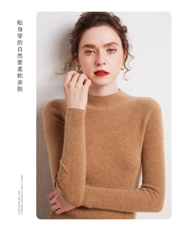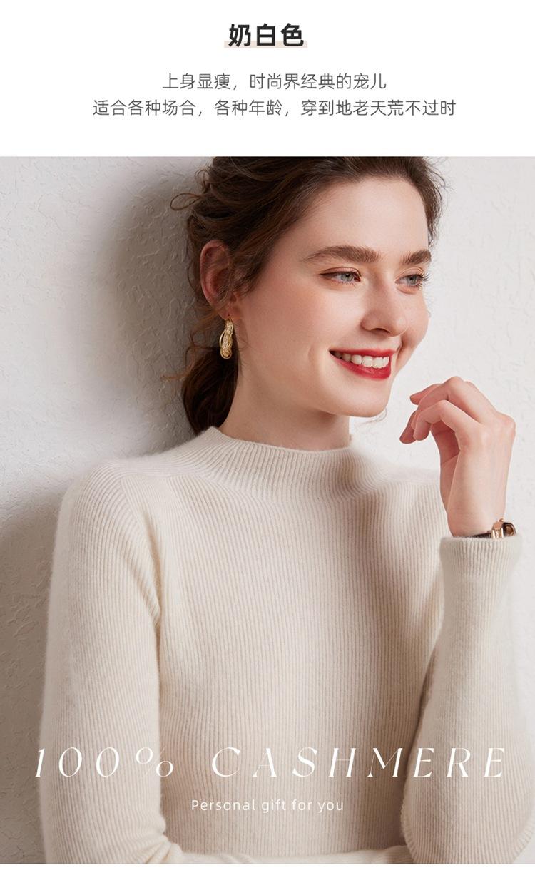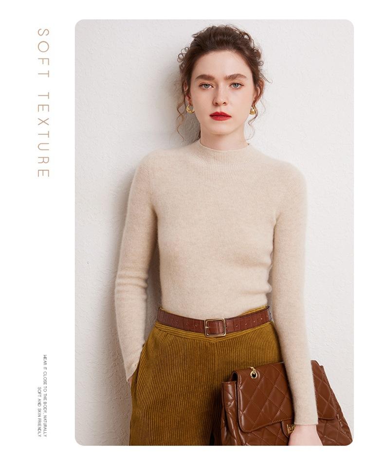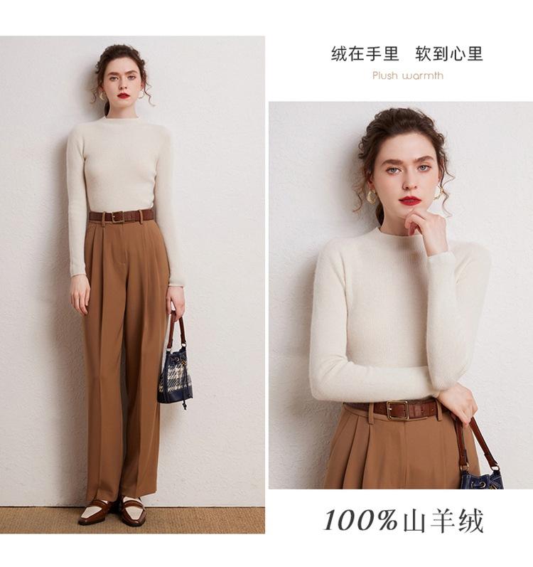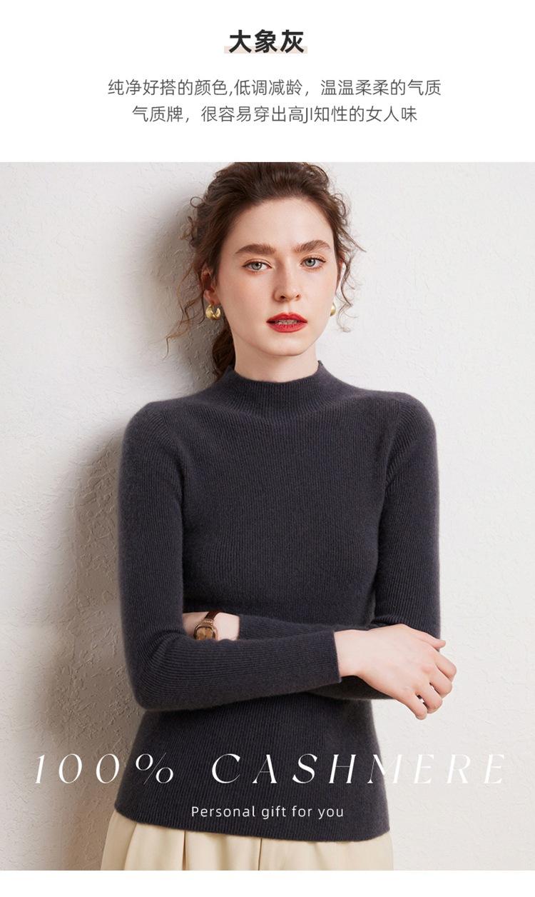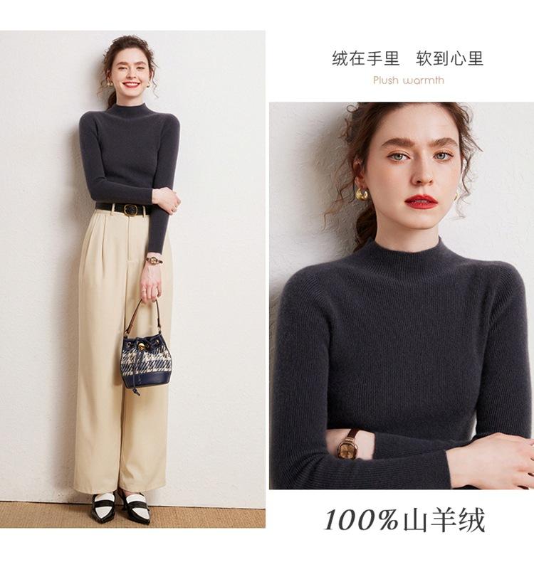 Suéter de Cachemira para Mujer 100% Cachemira Ligera Otoño e Invierno Nuevo Una Línea Listo para Usar Medio Cuello Alto Delgado Tejido Suéter de Fondo para Mujer