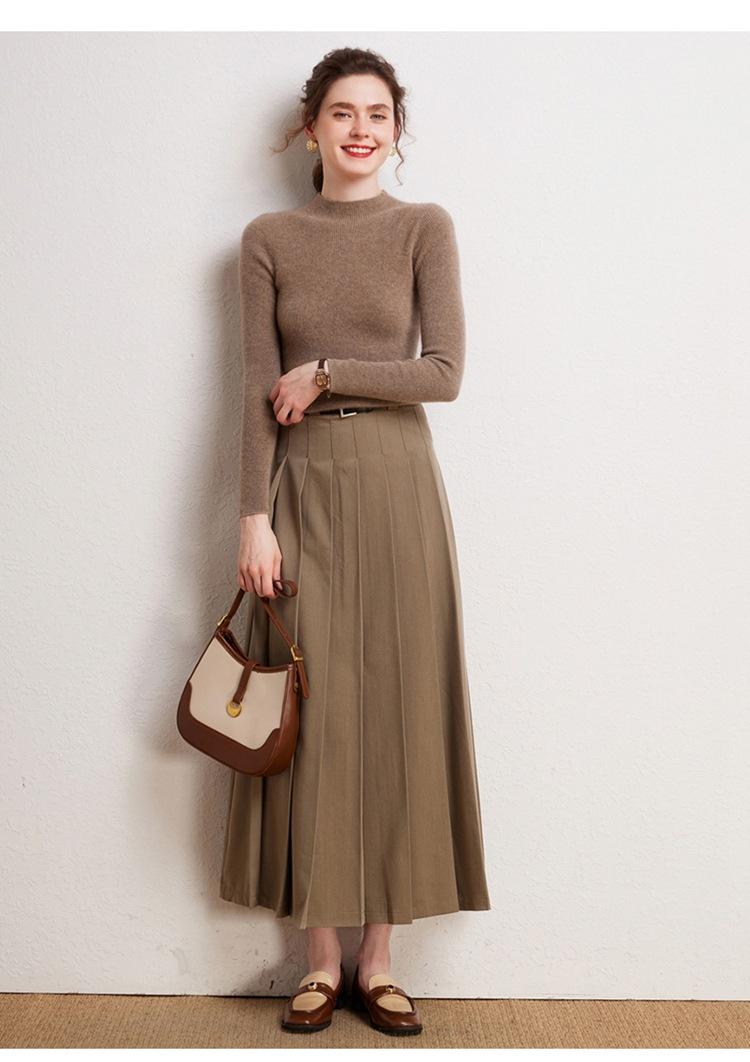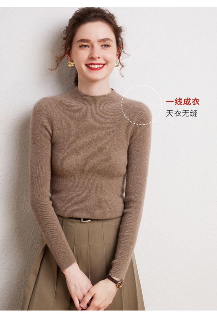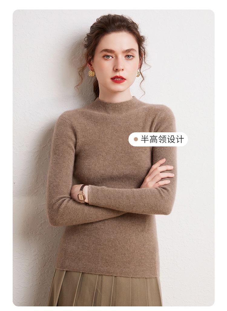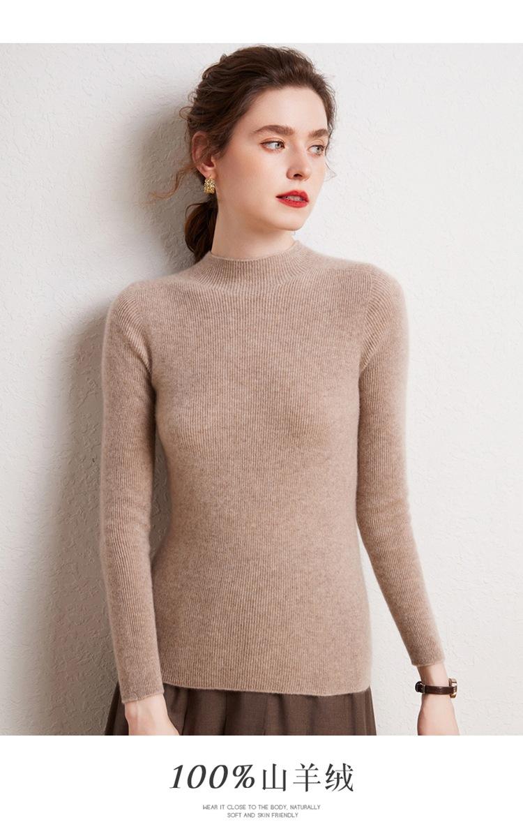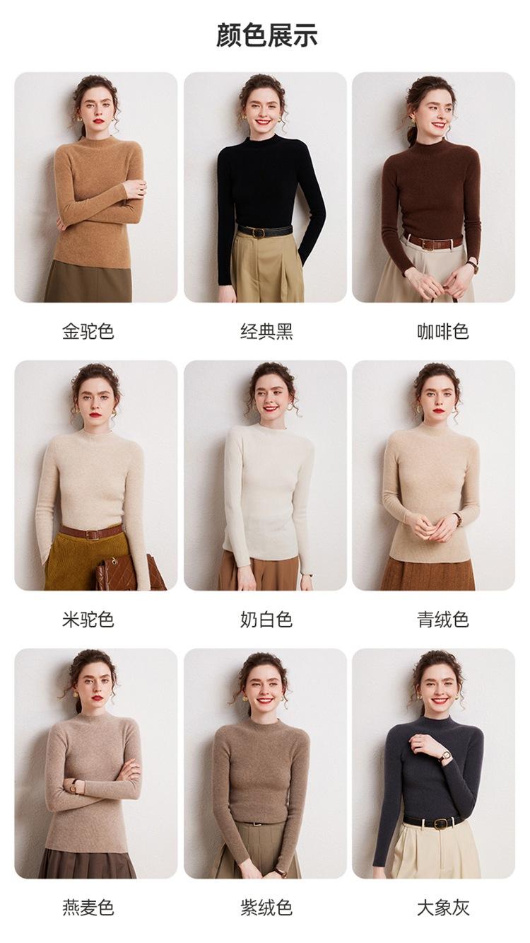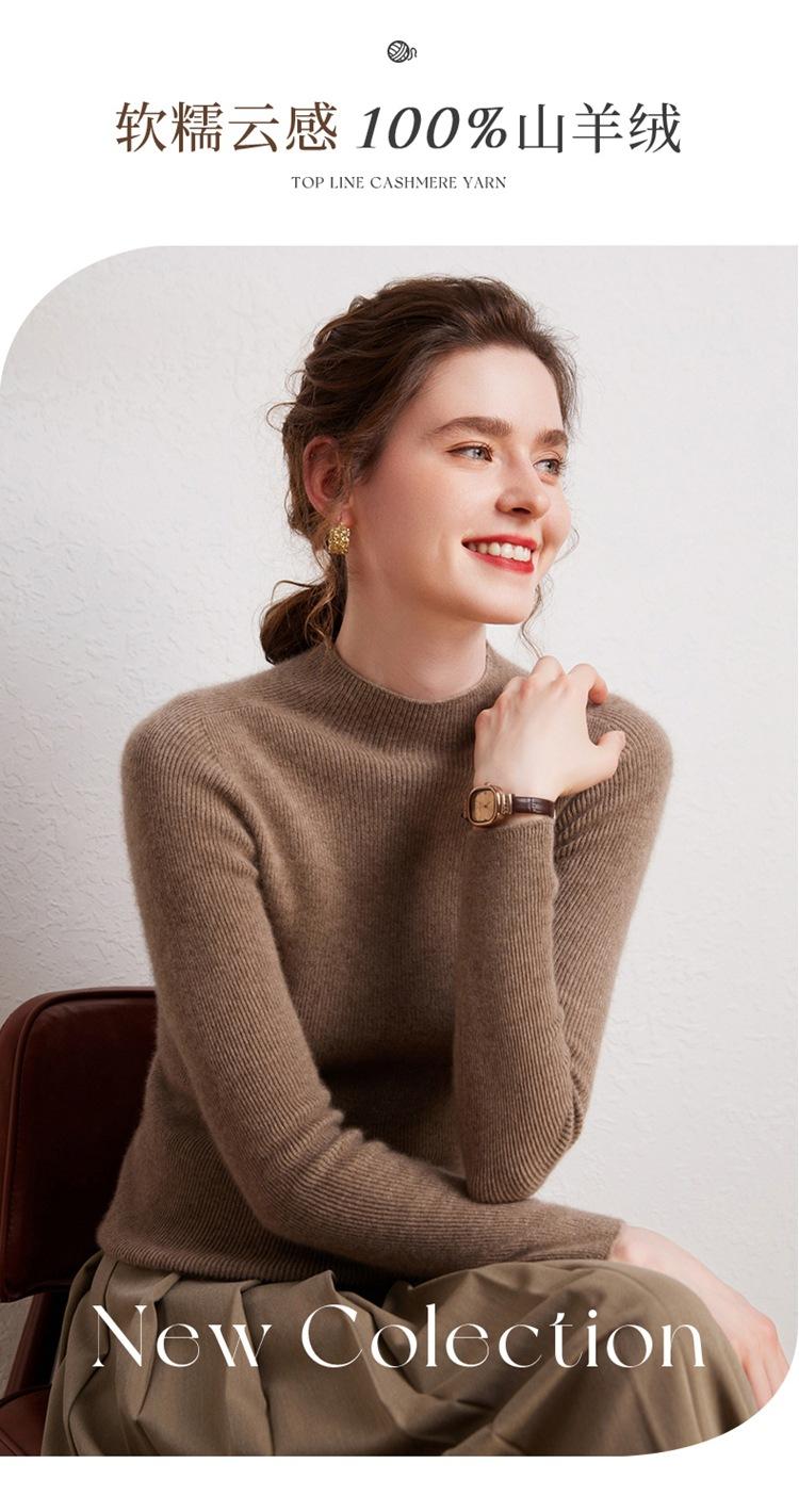 Suéter de Cachemira para Mujer 100% Cachemira Ligera Otoño e Invierno Nuevo Una Línea Listo para Usar Medio Cuello Alto Delgado Tejido Suéter de Fondo para Mujer