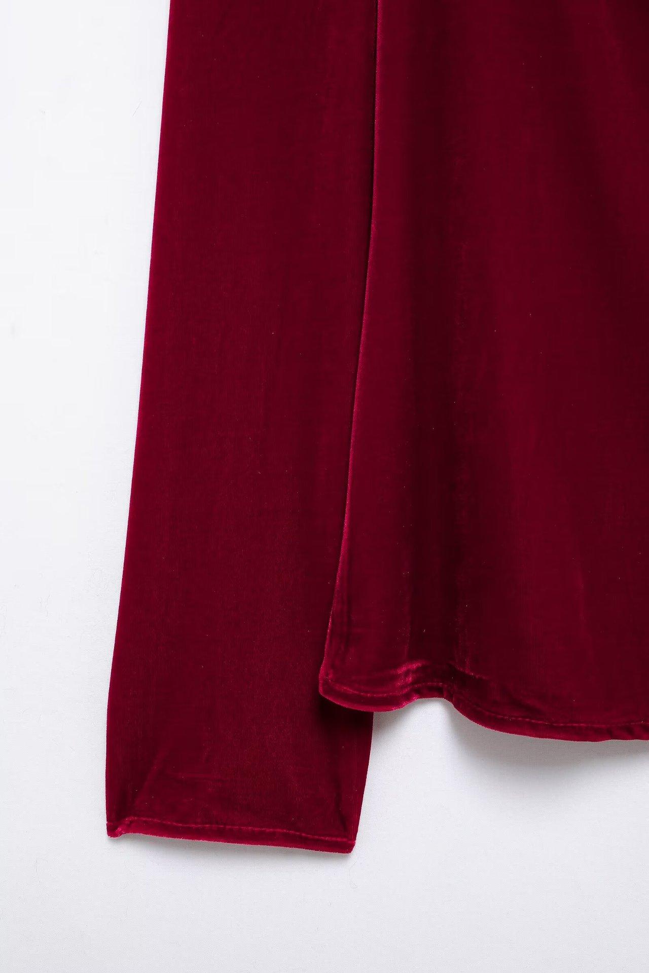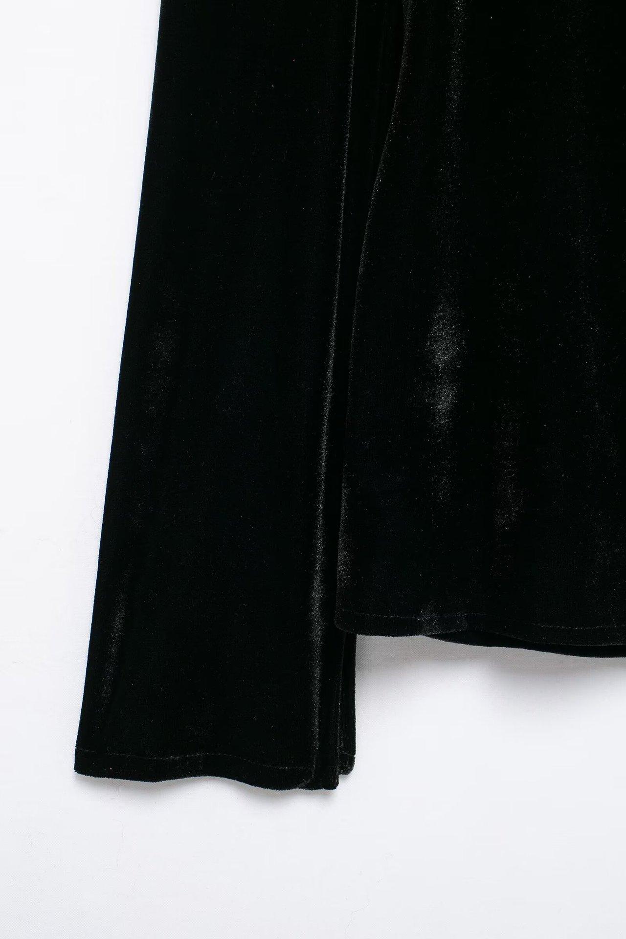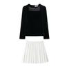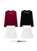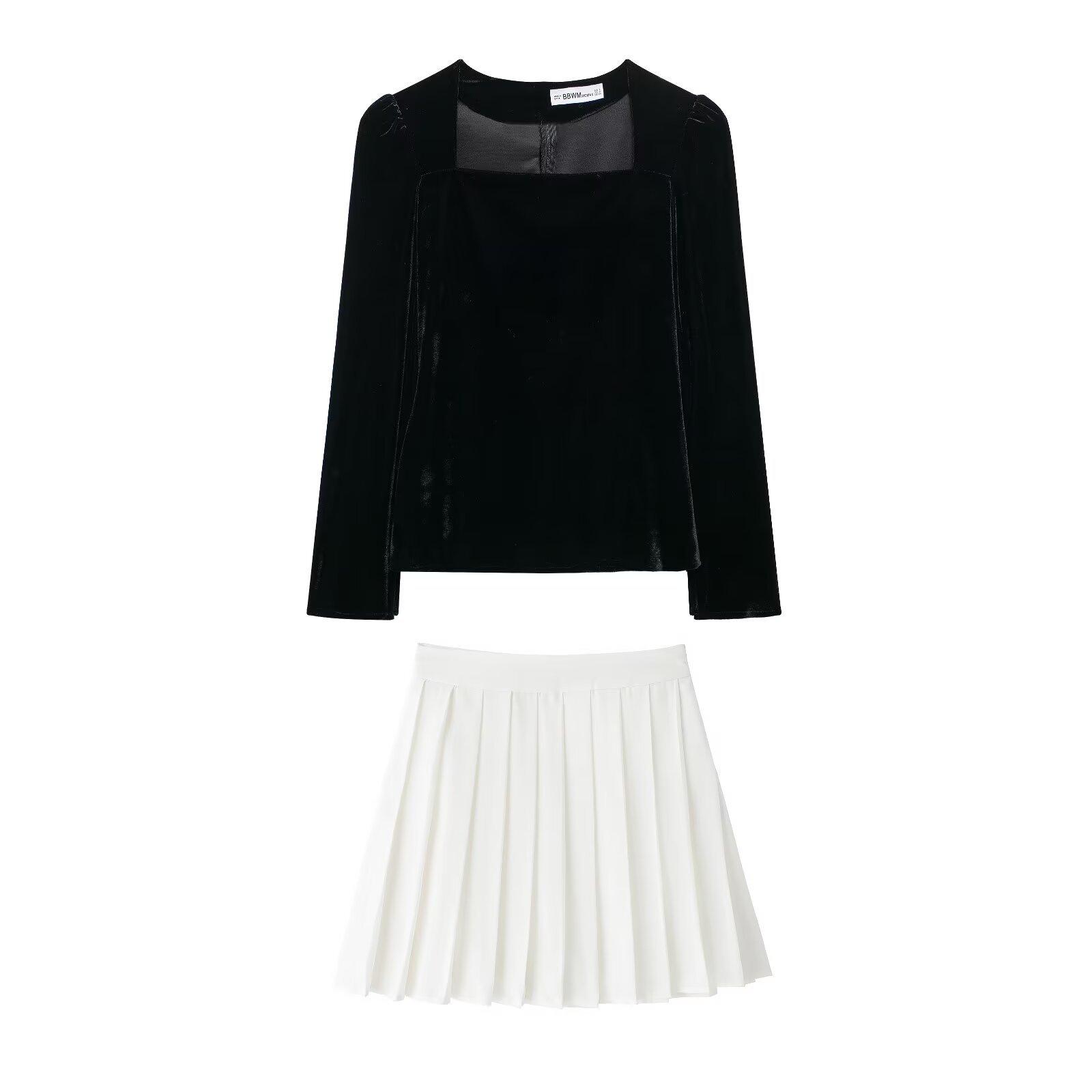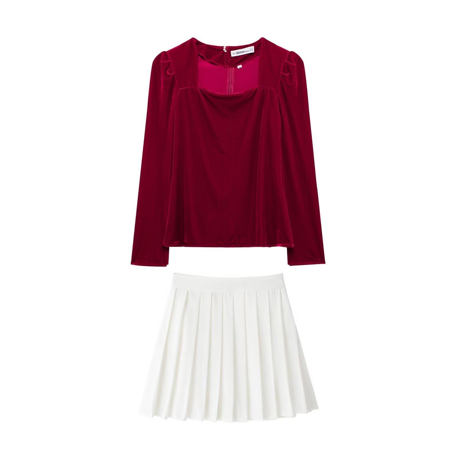 Comercio Exterior Transfronterizo para Mujer 2024 Otoño Nuevo Top de Terciopelo de Manga Larga Estilo Europeo y Americano con Falda Midi Plisada de Cintura Alta