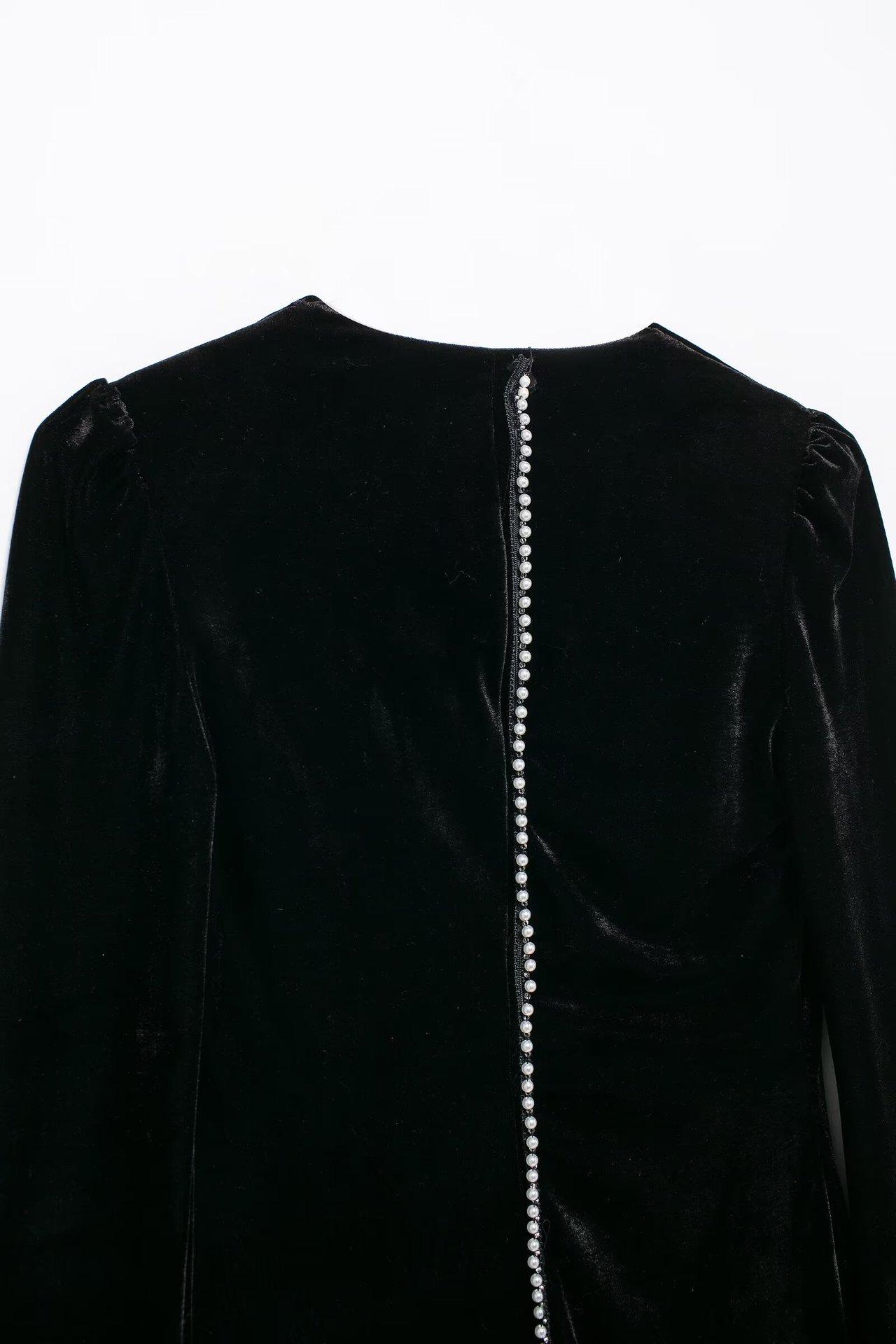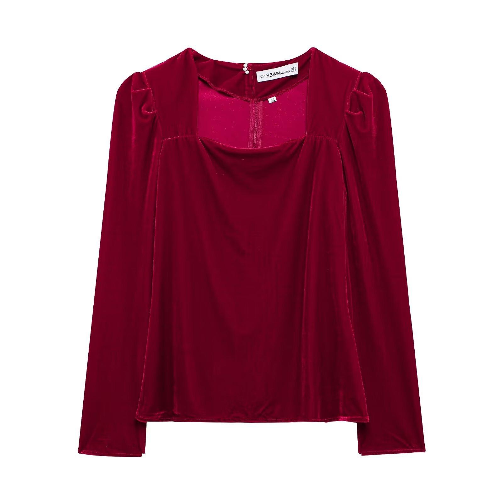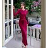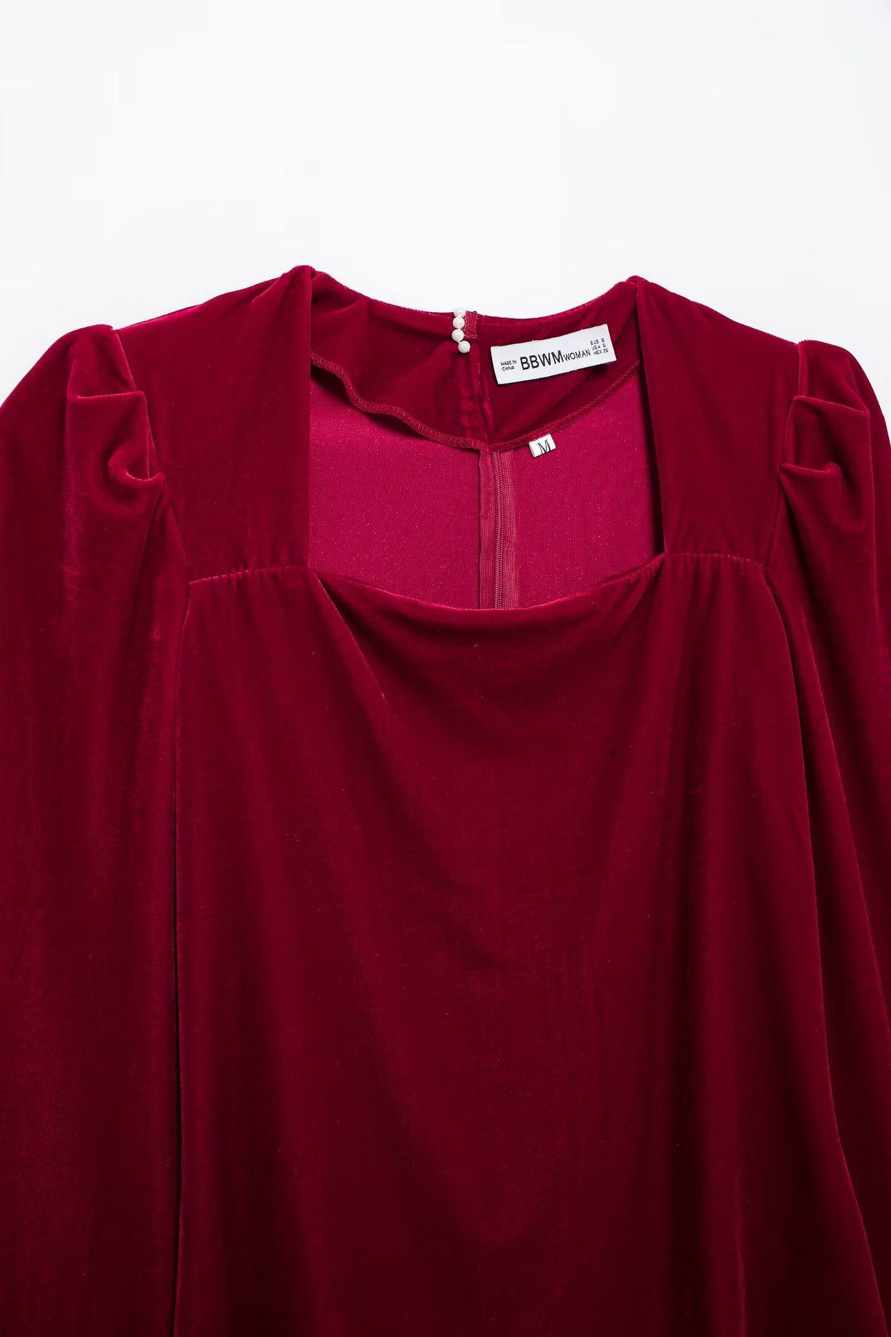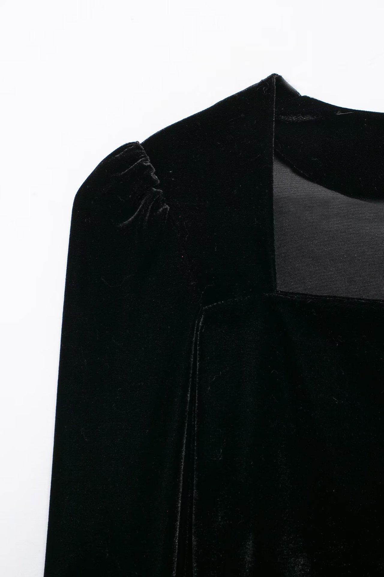 Comercio Exterior Transfronterizo para Mujer 2024 Otoño Nuevo Top de Terciopelo de Manga Larga Estilo Europeo y Americano con Falda Midi Plisada de Cintura Alta